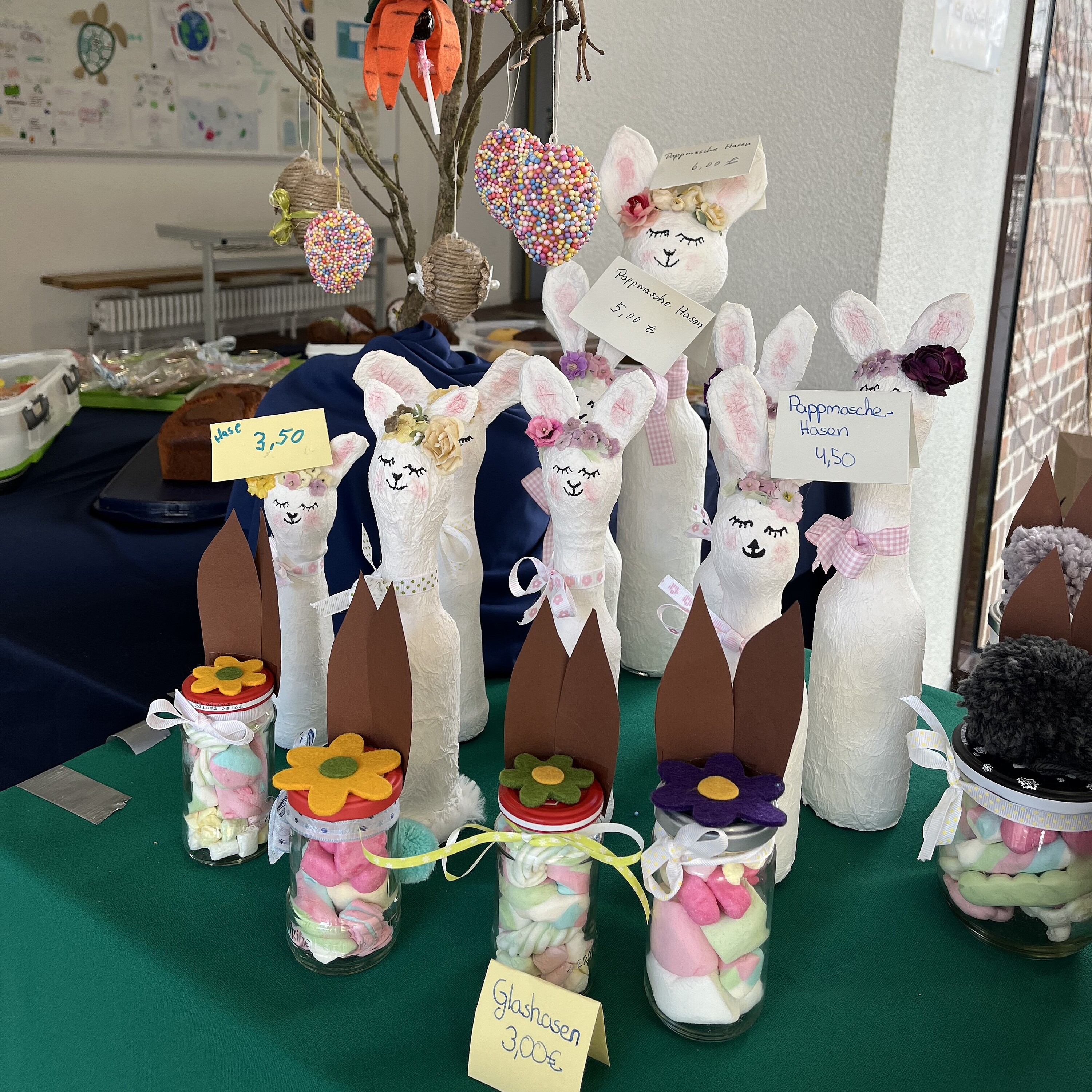 Die Schülerinnen der Ganztagsschule hatten sich im Vorfeld mit ihren Betreuerinnen mit viel Hingabe auf den Basar vorbereitet. Sie bastelten und gestalteten fleißig, um ihren Verkaufsstand mit einer großen Auswahl an schönen und leckeren Osterüberraschungen zu füllen. Die Mühe hat sich gelohnt: Mit ihrem Engagement und ihrer Kreativität machten sie den Osterbasar zu einem vollen Erfolg und sorgten für Vorfreude auf das bevorstehende Osterfest.