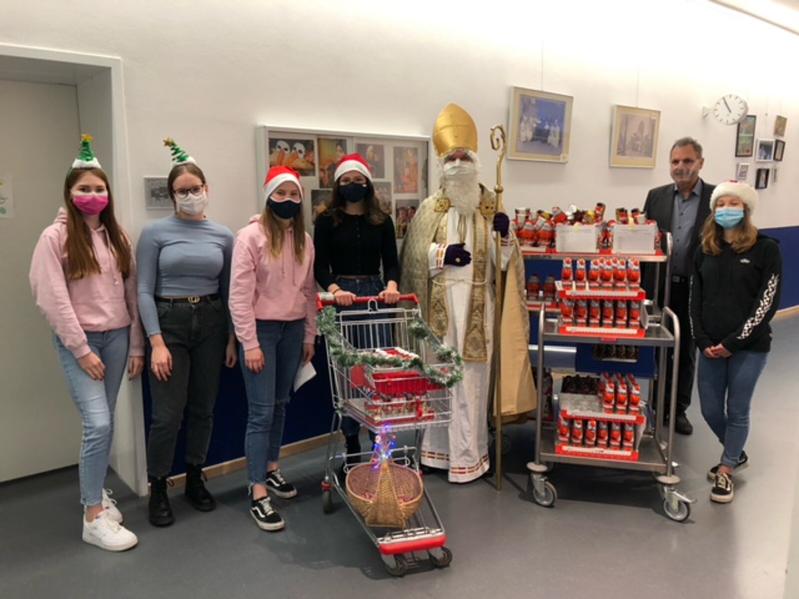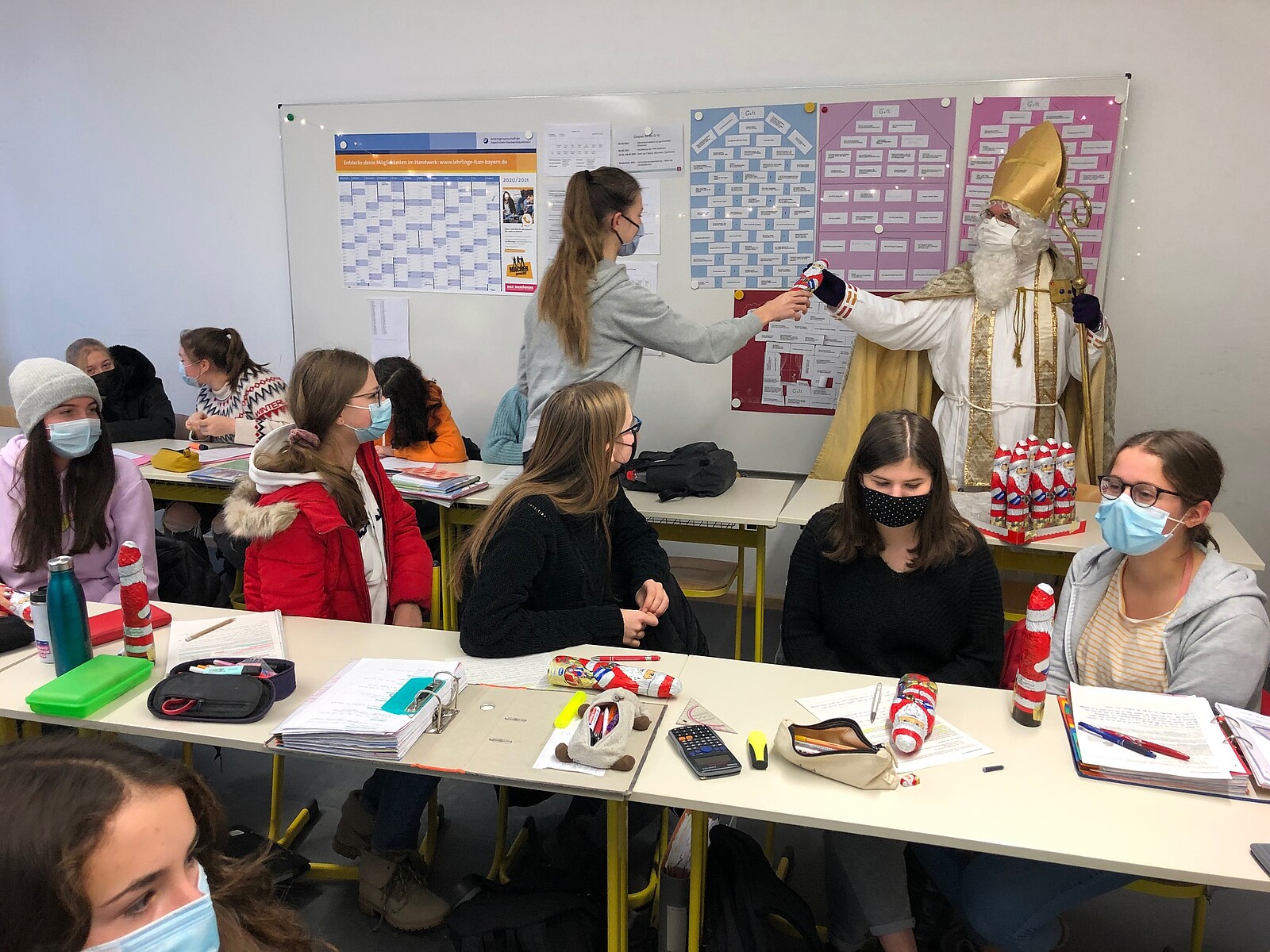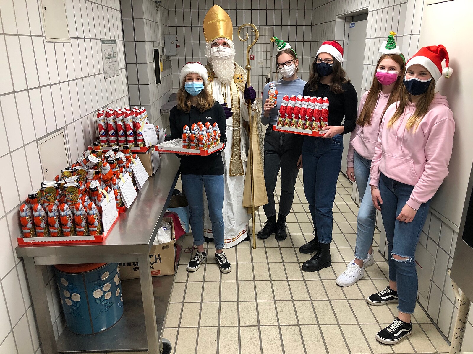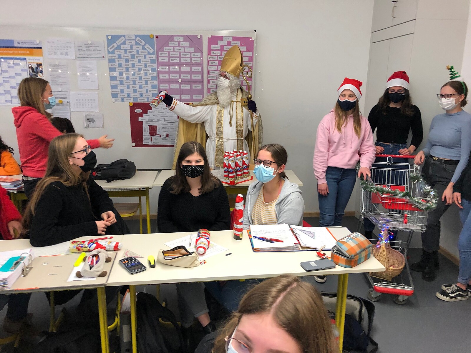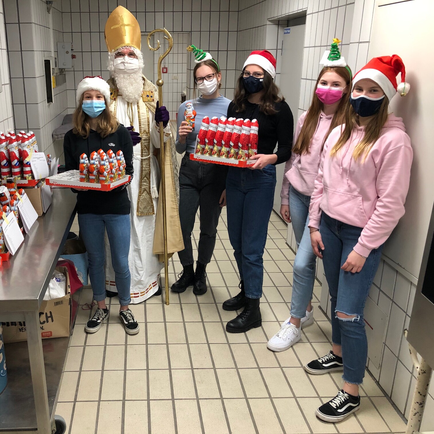 Der Nikolaus besucht die 5. Klassen - und die SMV verteilt Schokoladennikoläuse (großzügige Spende einer Mutter)