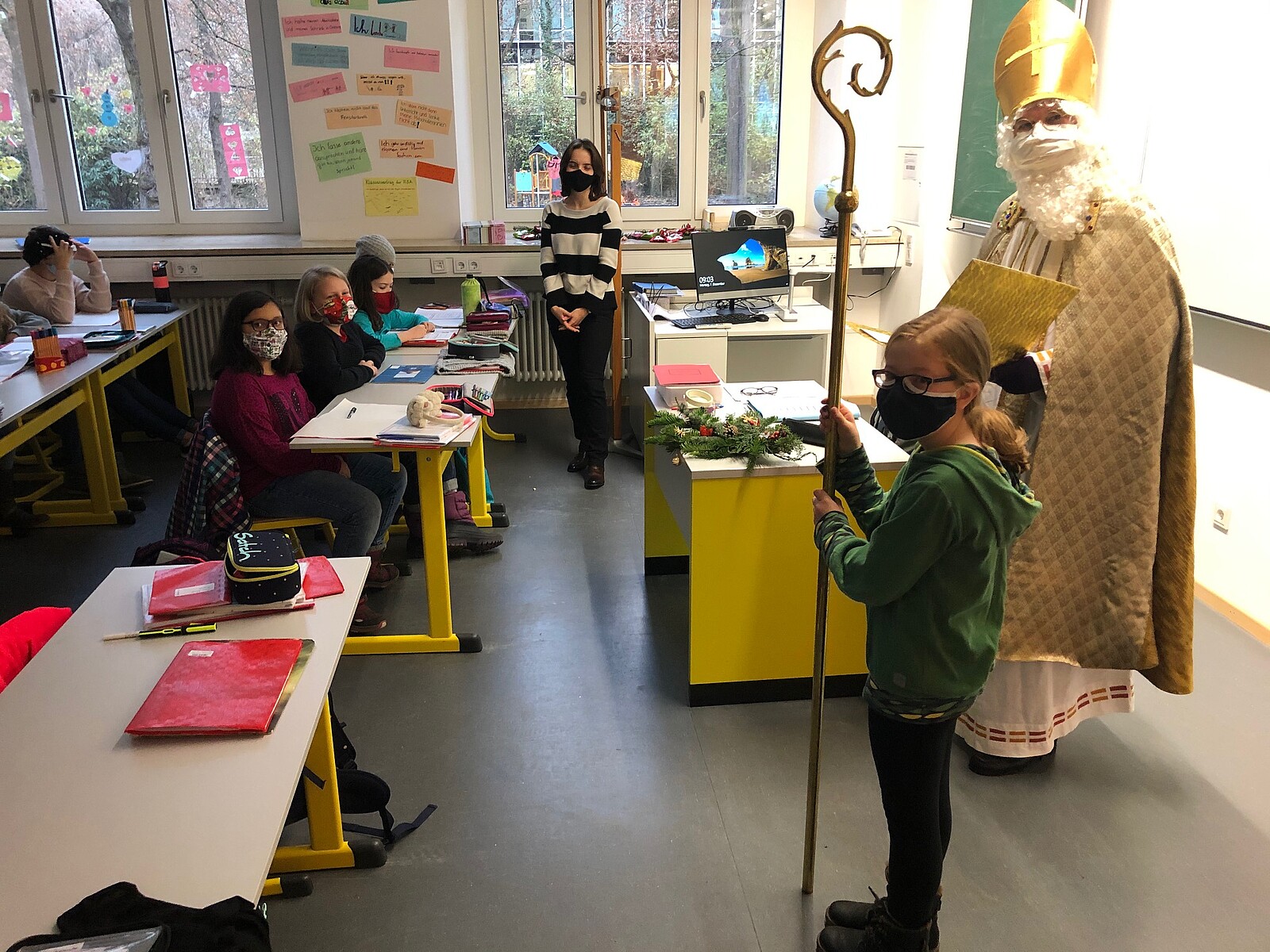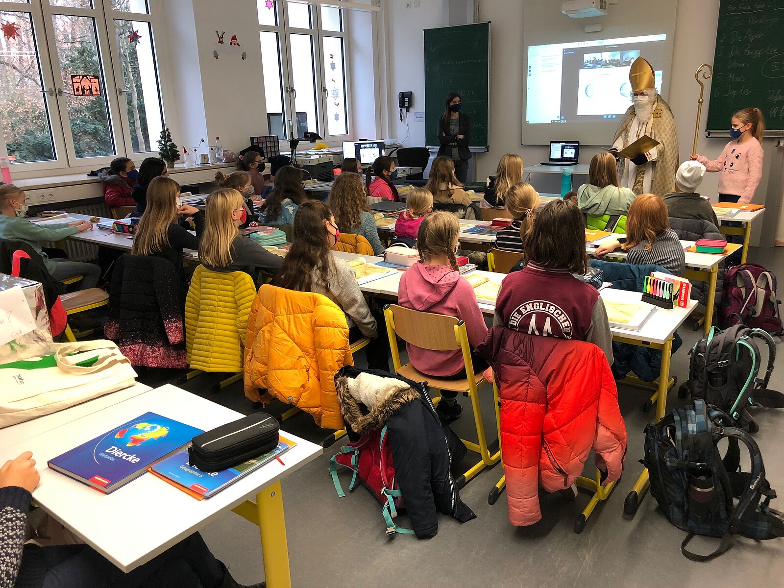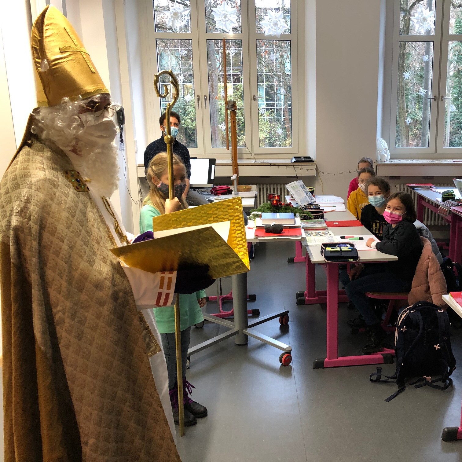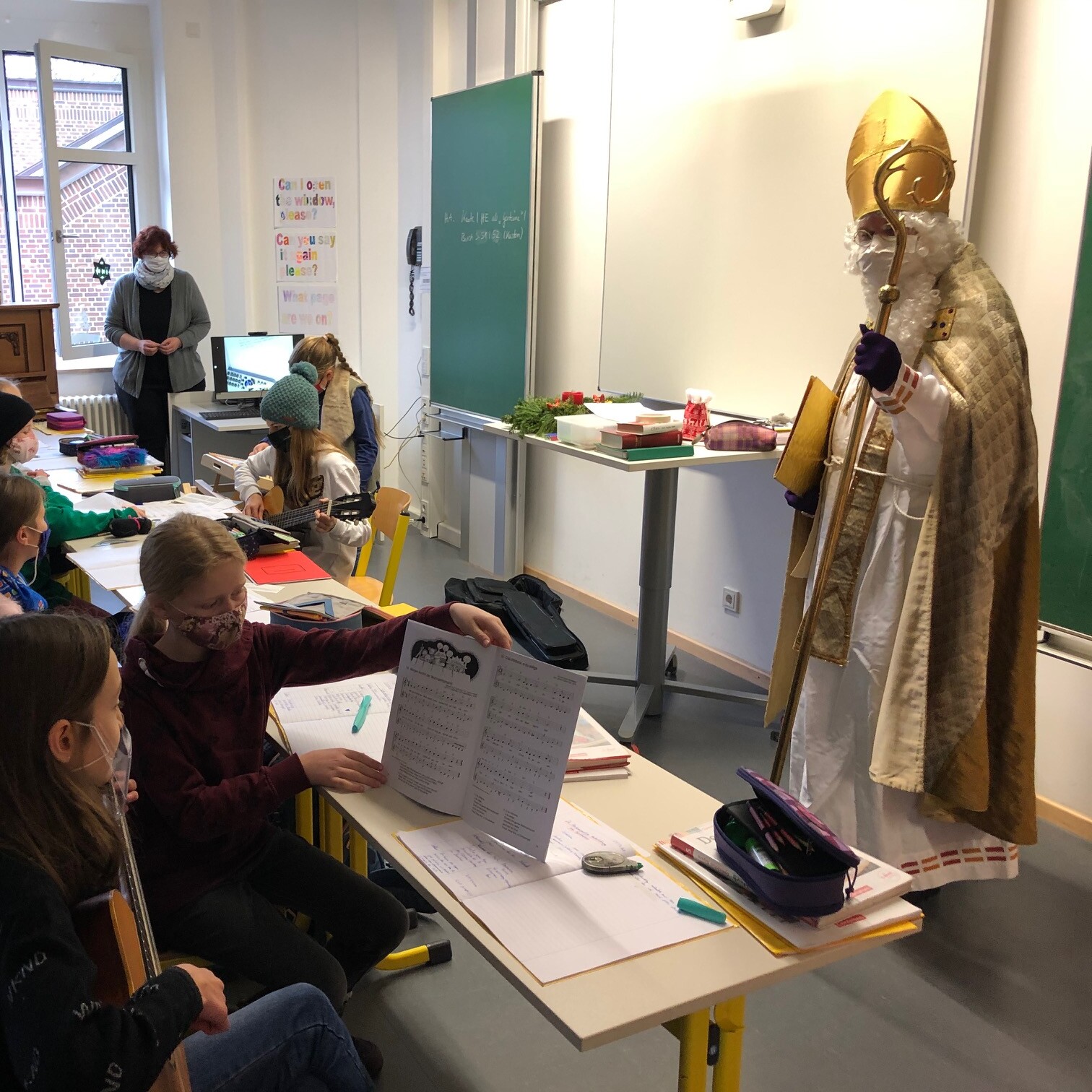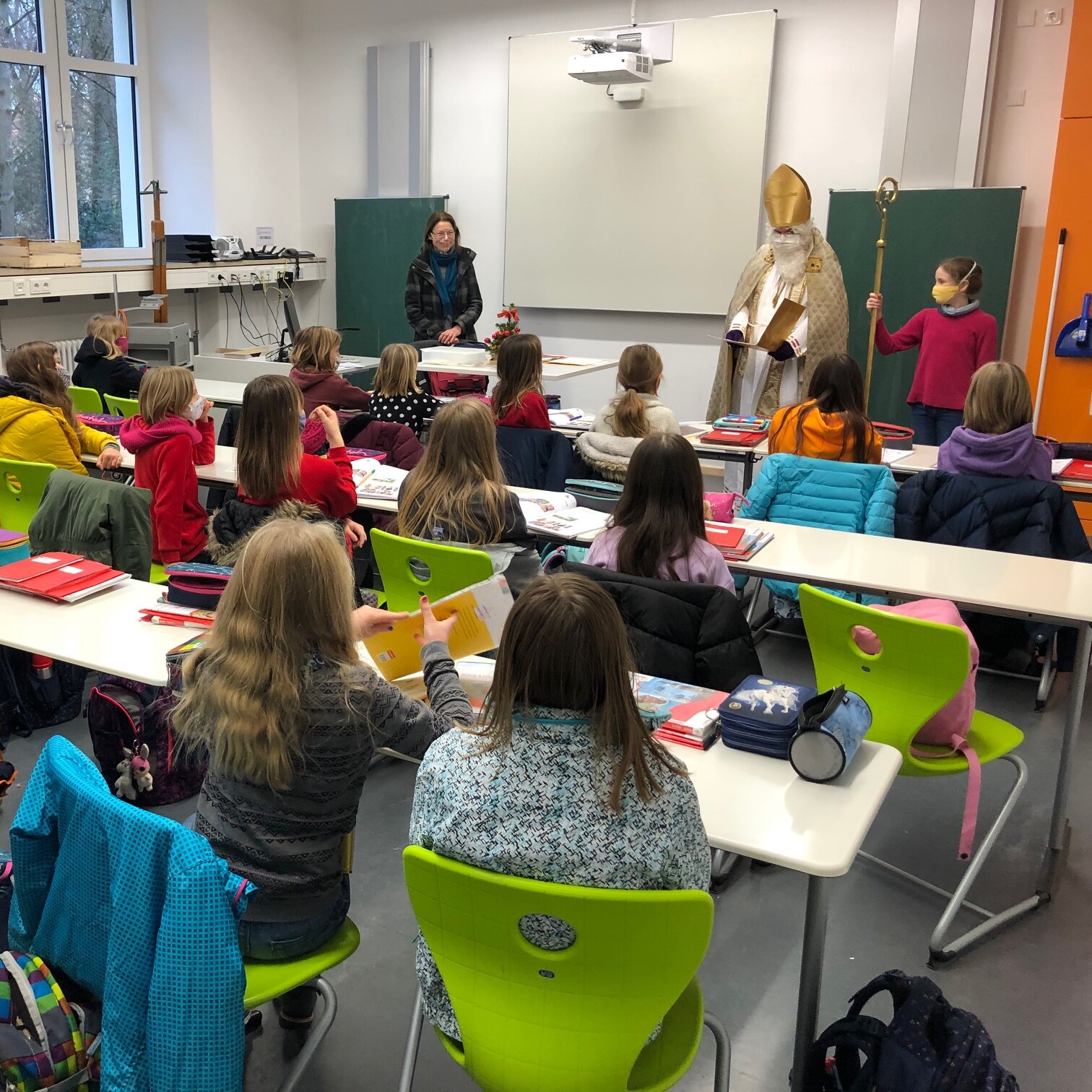 Der Nikolaus besucht die 5. Klassen - und die SMV verteilt Schokoladennikoläuse (großzügige Spende einer Mutter)