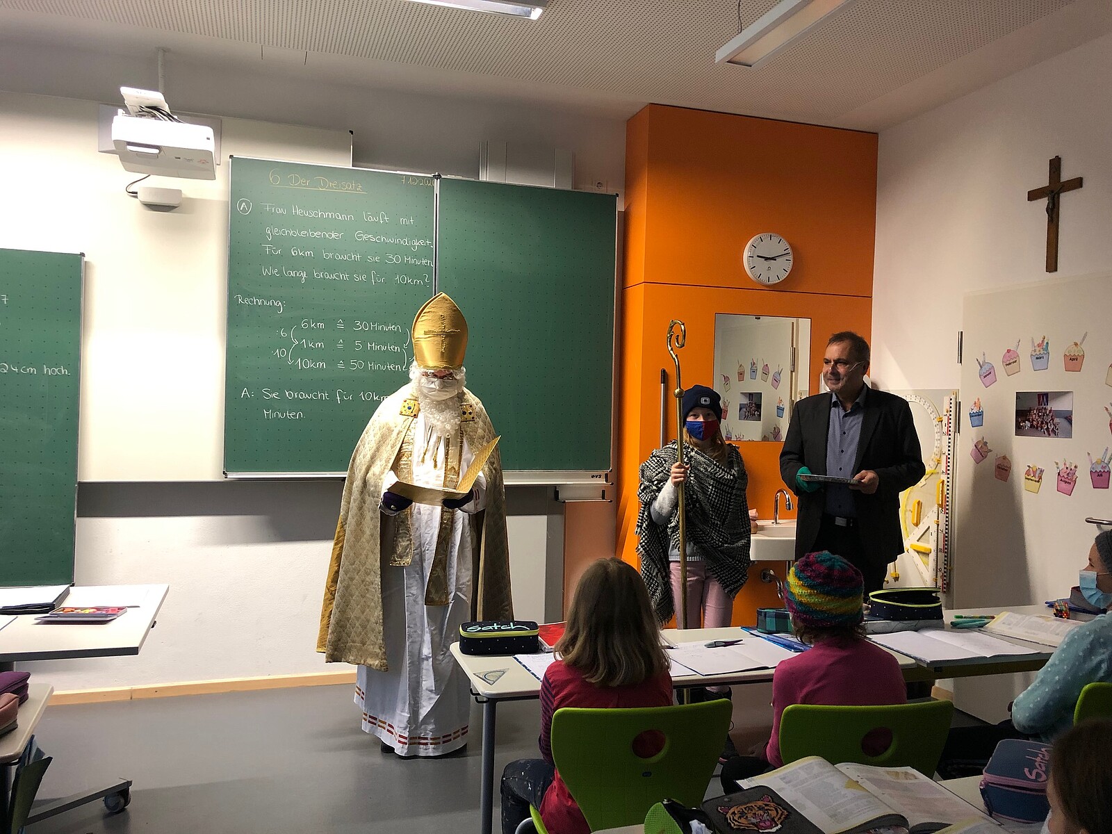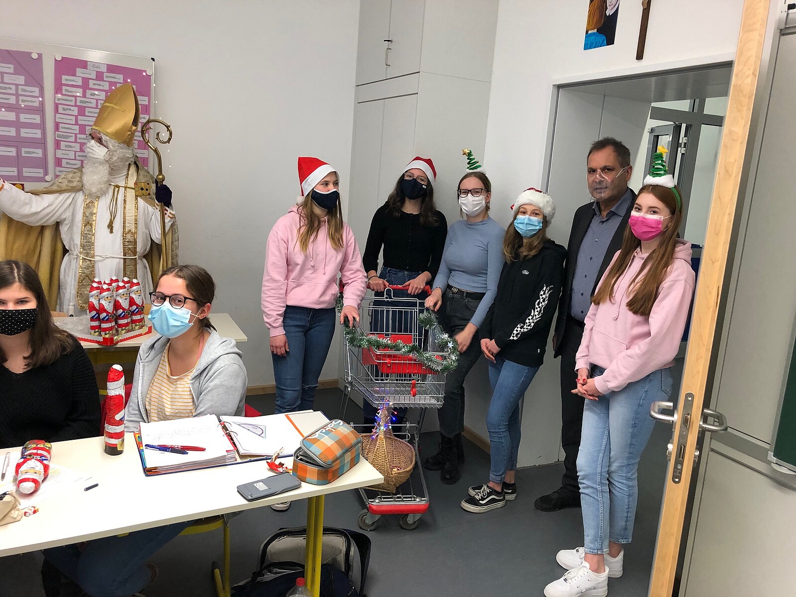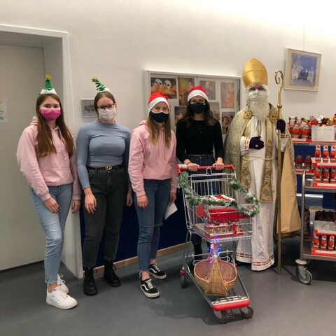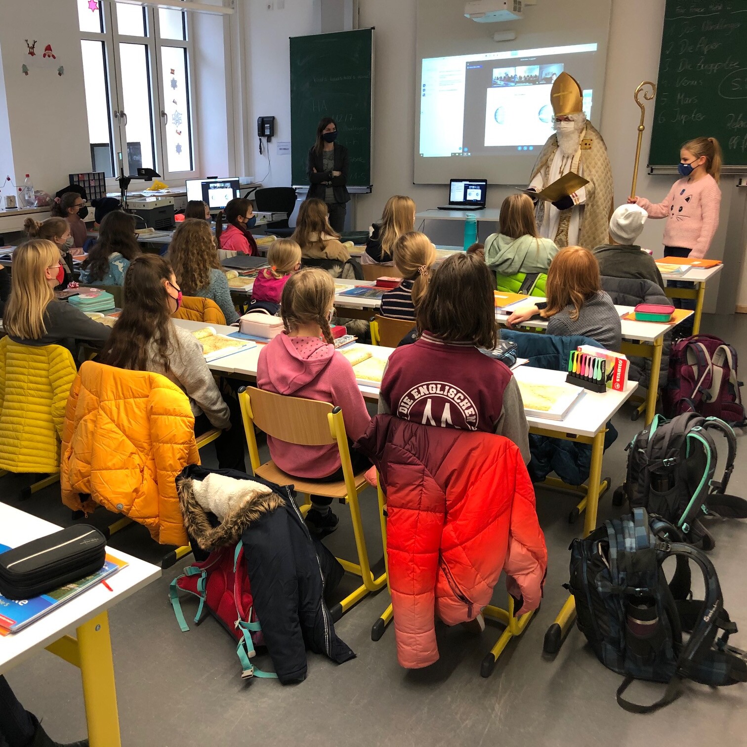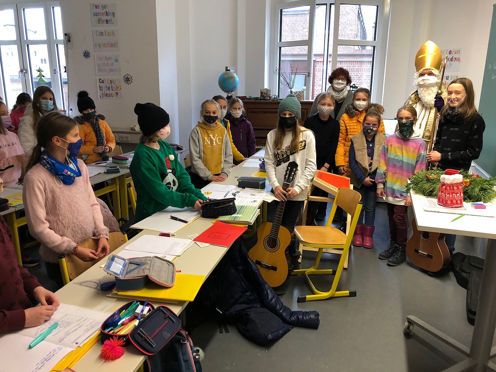 Der Nikolaus besucht die 5. Klassen - und die SMV verteilt Schokoladennikoläuse (großzügige Spende einer Mutter)