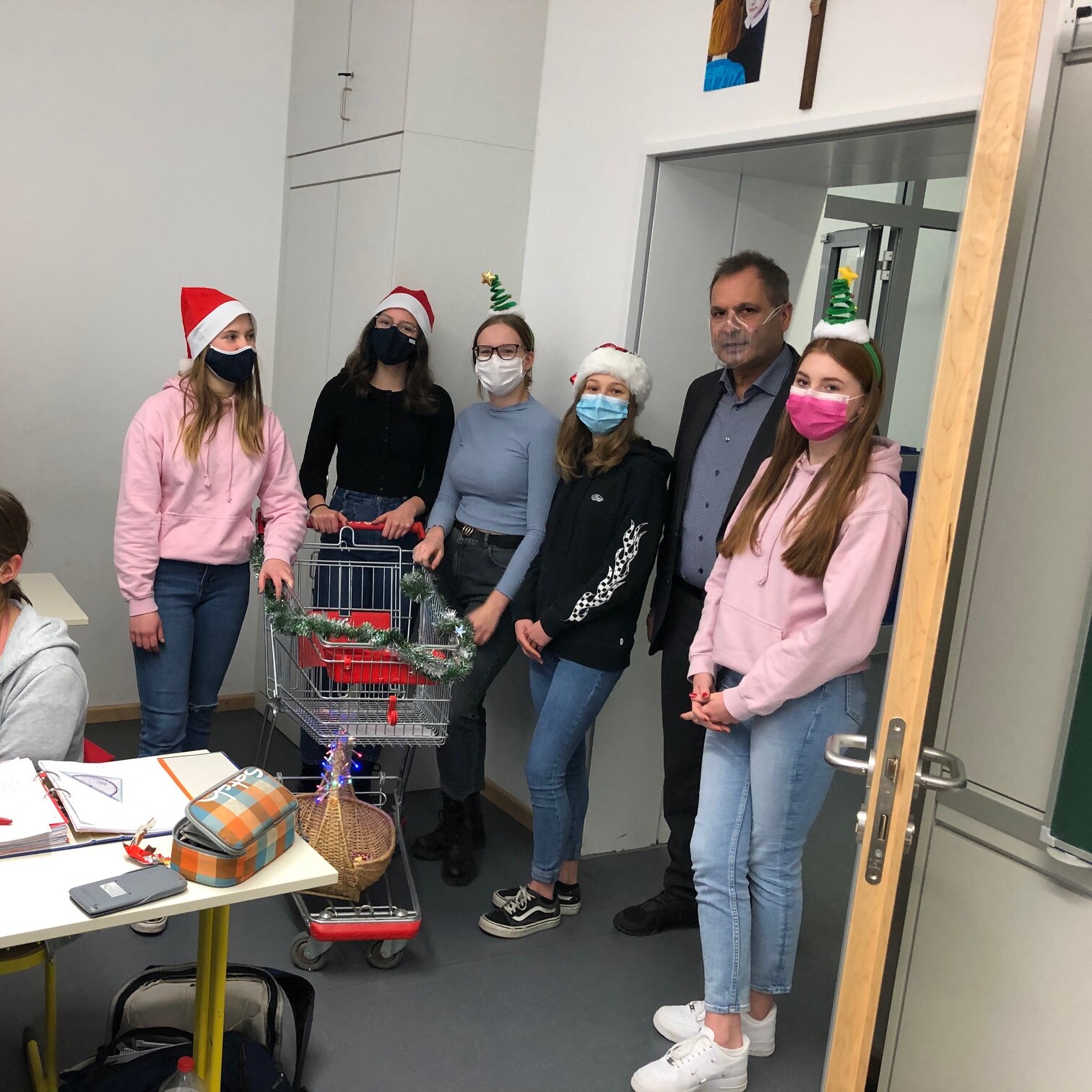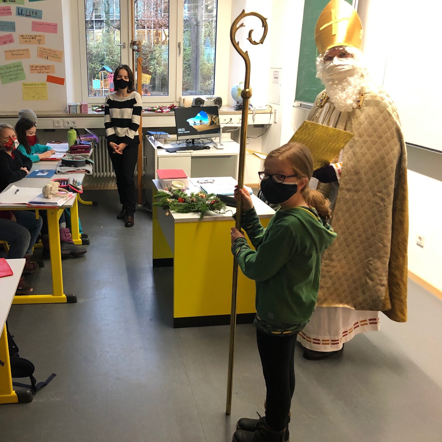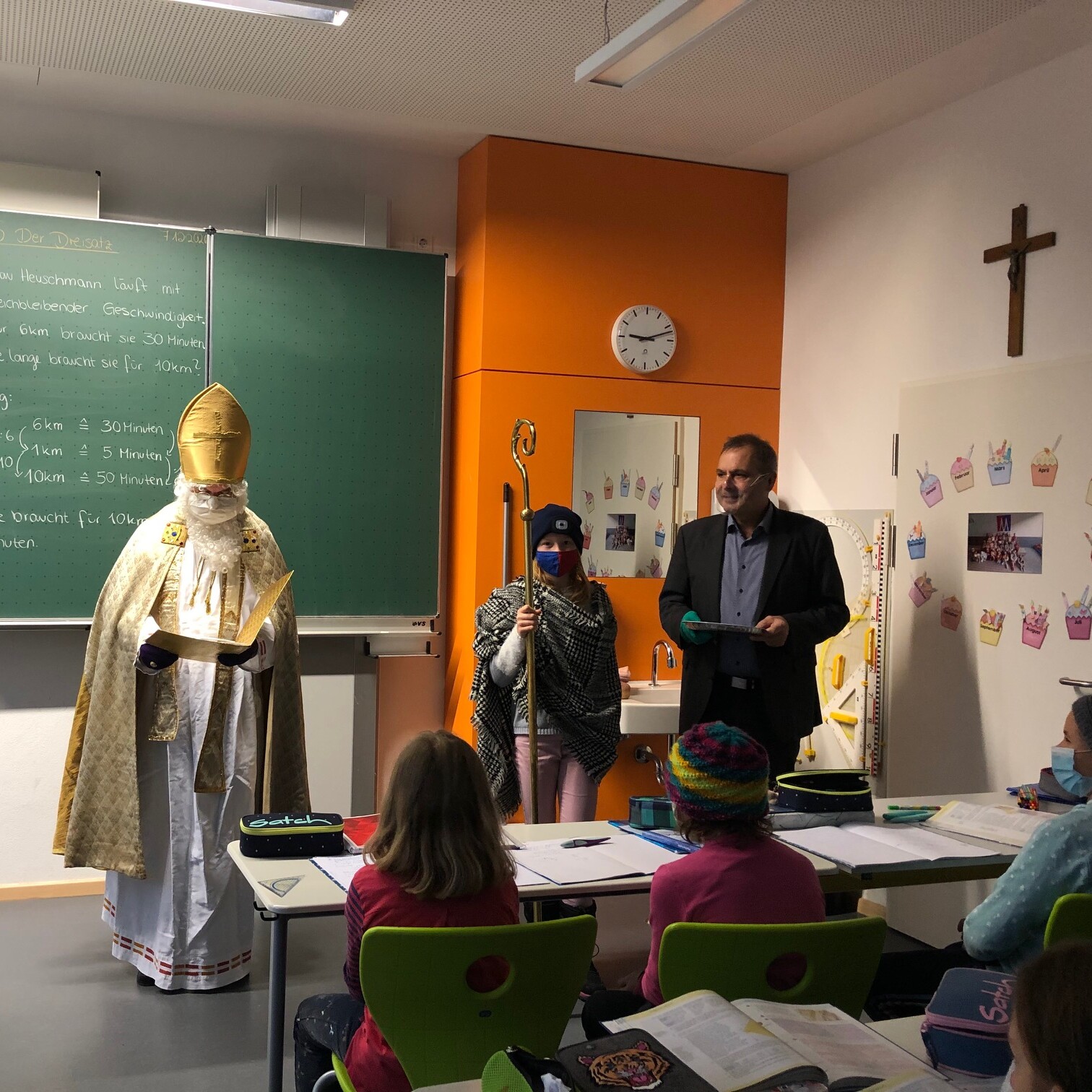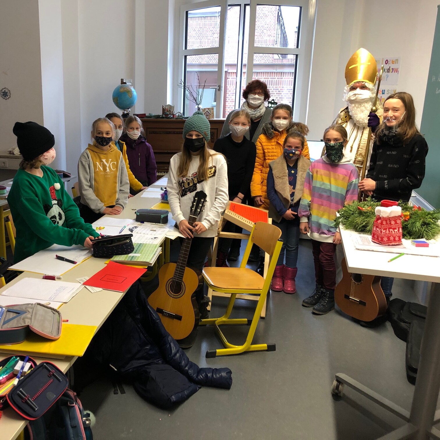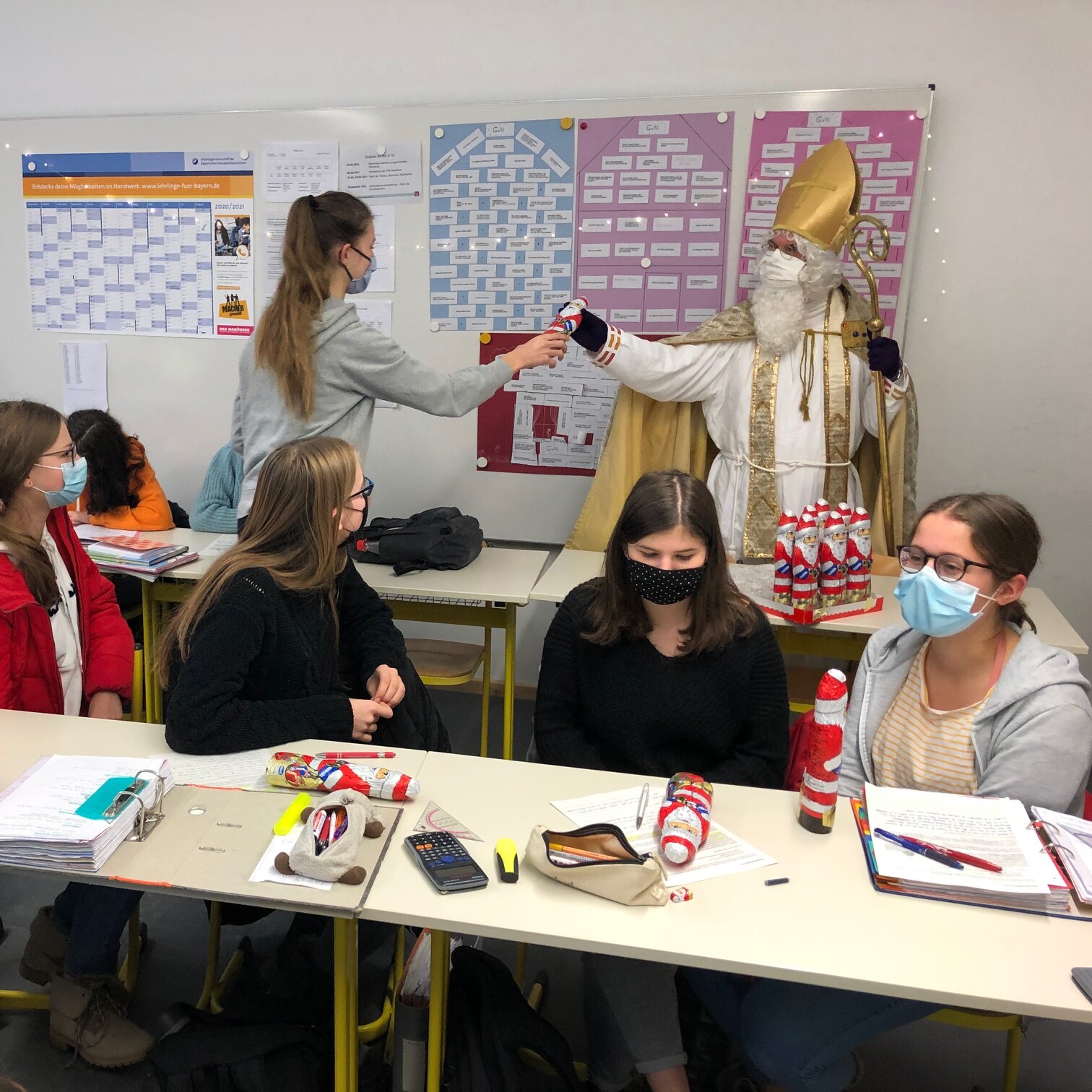 Der Nikolaus besucht die 5. Klassen - und die SMV verteilt Schokoladennikoläuse (großzügige Spende einer Mutter)