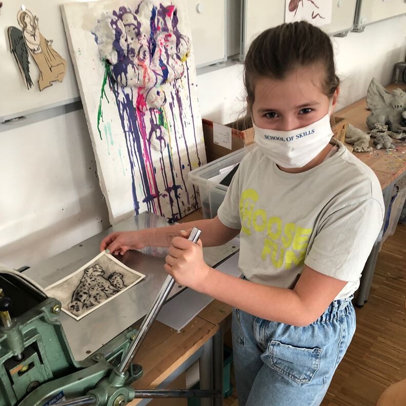 (u.a. Zauberkurs bei Frau Hardy und Druckgraphik-Workshop im Zeichensaal) während der vergangenen Notbetreuungswochen.