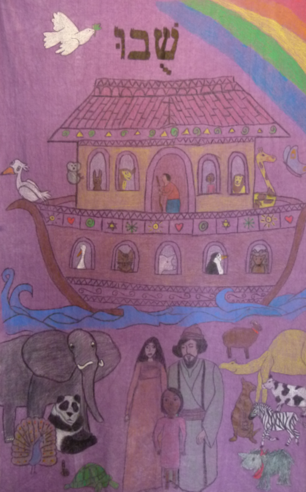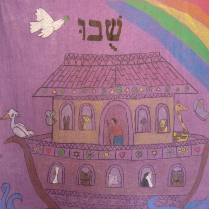 Dieses Hungertuch entstand im Schuljahr 2007/08 im Religionsunterricht einer 8. Klasse im Gymnasium bei Pfr. Albert zum Thema die Noah-Geschichte (Genesis 6-9) als Inspiration für die österliche Bußzeit.