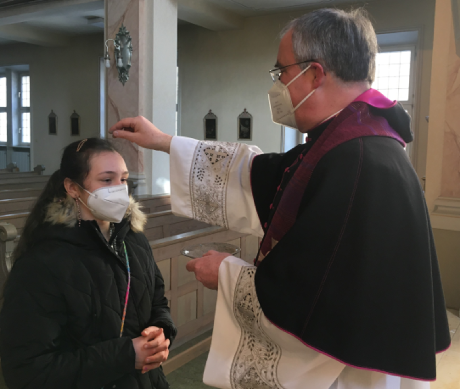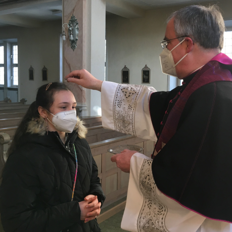 Die Austeilung des Aschenkreuzes geschieht in diesem Jahr am Mittwoch, den 17. Februar 2021, um 8:00 Uhr in der Schul-und Institutskirche für die Schülerinnen der Notbetreuung und den anwesenden Lehrkräften und MitarbeiterInnen. Nach der Segnung der Asche wird sie in Form eines Kreuzes aufgestreut mit den Worten: „Gedenke, Mensch, dass Du Staub bist und zum Staub zurückkehren wirst. Kehr um und glaube an das Evangelium, damit Du gerettet wirst!“