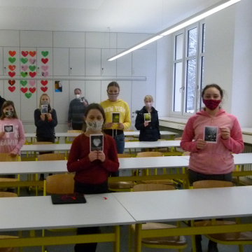 Domvikar Albert konnte einen Kartengruß aus München-Pasing von unserer ehemaligen Frau Oberin, M. Sieglinde Schneider CJ, an alle Mädels in der Notbetreuung und die anwesenden Mitarbeiter und Mitarbeiterinnen in der Schulleitung und dem Sekretariat verteilen. DANKE für das schöne Zeichen der bleibenden Verbundenheit!