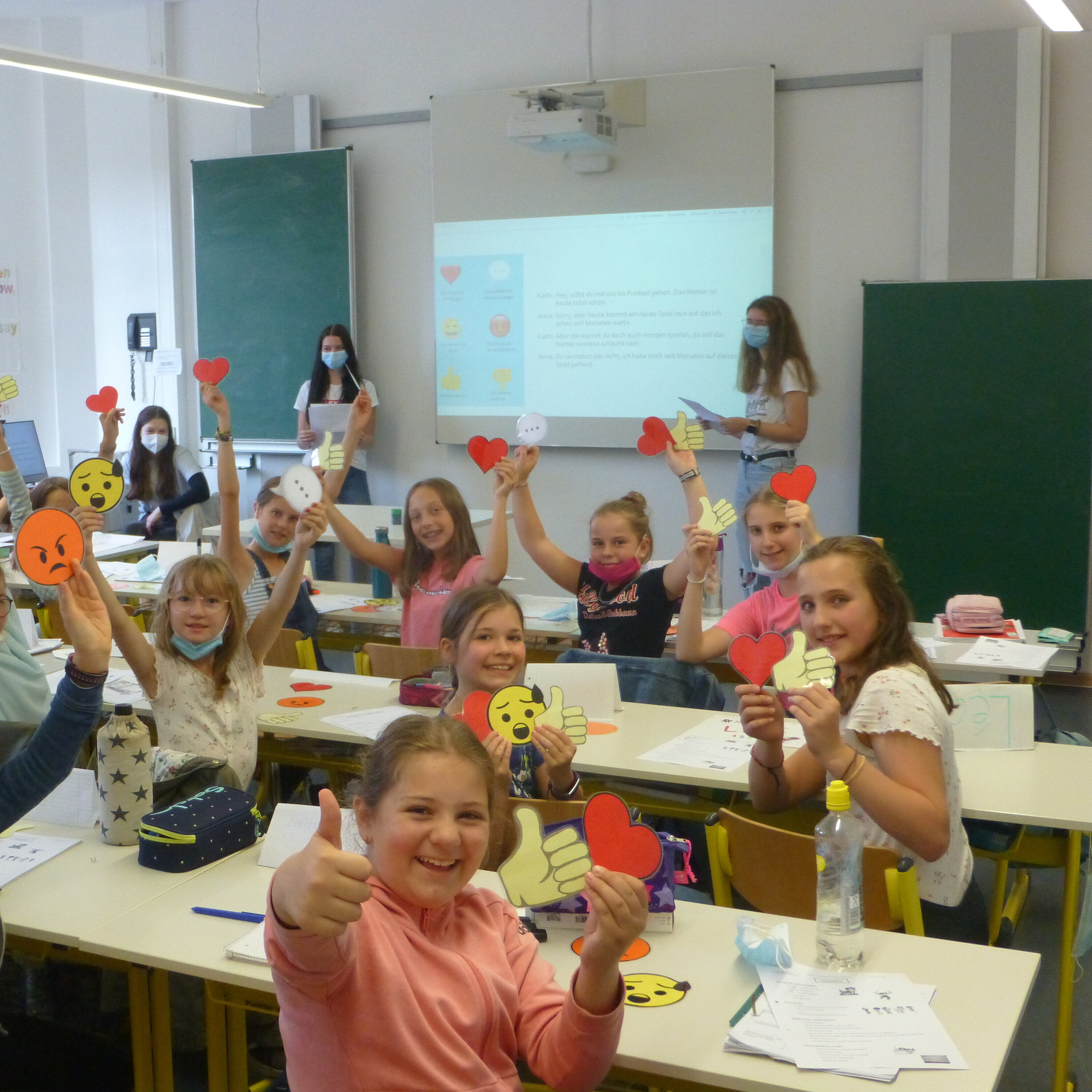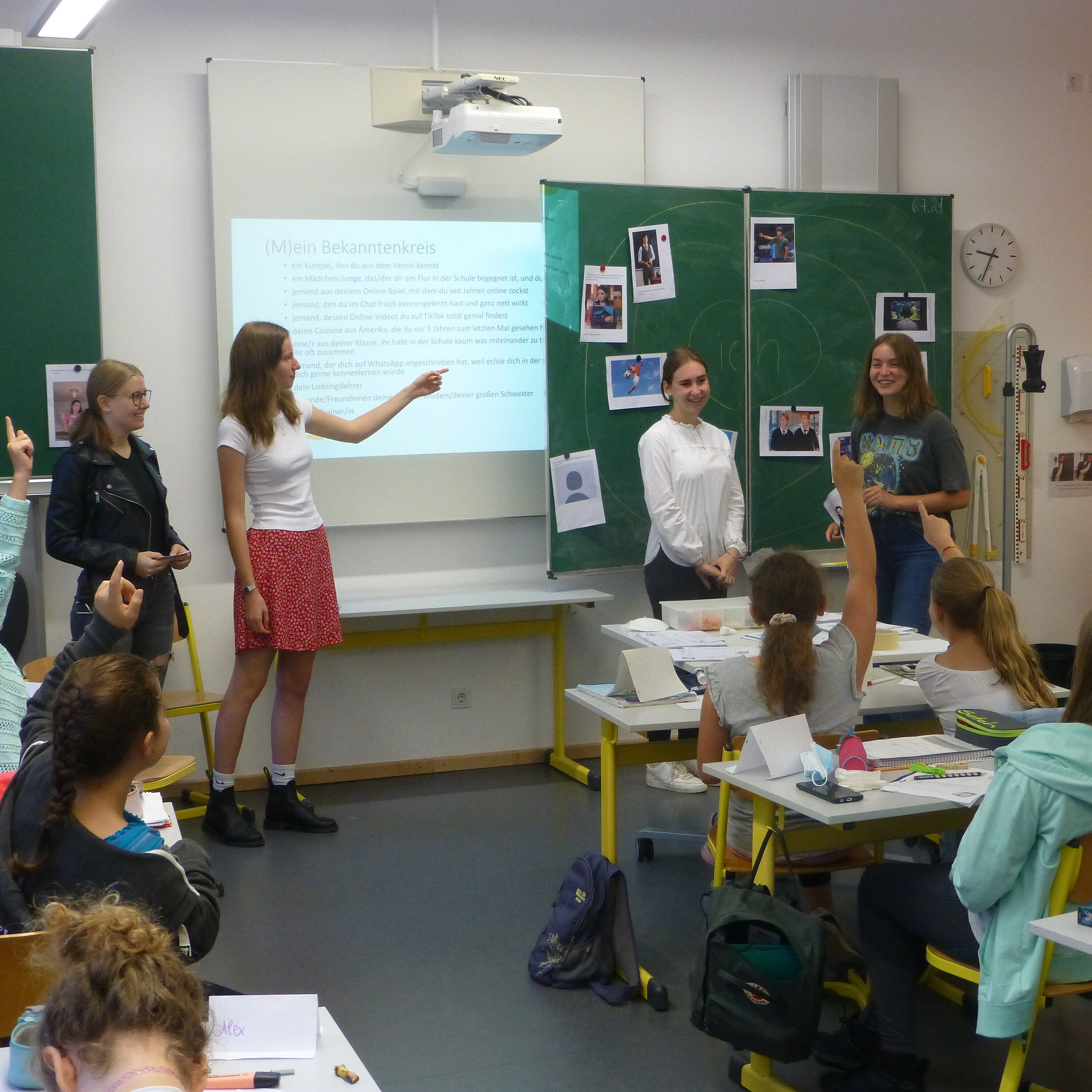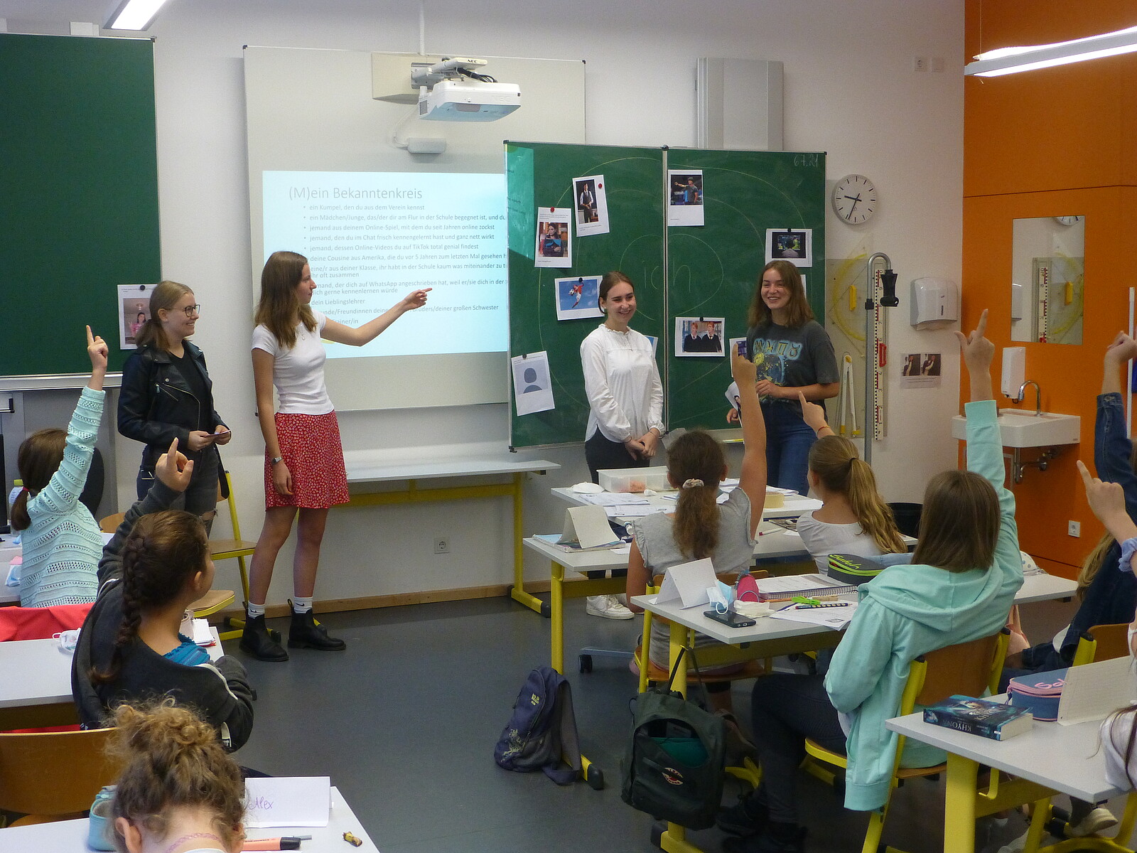 Am 15. und 16. Juli 2021 fanden die Netzgängertage für die fünfte Jahrgangsstufe statt. Wir, die 16 Teilnehmerinnen des P-Seminars Sozialkunde (Q11), hatten zum Ziel, die Schülerinnen über virtuelle Spielewelten, soziale Netzwerke, Cybermobbing und Recht im Netz aufzuklären - mit Erfolg: