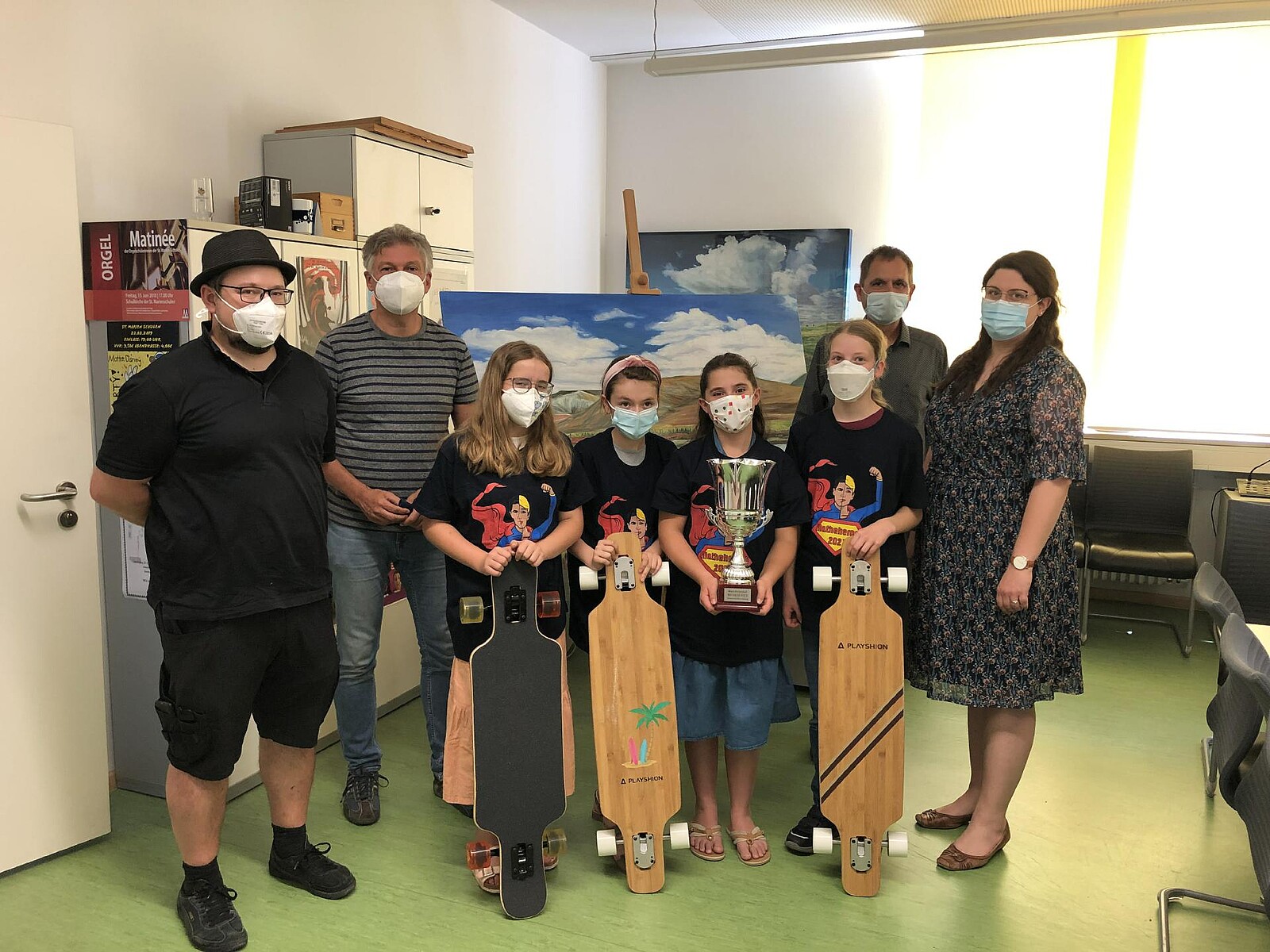 Am 22. Juli überreichte Herr Bergbauer den glücklichen Gewinnerinnen die Siegerurkunde, die Preise im Wert von über 1000 Euro und natürlich den Wanderpokal, der nun für zwei Jahre dem St. Marien-Gymnasium gehört! Herzlichen Glückwunsch!
