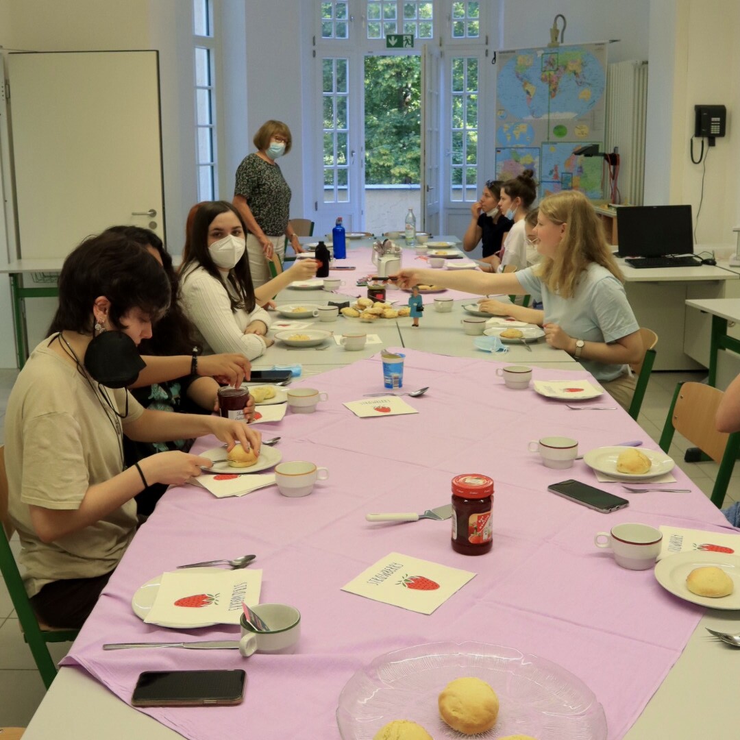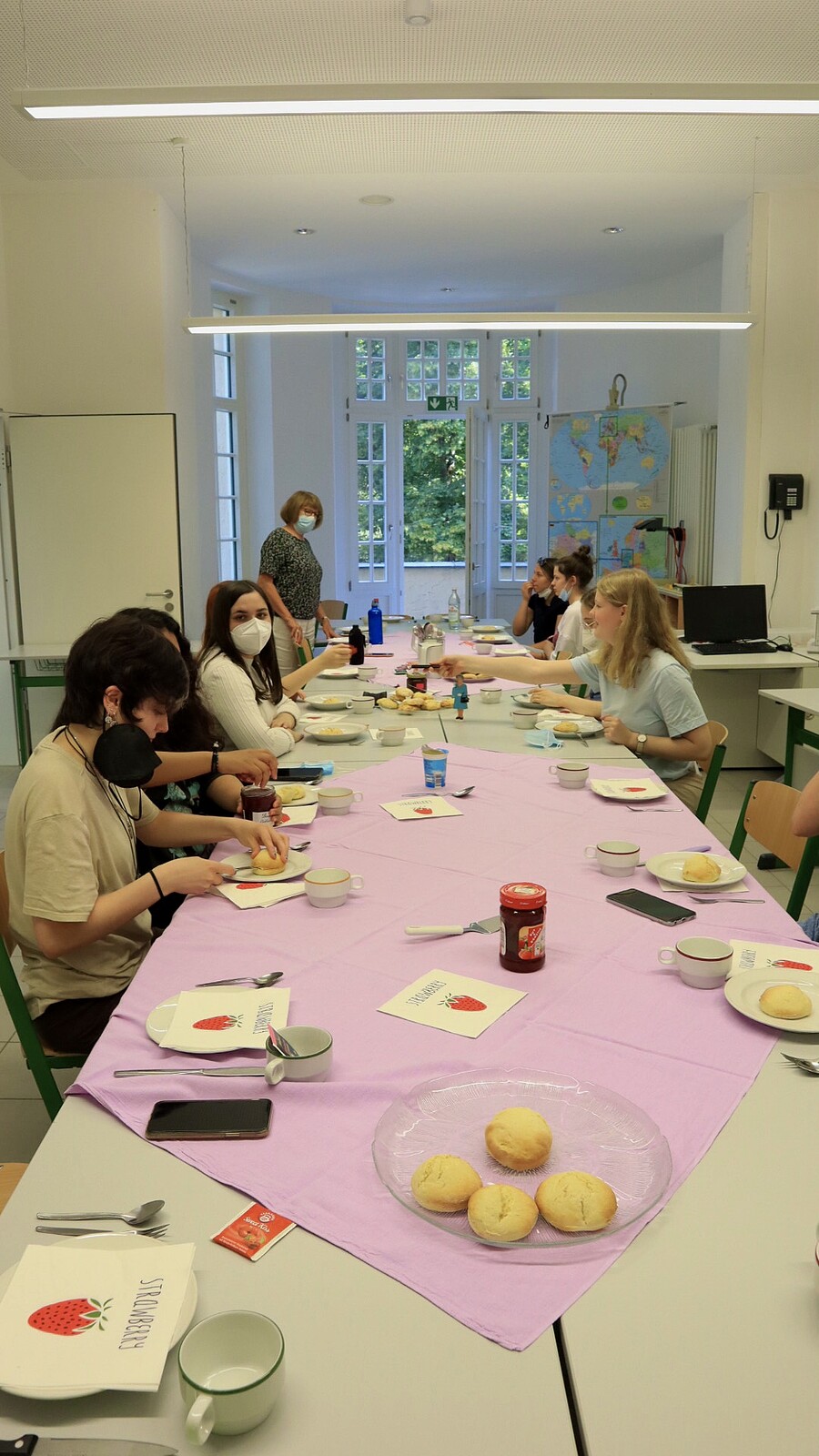 Am 19.07.2021 fand für die Klasse G 10C ein kleines Englisch Projekt statt. In der Schulküche wurden Britische Spezialitäten wie Scones, Brownies, Lemon Cake und Lemon Curd Tarts gebacken und anschließend bei einem Cream Tea gemeinsam genossen.