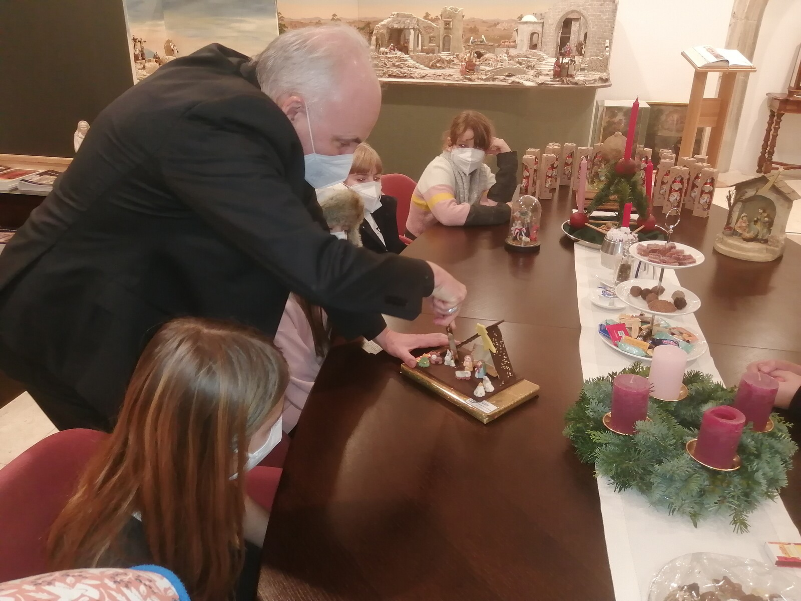 Krippenführung von Bischof Rudolf Voderholzer für die Teilnehmerinnen des Krippenbaukurses
