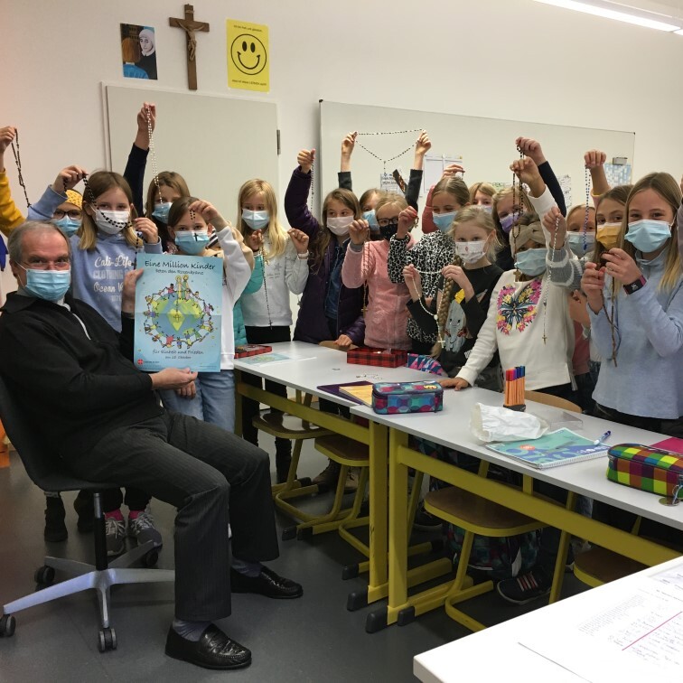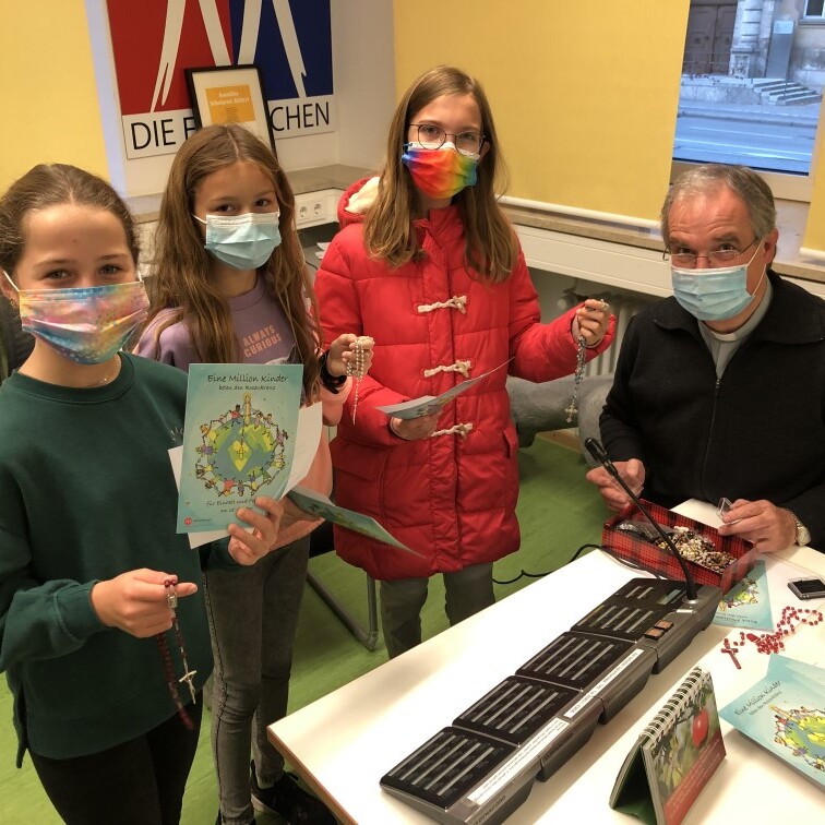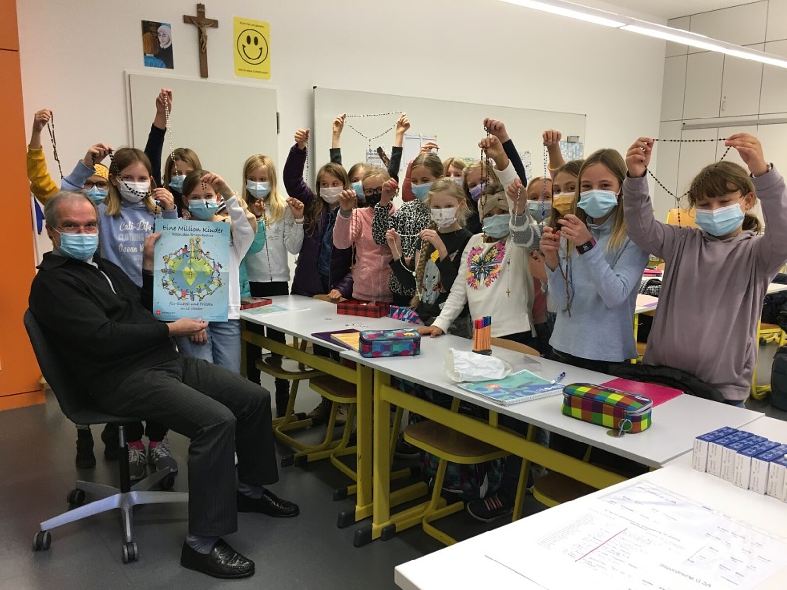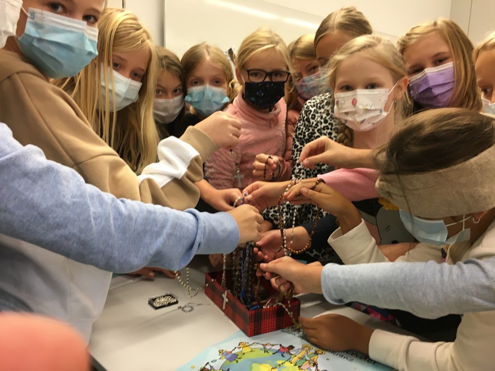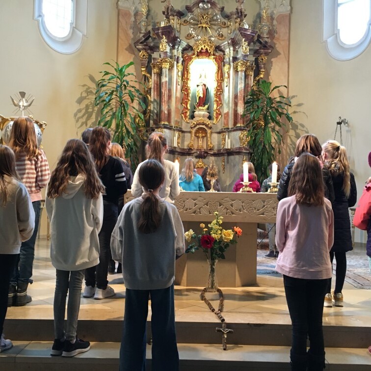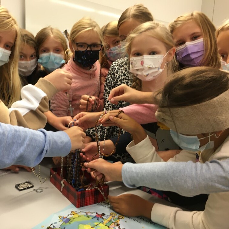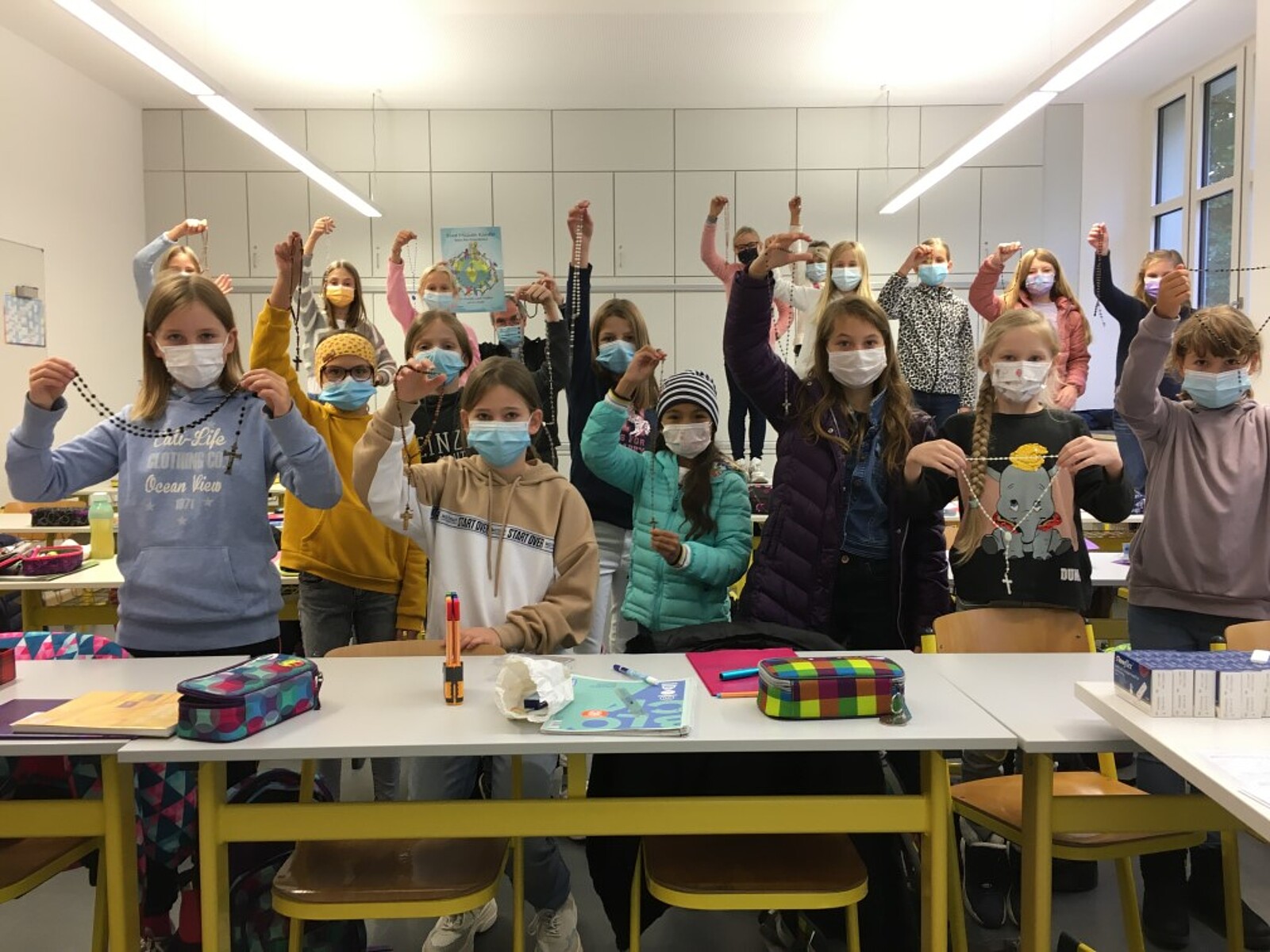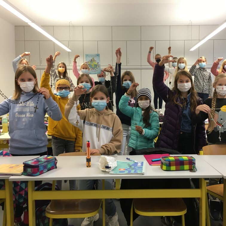 Rosenkranzaktion bei den ENGLISCHEN: Auf Anregung des neuen Schulstiftungsdirektors, Herrn Günter Jehl, hat auch unsere Schule in der vergangenen Woche an einer weltweiten Aktion zum Rosenkranzmonat Oktober teilgenommen. Ob beim gemeinsamen Morgengebet aller Klassen über die Mikroanlage der Schule oder bei verschiedenen Aktionen einzelner Klassen: das Rosenkranzgebet wurde erfolgreich als bewährte Form des Gebetes ins Bewusstsein gehoben.