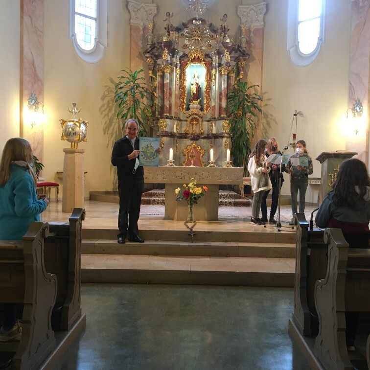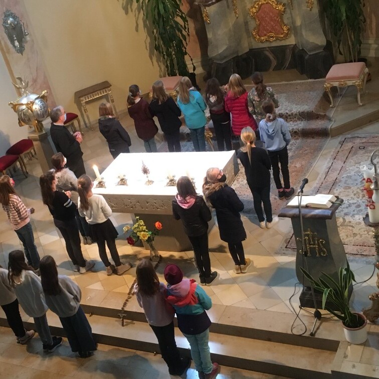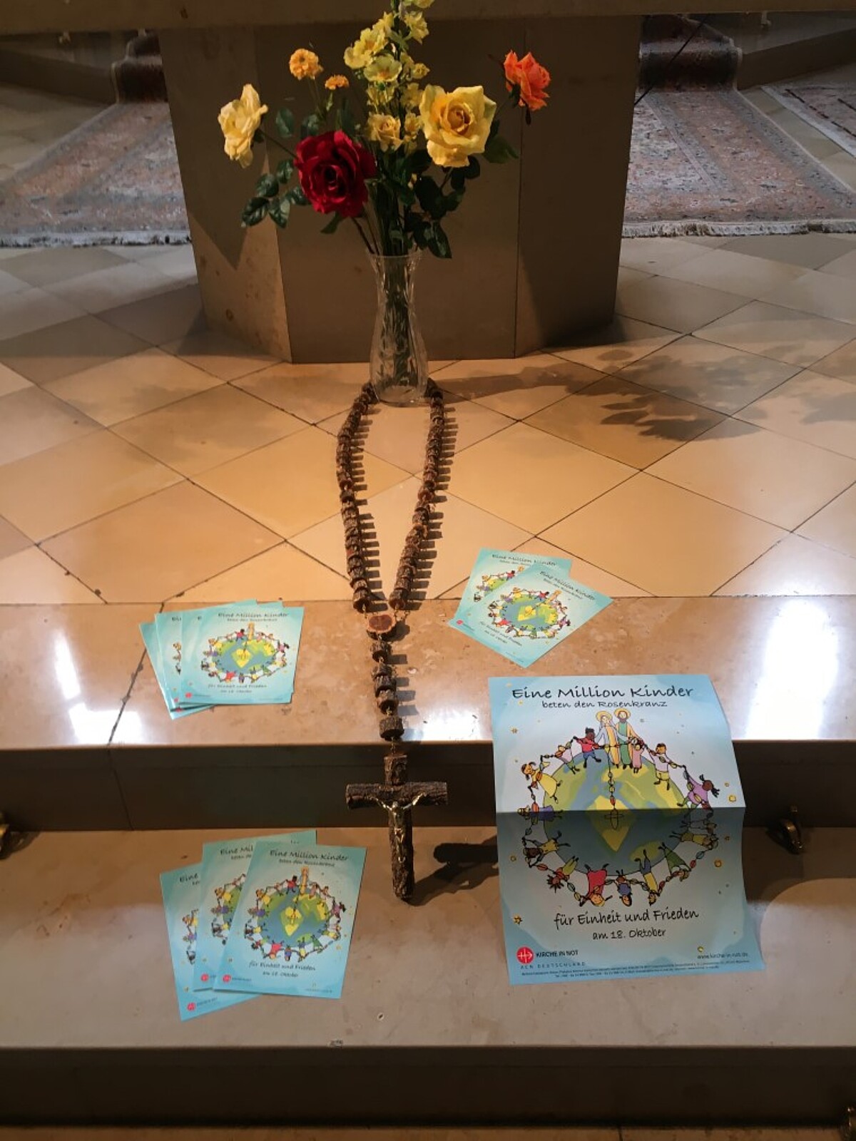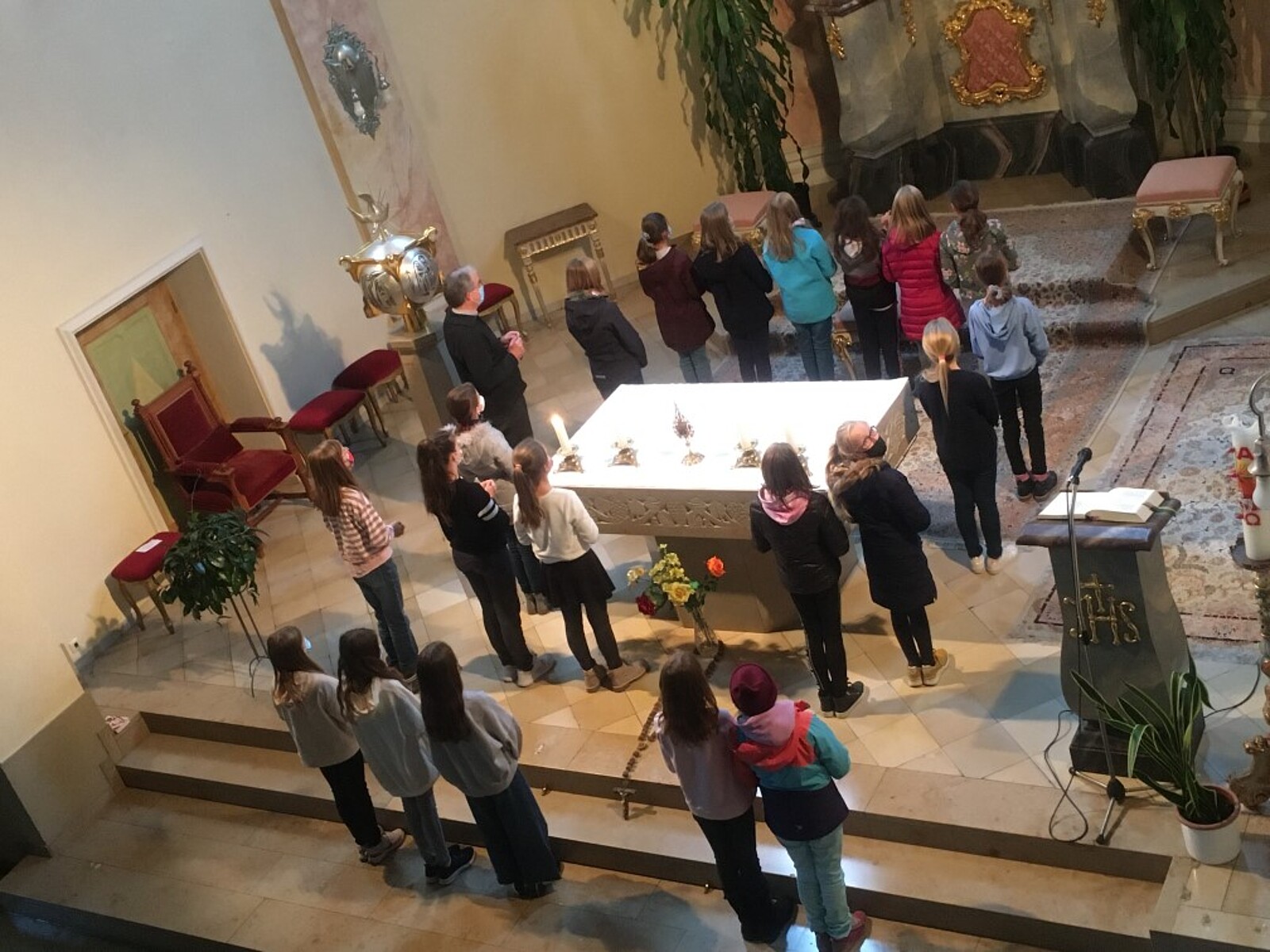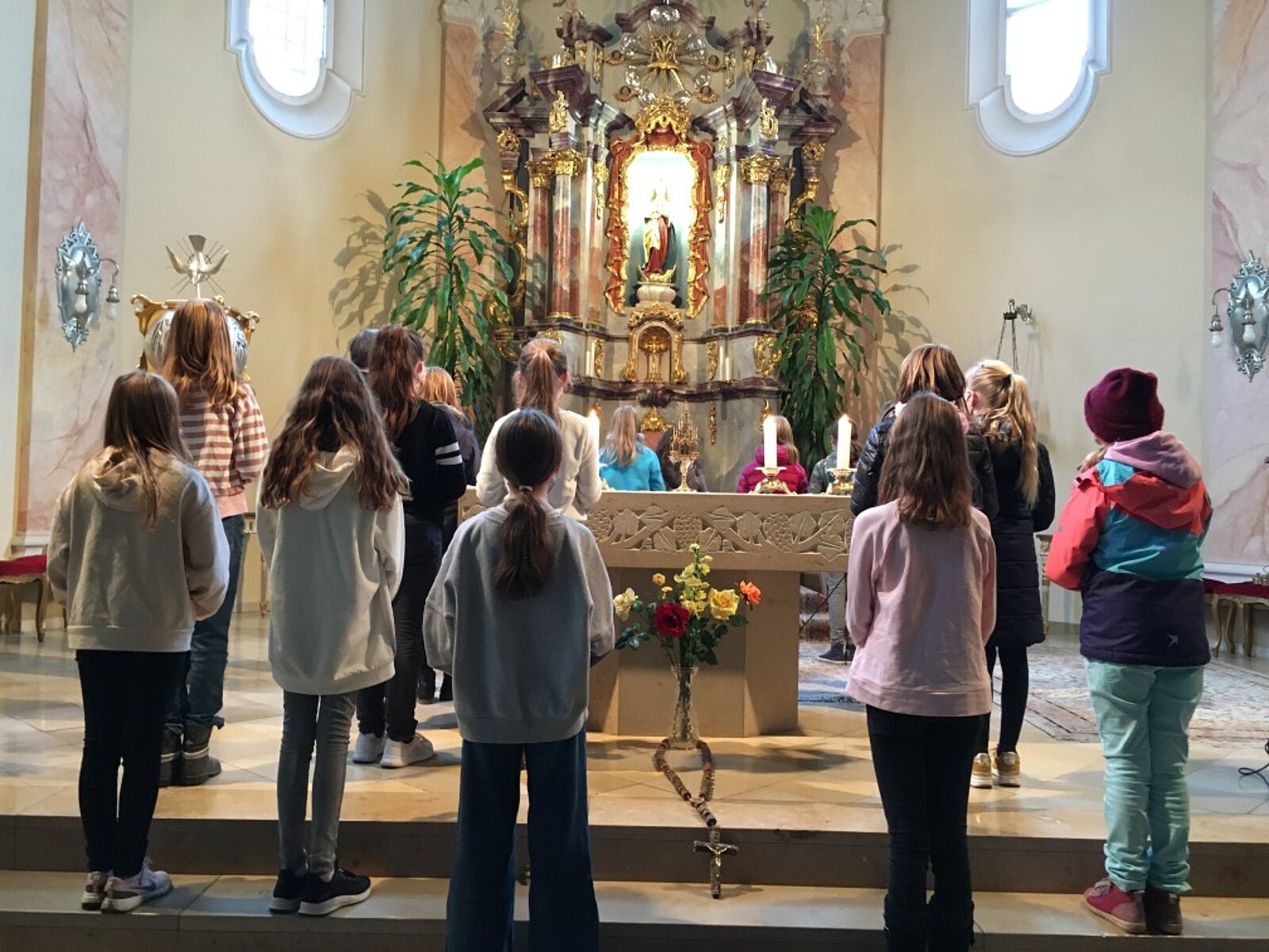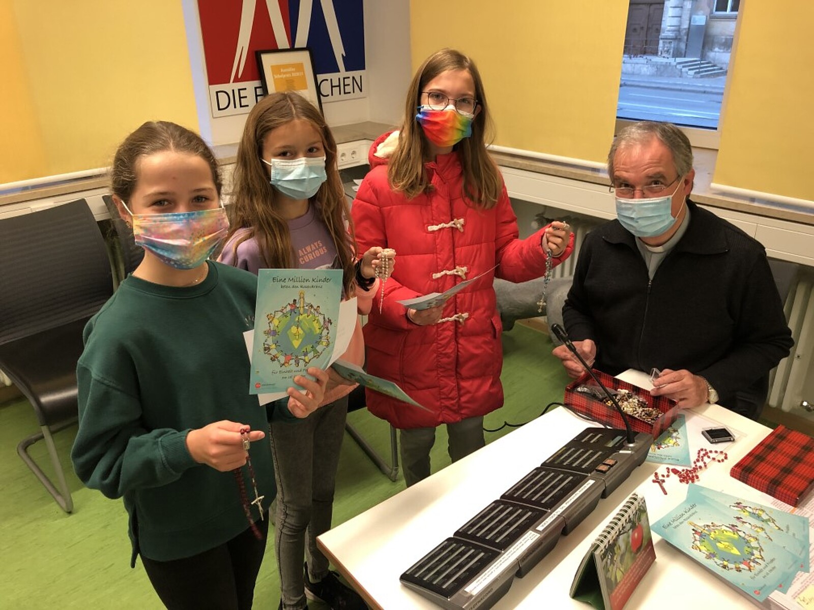 Rosenkranzaktion bei den ENGLISCHEN: Auf Anregung des neuen Schulstiftungsdirektors, Herrn Günter Jehl, hat auch unsere Schule in der vergangenen Woche an einer weltweiten Aktion zum Rosenkranzmonat Oktober teilgenommen. Ob beim gemeinsamen Morgengebet aller Klassen über die Mikroanlage der Schule oder bei verschiedenen Aktionen einzelner Klassen: das Rosenkranzgebet wurde erfolgreich als bewährte Form des Gebetes ins Bewusstsein gehoben.