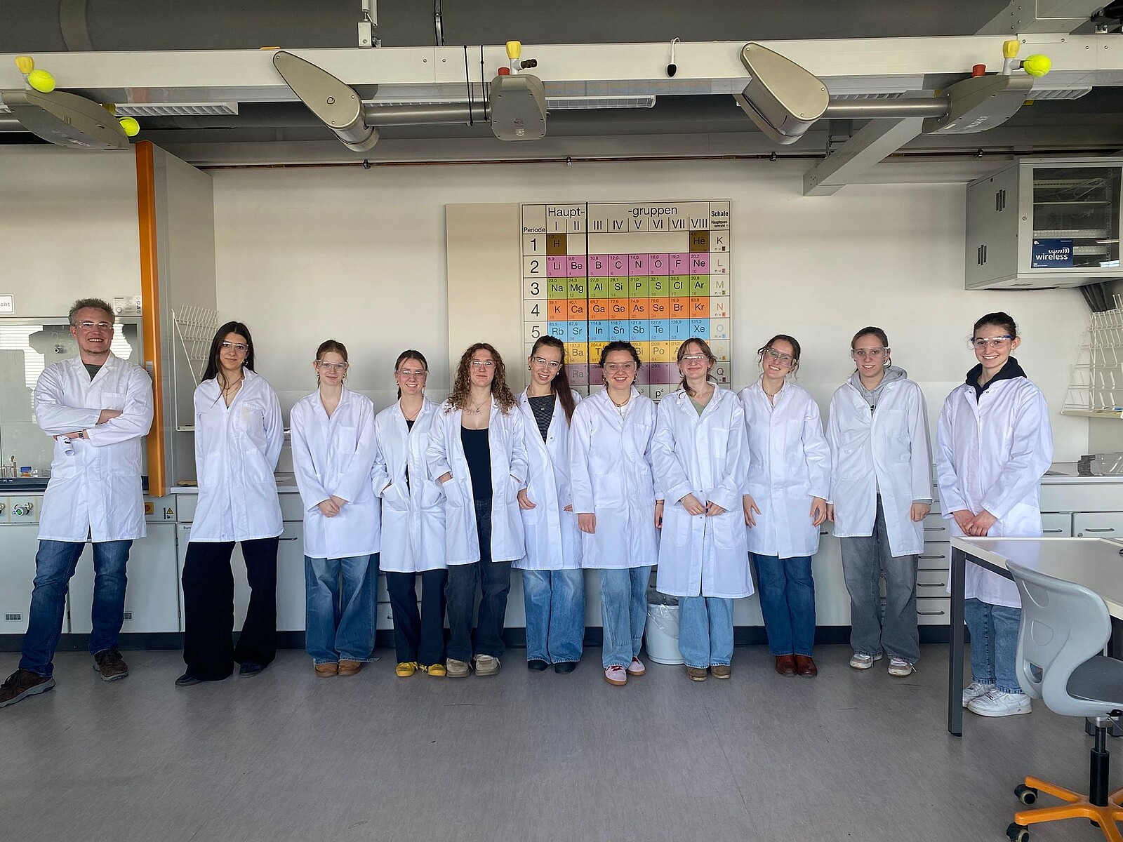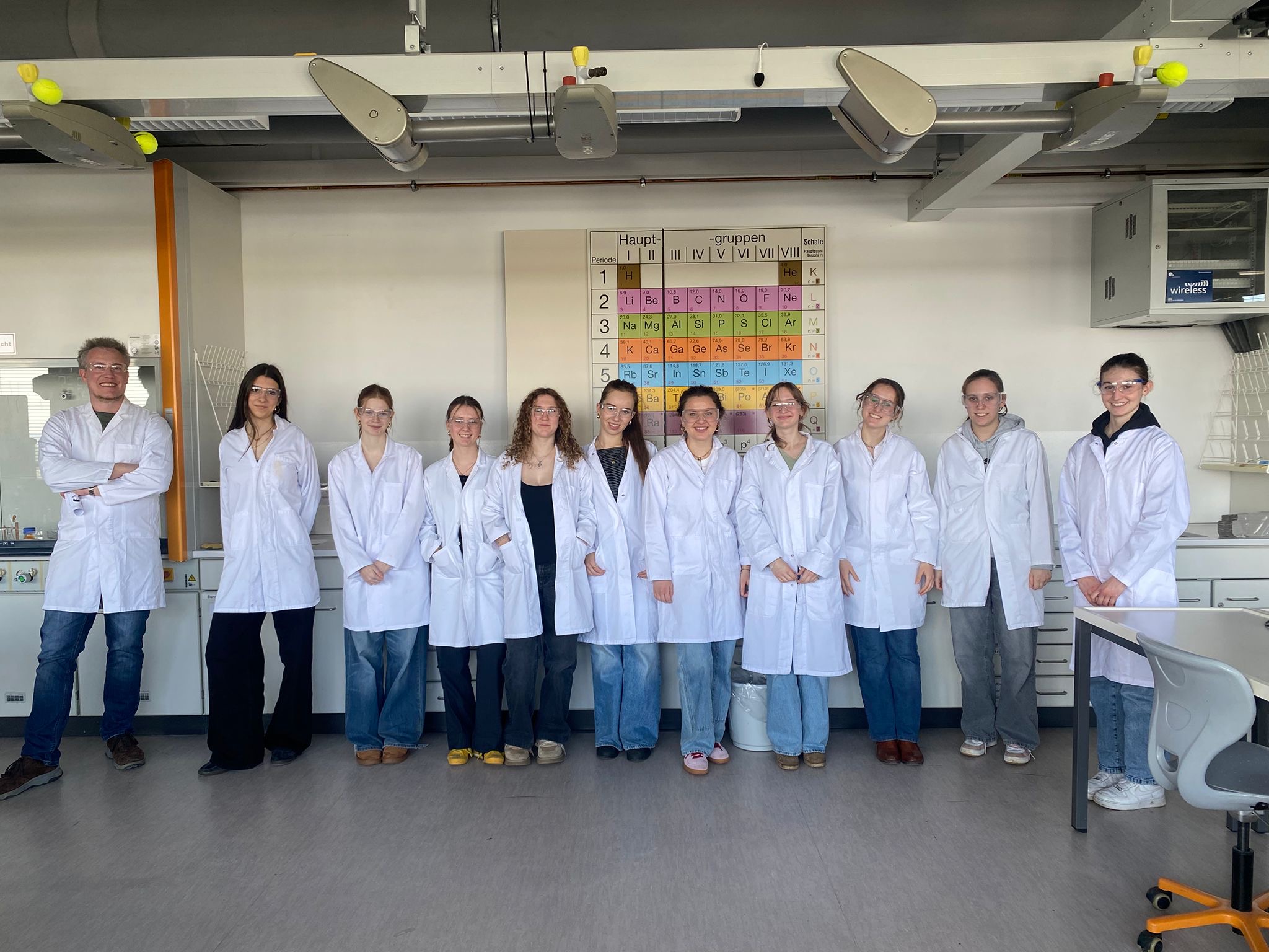 Der Tag begann mit dem Besuch einer Vorlesung von Dr. Alexander Pfab, in der wir unser Wissen aus dem Schulunterricht erweitern und vertiefen konnten. Im Anschluss wurden wir im Seminarraum bewirtet (Herzlichen Dank! ) und nutzten die Gelegenheit, in einer offenen Fragerunde mit dem Dozenten sowohl inhaltliche Aspekte der Vorlesung zu klären als auch mehr über das Biochemiestudium und das Berufsbild einer Biochemikerin zu erfahren. Ein weiterer Höhepunkt war die Führung durch die Labore des Lehrstuhls. Außerdem erklärte und demonstrierte uns Dr. Astrid Bruckmann hier die Methode der Massenspektrometrie – ein zentrales Verfahren zur Analyse von Molekülstrukturen. Danach gab uns Prof. Dr. Christoph Engel einen anschaulichen Einblick in die Kryo-Elektronenmikroskopie, eine hochmoderne Technik zur Darstellung biologischer Makromoleküle. Zum Abschluss durften wir sogar ein entsprechendes Elektronenmikroskop aus nächster Nähe betrachten. Der Tag war sowohl lehrreich als auch unterhaltsam. Wir danken allen Beteiligten an der Universität Regensburg für die Zeit, das Engagement, die spannenden Einblicke und die vielen Kekse und Brezen. Es war eine tolle Gelegenheit, über den Schulalltag hinaus in die Welt der modernen Biochemie einzutauchen.