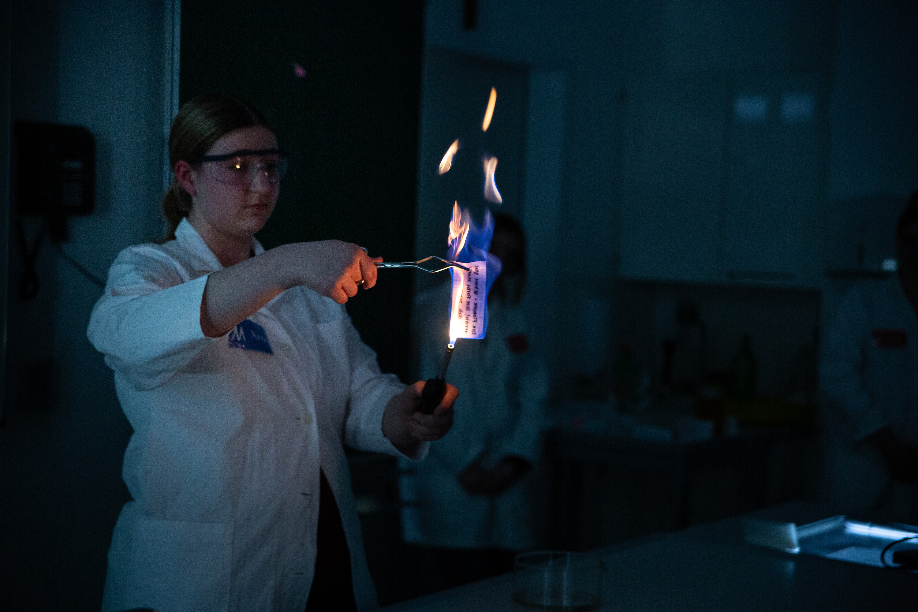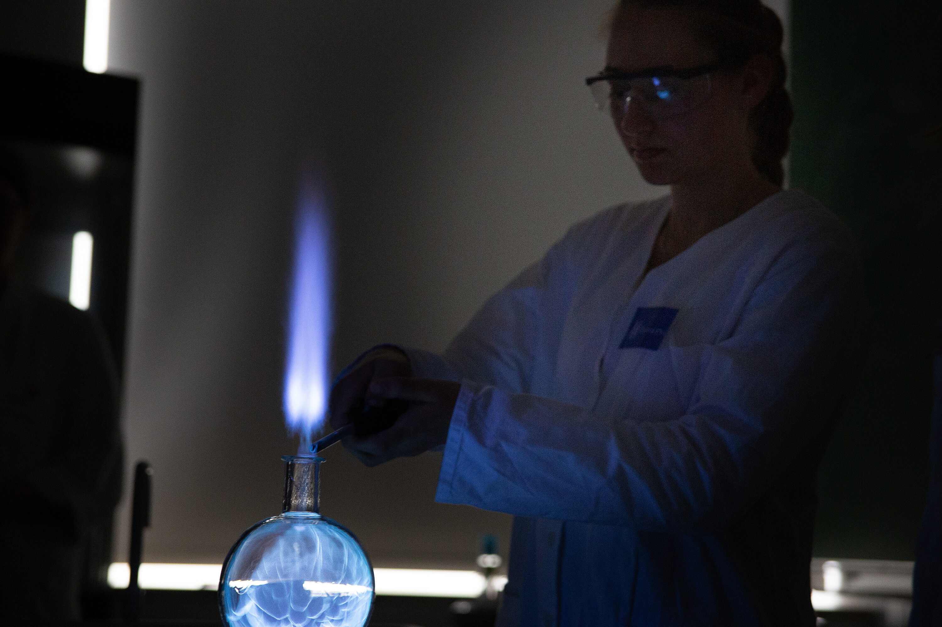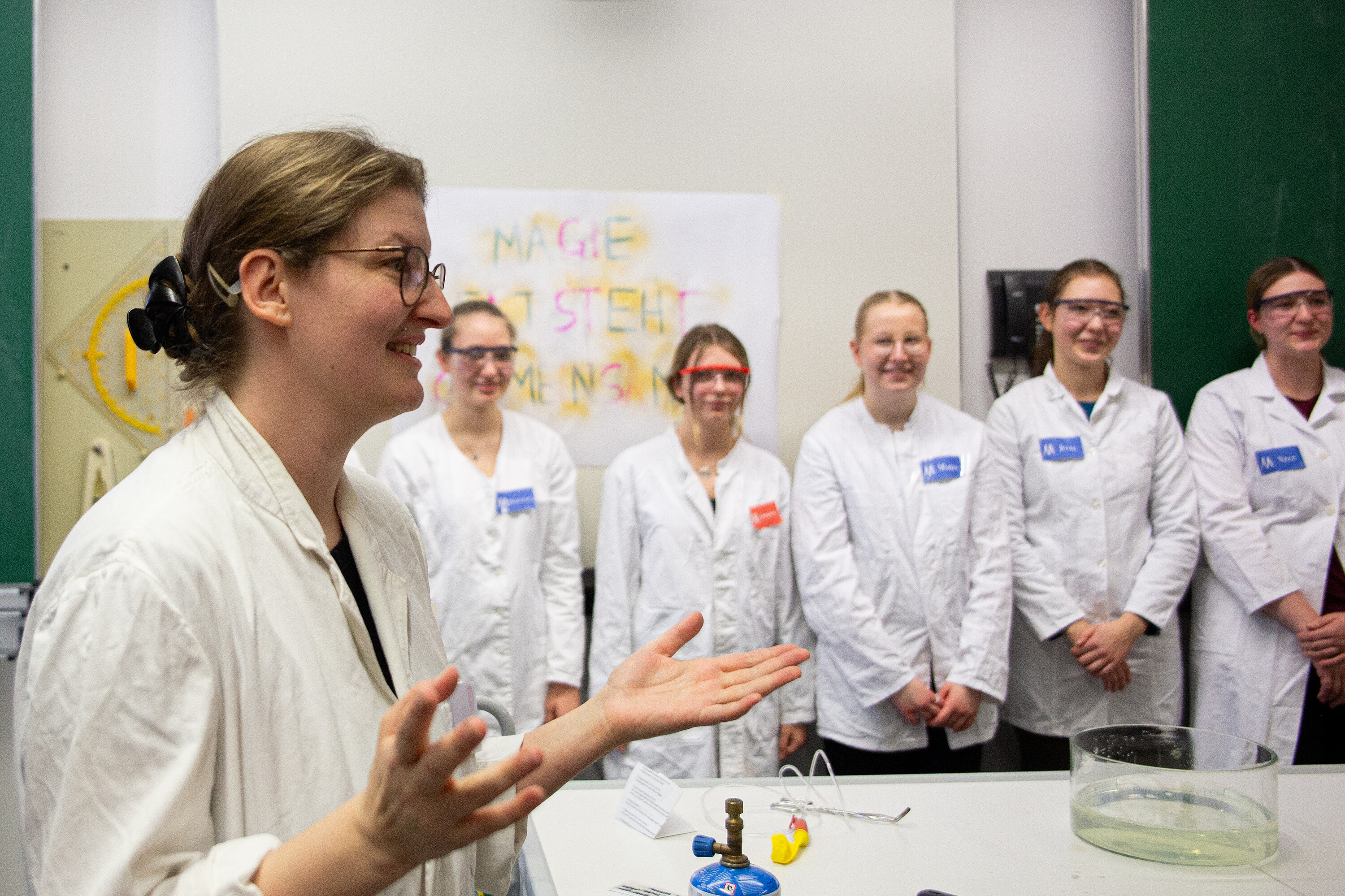 Bei der diesjährigen Chemieshow am Tag der offenen Tür wurde eindrucksvoll gezeigt, wie spannend Chemie sein kann – und vor allem, was unsere Schülerinnen auf die Beine stellen können. Die Experimente wurden vollständig von Schülerinnen der 11. und 12. Klasse durchgeführt, die mit viel Engagement und Können durch die Show führten.