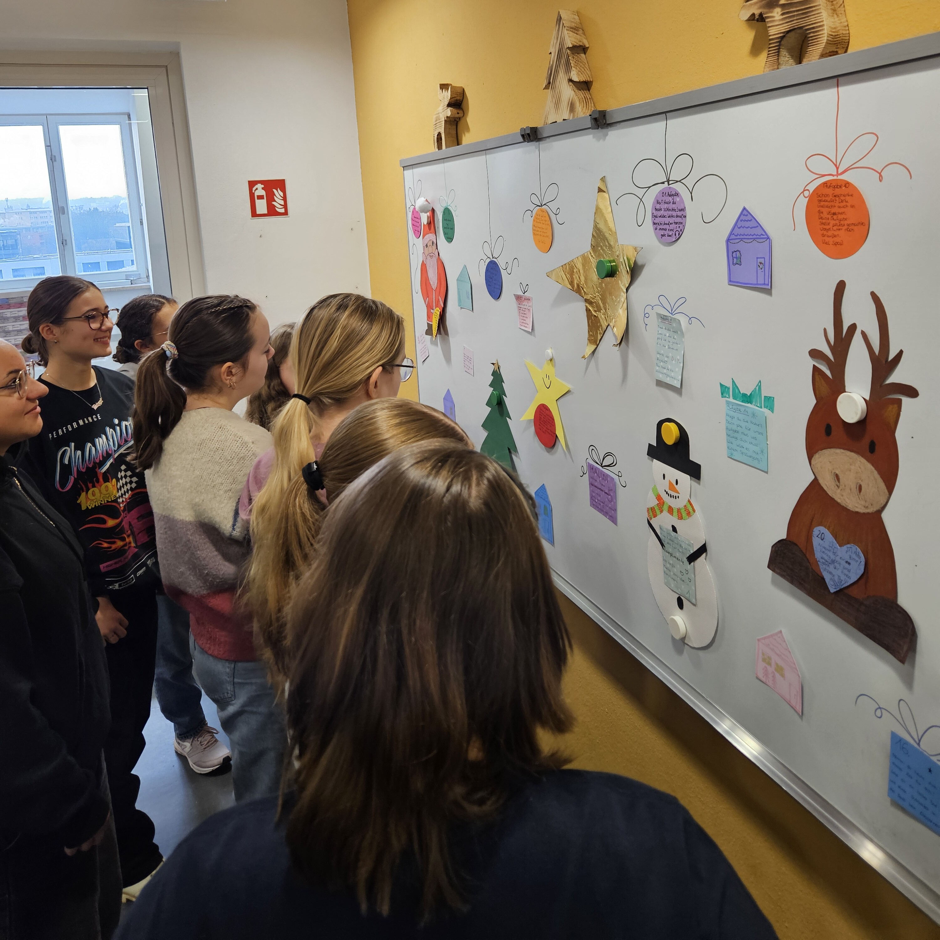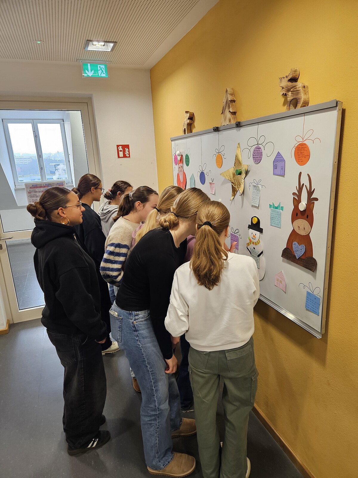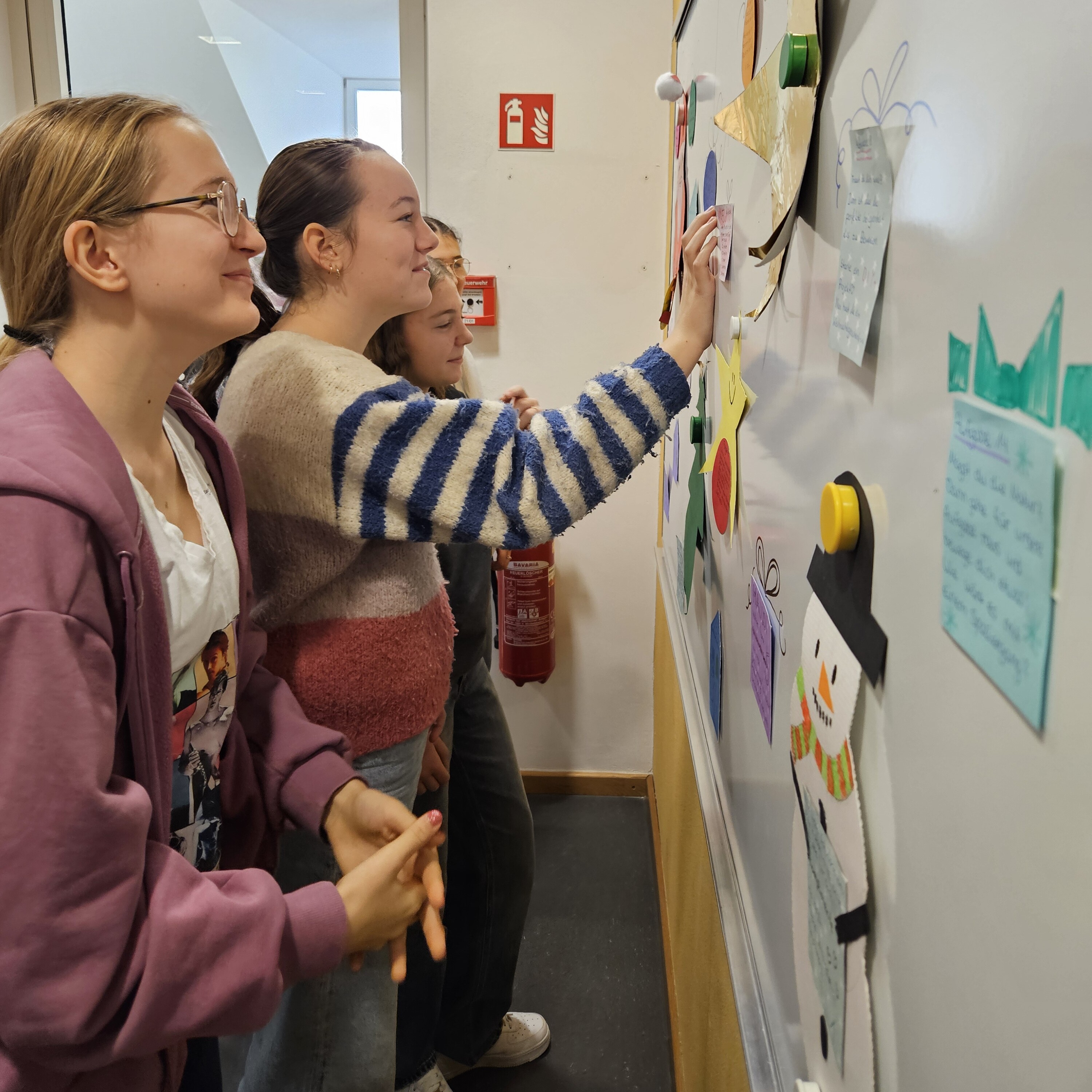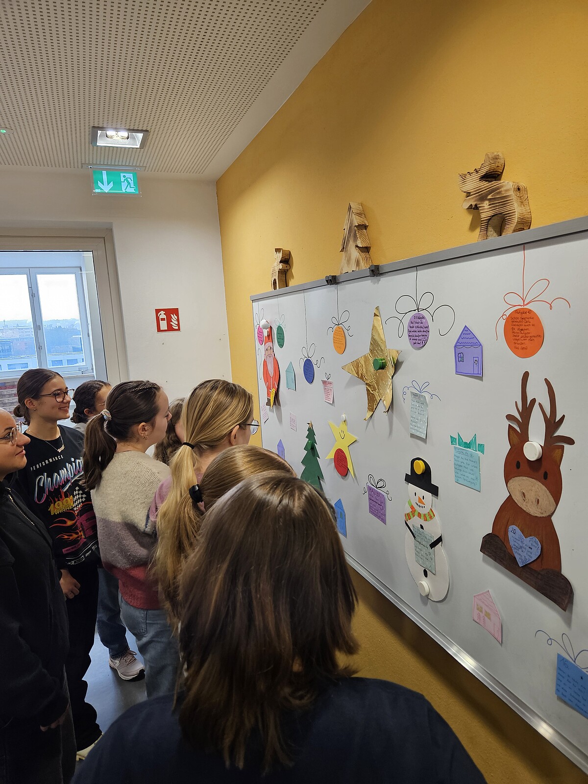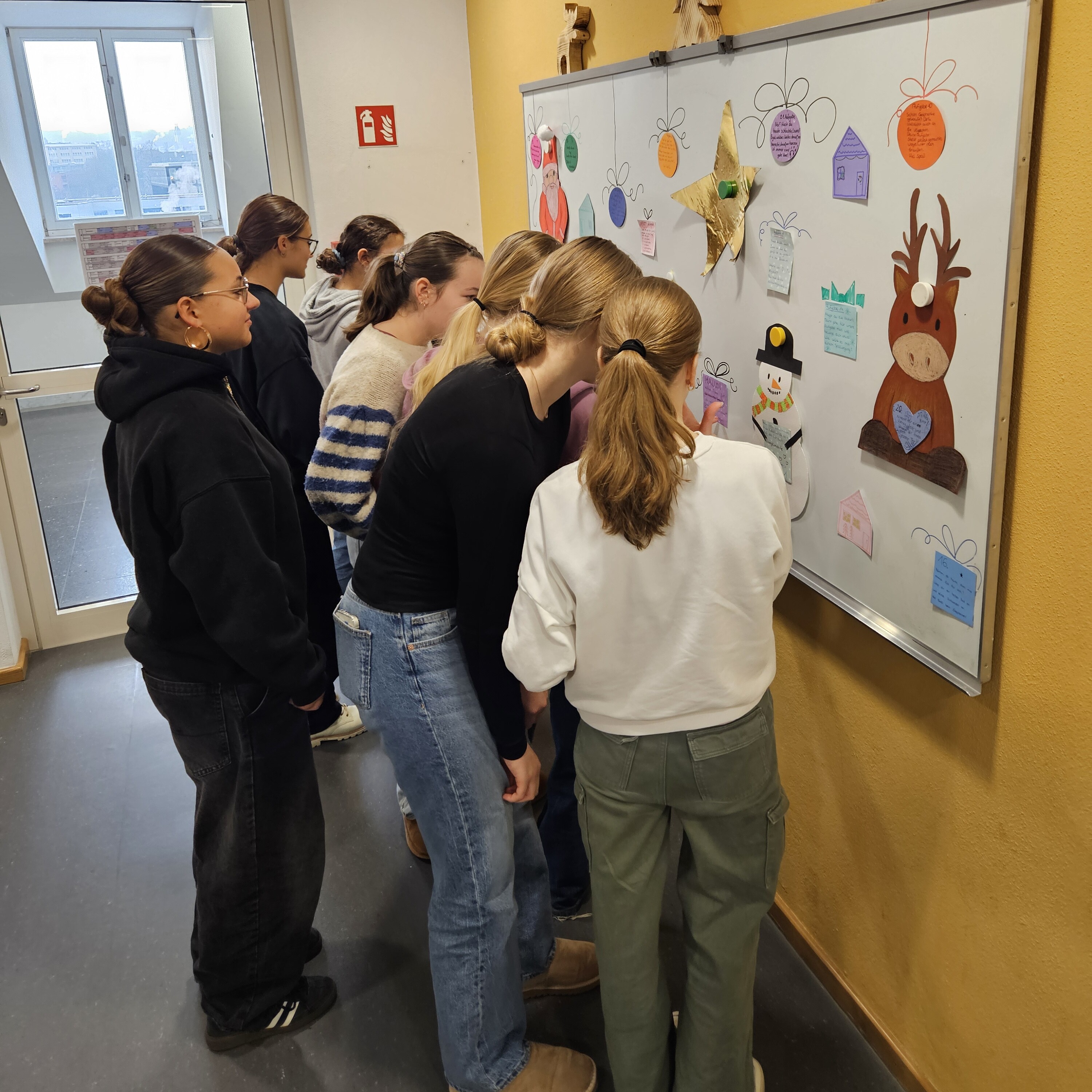 Seit vielen Jahren gibt es im Schulhaus einen Adventskalender zum Mitmachen. Kleine Aufgaben laden zum Nachdenken oder zu verschiedenen Aktionen ein, um sich und anderen eine Freude zu machen. Das „Abenteuer Advent“ enthält 24 verschiedene Ideen für Schülerinnen, die sich darauf einlassen. Diese Form der Vorbereitung auf Weihnachten hat an der Schule eine lange Tradition und wird von den Schülerinnen gern genutzt.