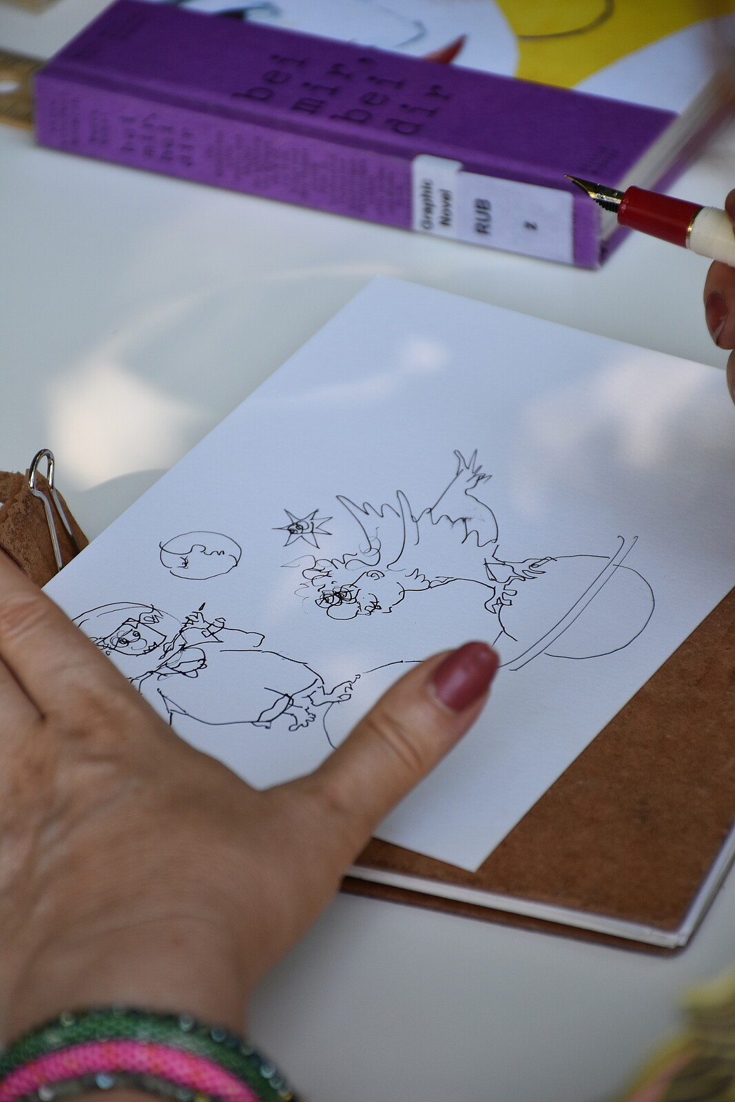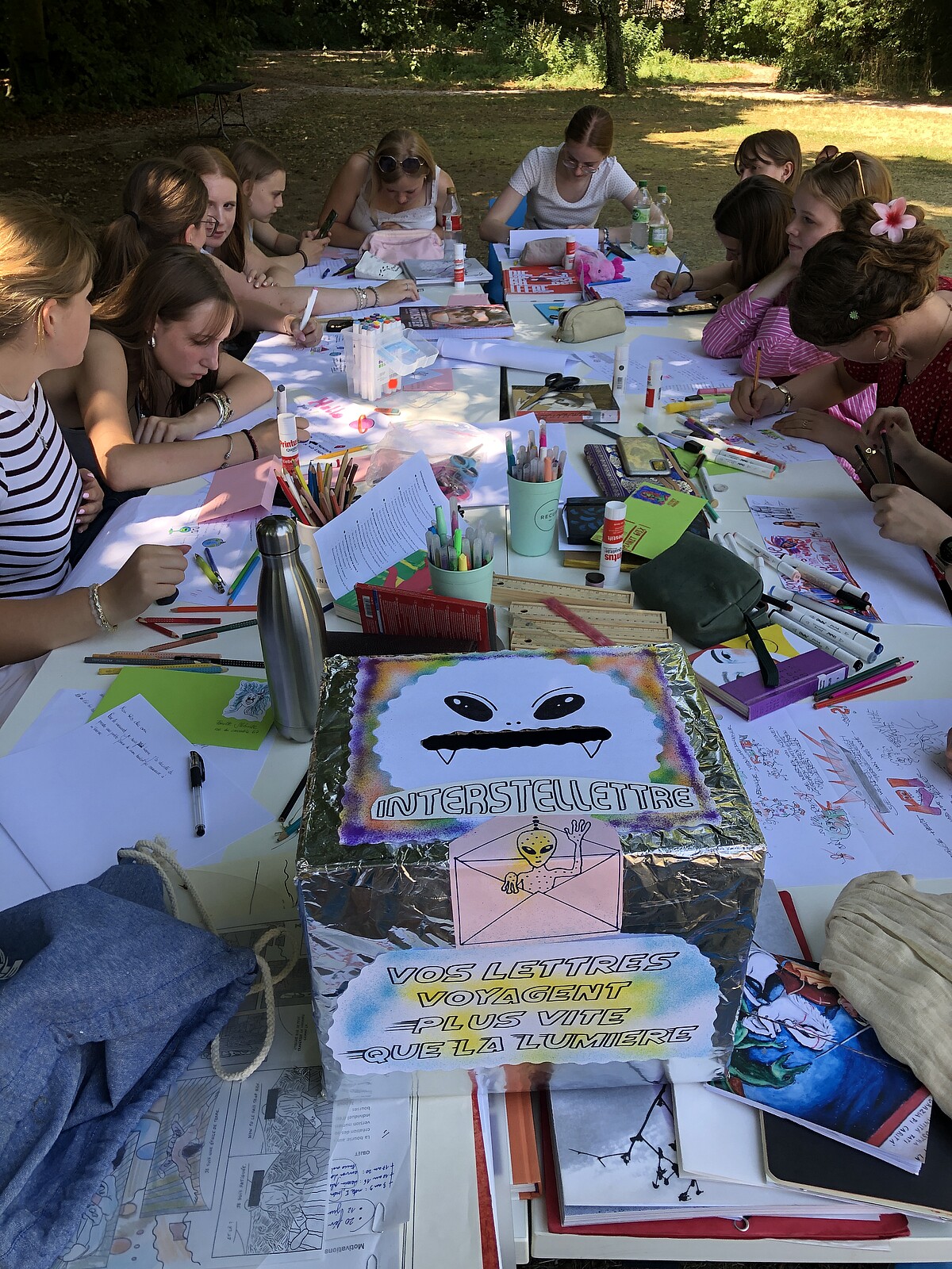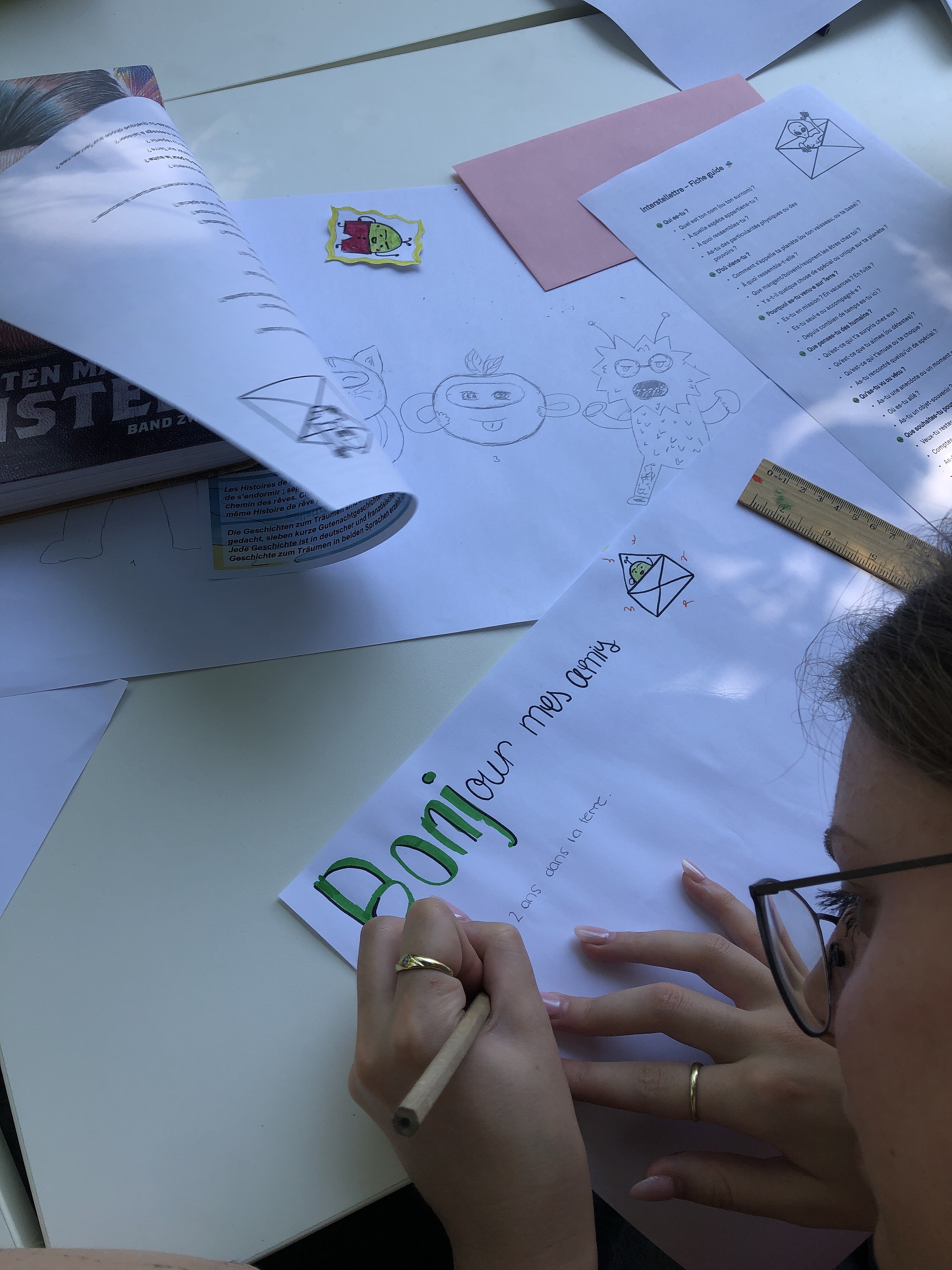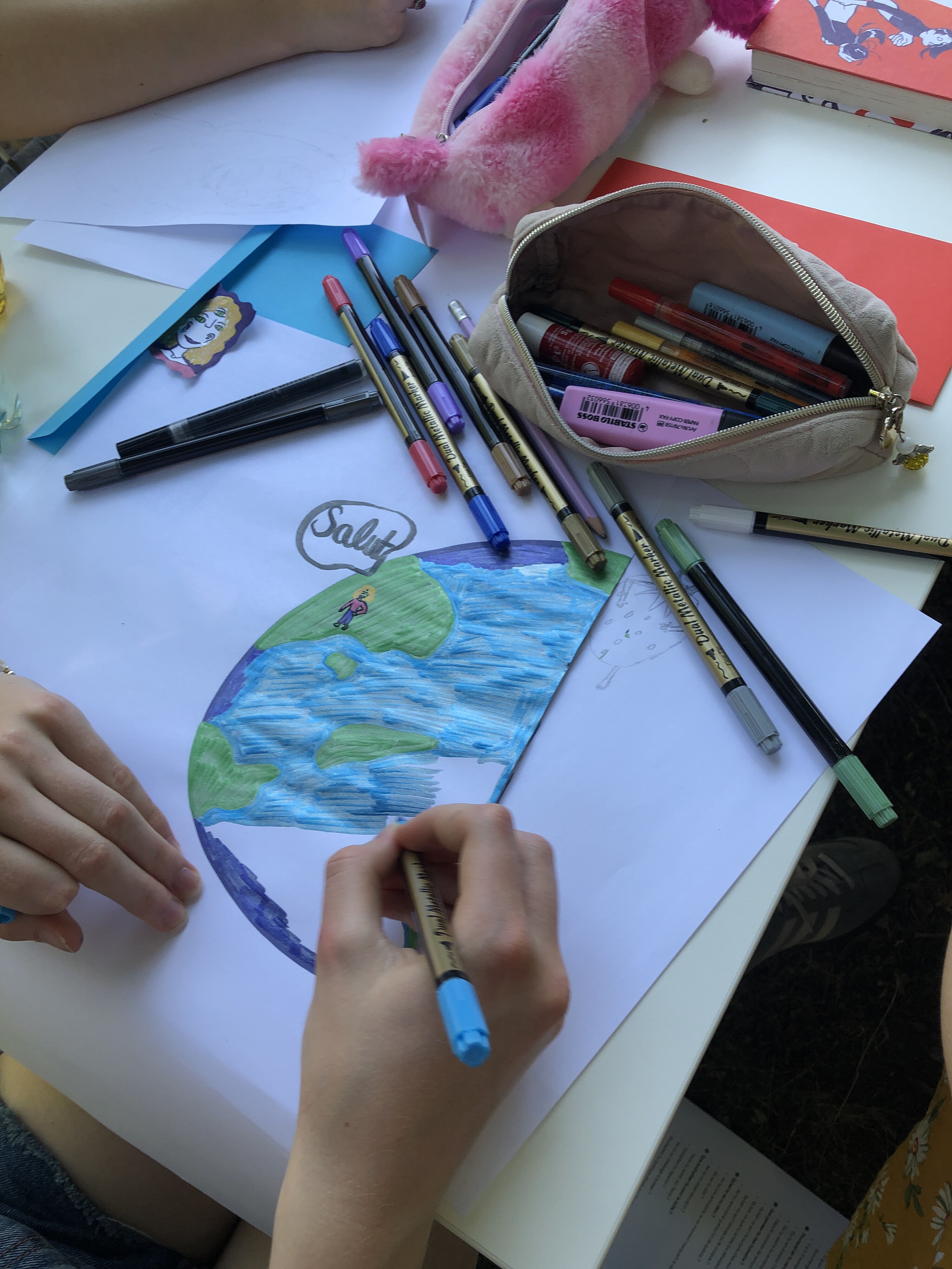 Unter der Leitung der Comic-Zeichnerin Noémie Chust, nehmen die Schülerinnen und Lehrer die Perspektive eines Außerirdischen ein, der für ein paar Tage die Erde besucht und erstellen einen Comic mit Briefcharakter für die Verwandten im Weltall. Sie berichten von ihren Erfahrungen auf dem Planeten, wie sie die Lebewesen, die Gegenstände, Dörfer und Städte dort empfinden. Vielen kommt der Planet Erde recht komisch vor … genauso wie dem kleinen Prinzen, den die Schülerinnen im Französisch-Unterricht bereits kennengelernt haben. Wir bedanken uns beim Institut Français für die persönliche Einladung und den kreativen Vormittag.