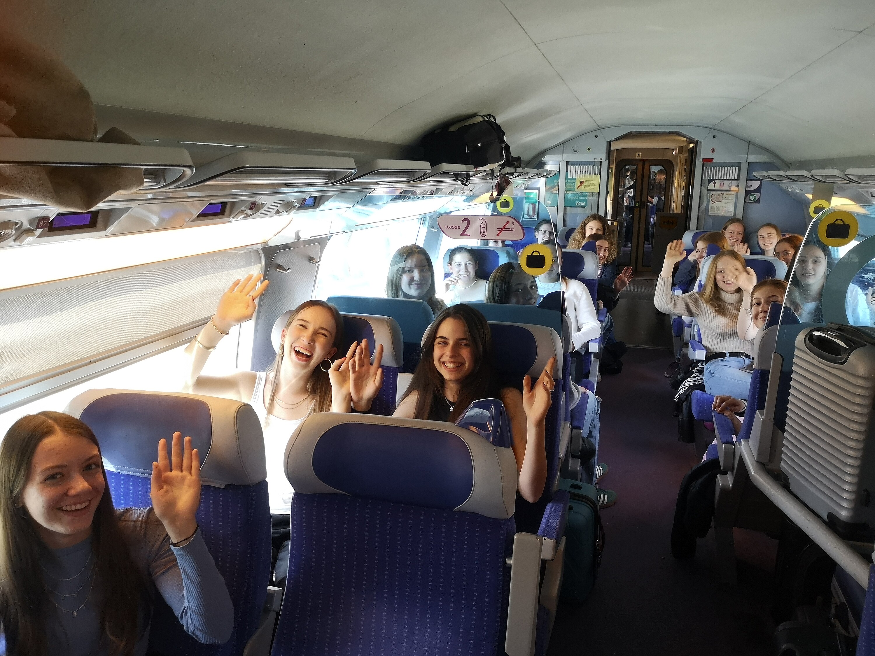 Unsere aufregende Reise ins Elsass begann am Montag mit der Zugfahrt in Richtung Frankfurt am Hauptbahnhof Regensburg. Infolge einer Baustelle auf den Gleisen, kam es zur Verspätung des Zuges, sodass uns schon angst und bange wurde, ob wir den Anschlusszug erreichen würden. Glücklicherweise gingen uns lediglich zehn Minuten verloren und es gelang uns, zügig in den TGV nach Straßburg umzusteigen. Nach unserer Ankunft in Straßburg um 16 Uhr bezogen wir in unsere Zimmer im „The People Hostel“ ein und unternahmen anschließend einen Stadtspaziergang, bei dem wir erste spannende Eindrücke von der Stadt sammeln konnten.