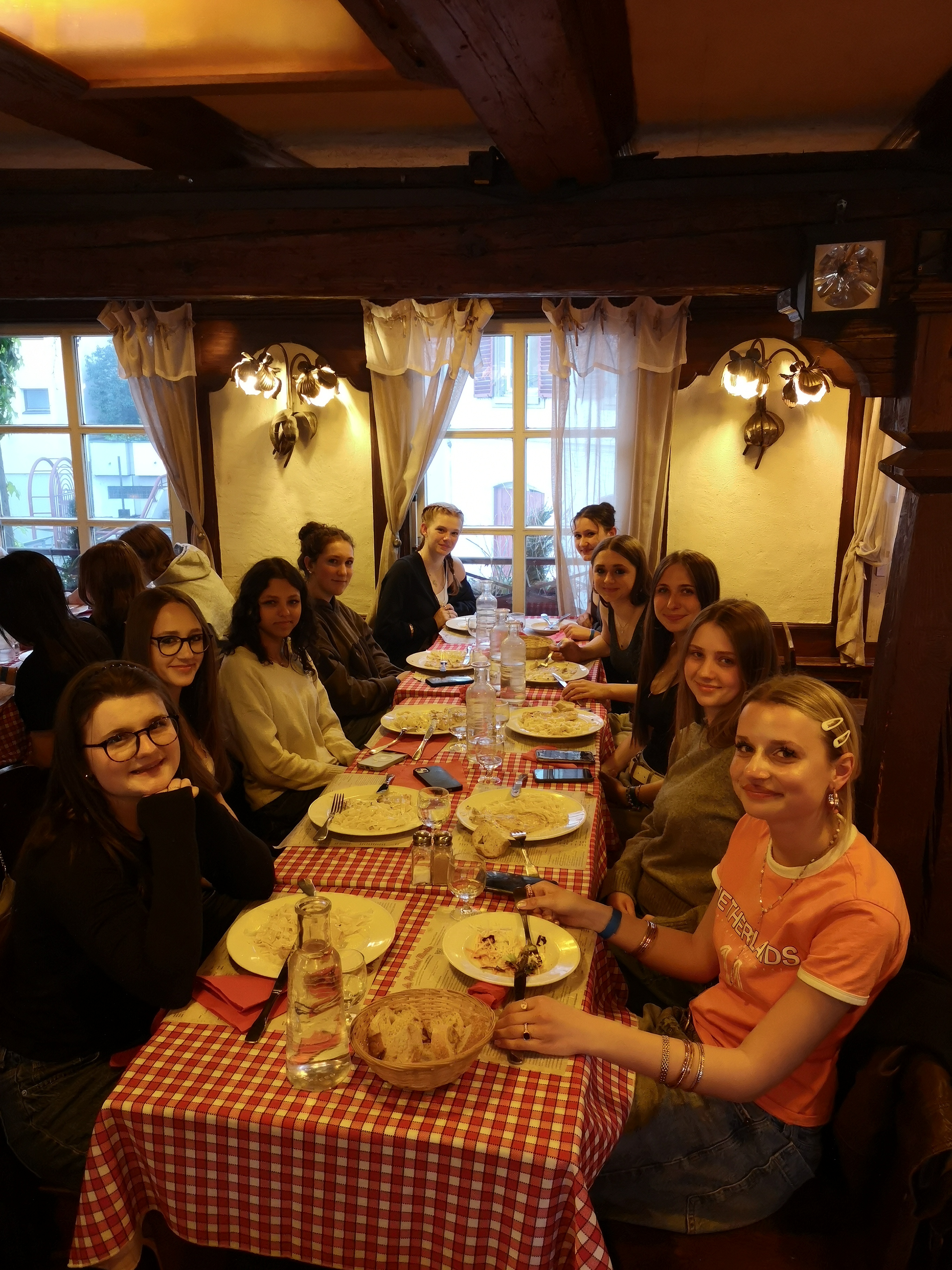 Während unserer Woche in Straßburg stand am Donnerstag ein ganz besonderes Highlight auf dem Programm: der Besuch des Europaparlaments. Nach einem spannenden Rundgang und vielen neuen Eindrücken ließen wir den Tag bei einem gemeinsamen Essen im Restaurant Au Pont St. Martin ausklingen. Die Stimmung war großartig – es wurde viel gelacht, gesungen und einfach das Zusammensein genossen. Lara hat uns dankenswerterweise spontan am Klavier begleitet (Salzstreuer eignen sich hervorragend zur digitalen Notenablage). Ein unvergesslicher Abend!