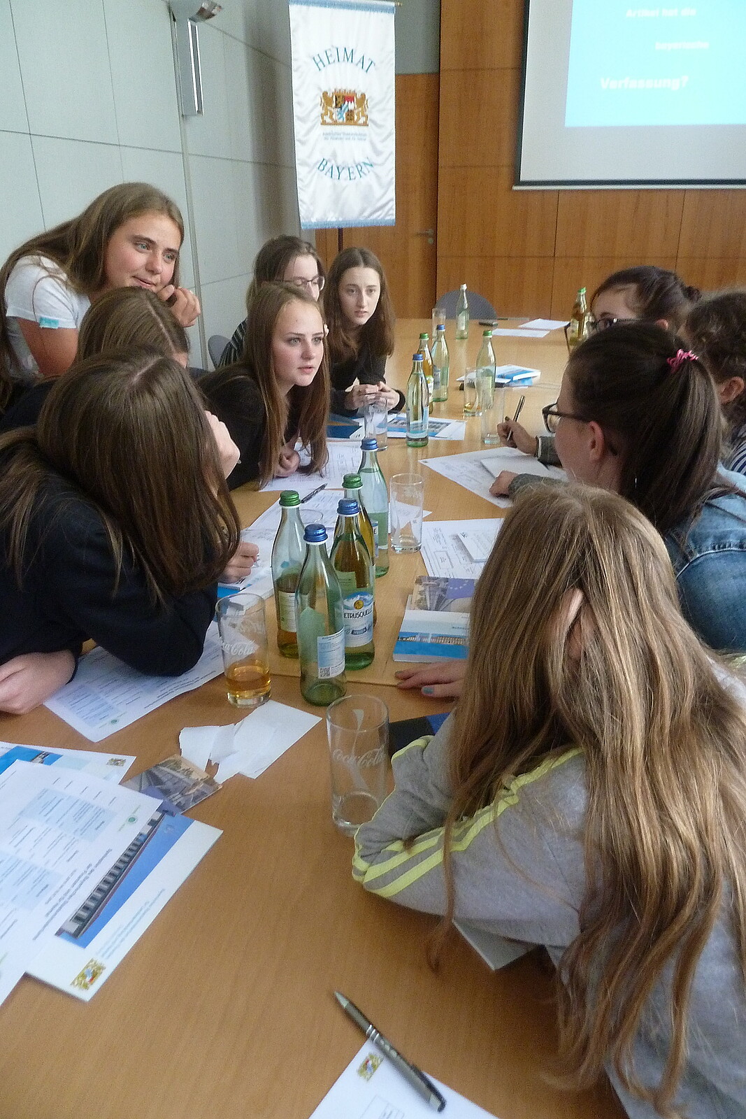 Zum ersten Mal nahmen die Schülerinnen ab der 9. Jahrgangsstufe von Realschule und Gymnasium an der Juniorwahl teil. Im Sozialkundeunterricht wurden besprochen, wie die Landtagswahl abläuft, wer zur Wahl steht, welche Parteiprogramme es gibt und wie man überhaupt wählt.