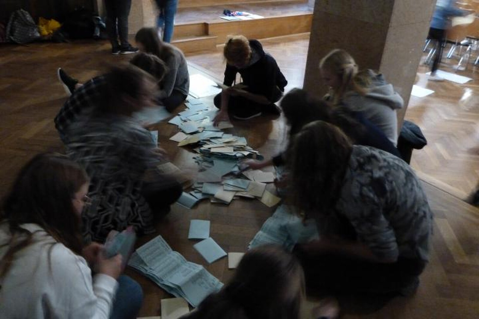 Pro Klasse bzw. Kurs wurden zwei Wahlhelferinnen geschult, so dass die Juniorwahl von Anfang an von den Schülerinnen selbstständig geplant und durchgeführt werden konnte. Vom Ausfüllen der Wahlberechtigungskarten bis zum Auszählen erledigten die Wahlhelferinnen alle Tätigkeiten eigenverantwortlich und sicherten die Korrektheit der Wahl ab.