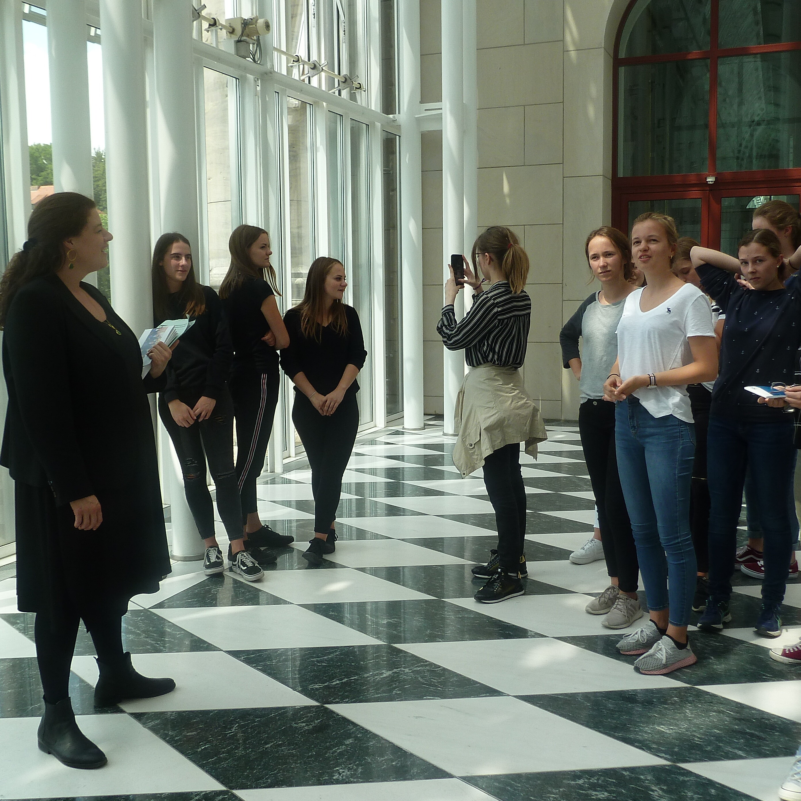 Vor kurzem hieß unsere Schule einen besonderen Gast willkommen: Die im Sommer 2019 wieder in den Deutschen Bundestag eingezogene Abgeordnete Dr. Astrid Freudenstein war in den Festsaal gekommen, um den Schülerinnen der 10. Klassen des Gymnasiums ihre politische Tätigkeit vorzustellen und mit ihnen über aktuelle Besuch der Bundestagsabgeordneten Dr. Astrid Freudenstein
