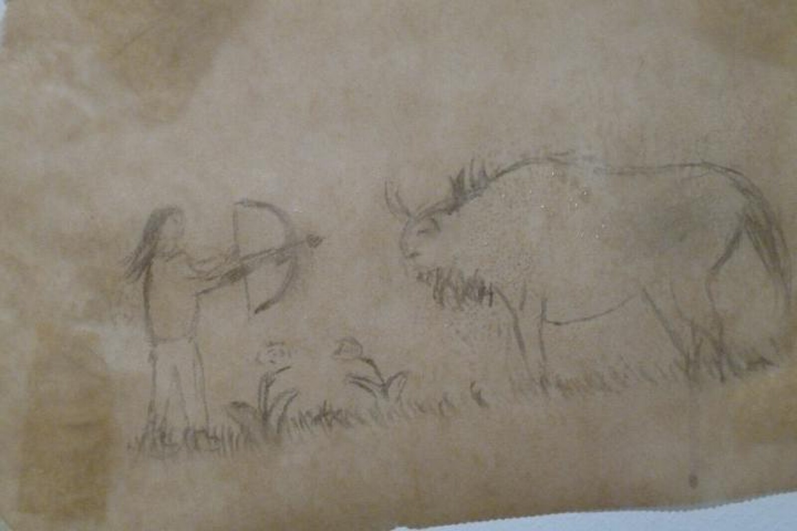 Das Profilfach Archäologie in der Q 11 hat sich von September bis Oktober mit dem Menschwerdungsprozess beschäftigt. Aus der Frühzeit der Menschen gibt es nur wenige archäologische Funde. Spannend sind dabei die rund 40 000 Jahre alten Höhlenmalereien z. B. aus Frankreich und Spanien. Doch der Kurs wollte sich die Bilder nicht nur ansehen und sie analysieren, die Schülerinnen wollten auch selbst Höhlenmalerei ausprobieren. Gezeichnet wurde mit Holzkohle. Leider stand uns keine Felswand oder eine Haut aus Leder zur Verfügung, somit musste Pergamentpapier ausreichen.