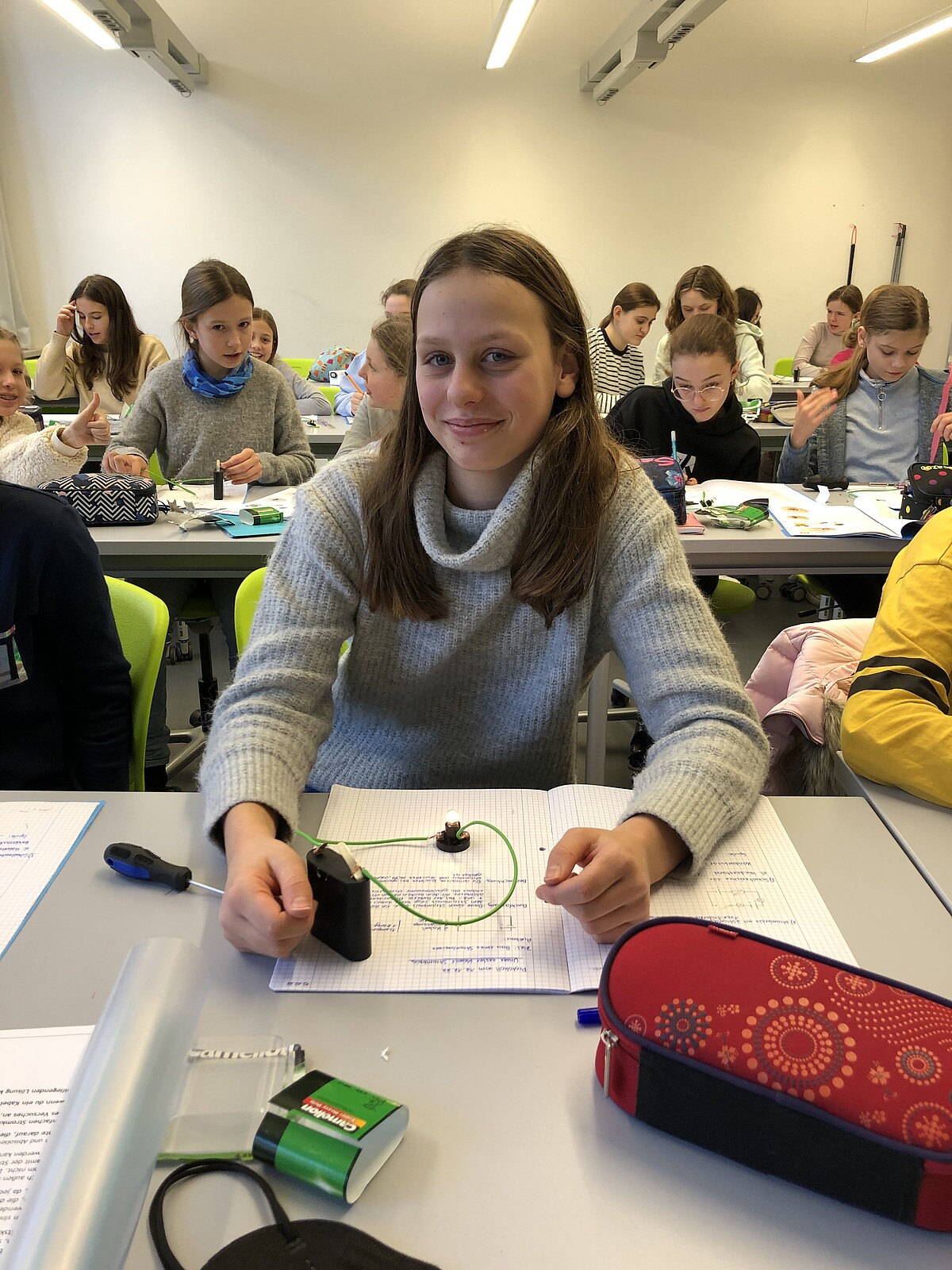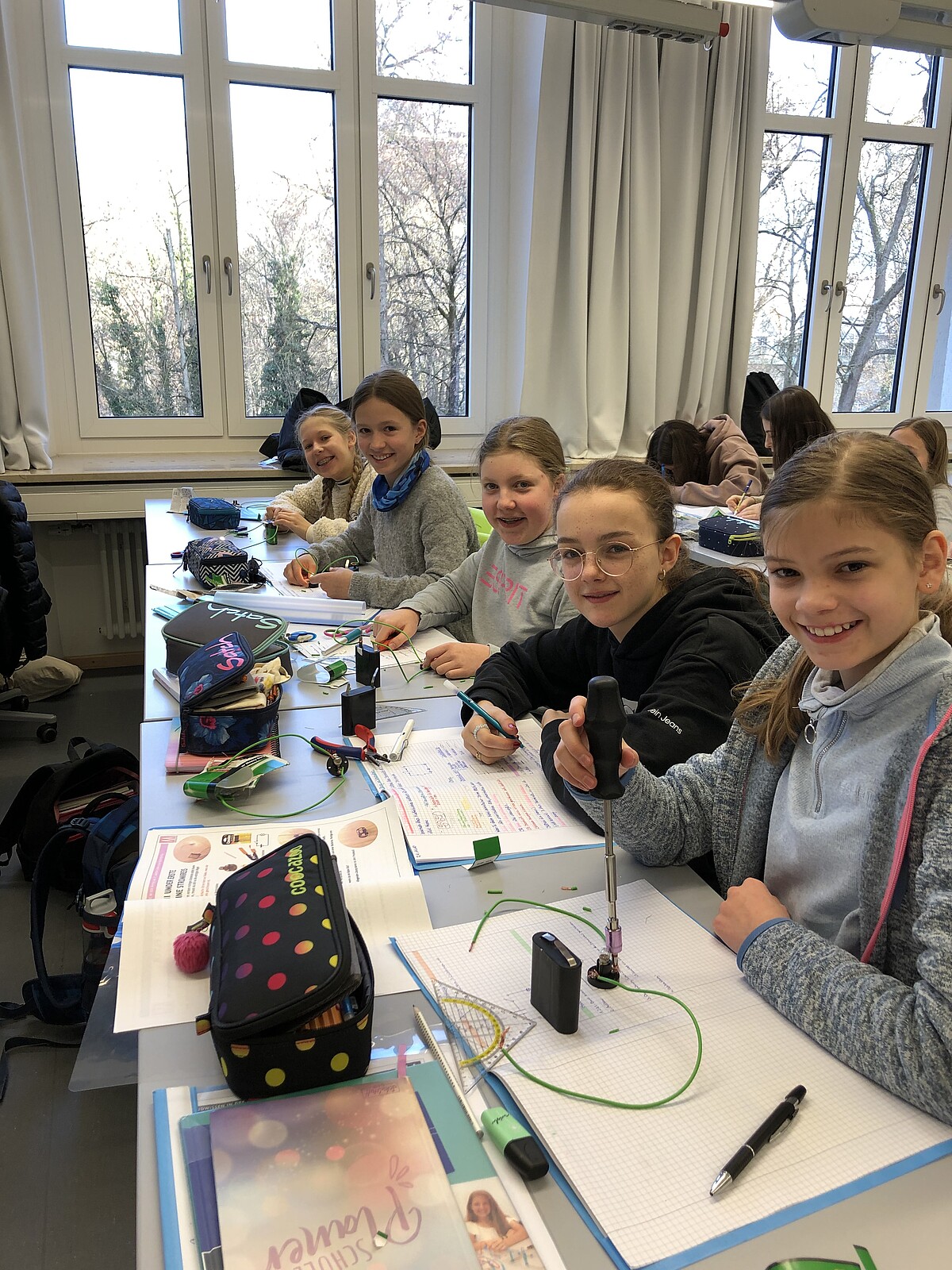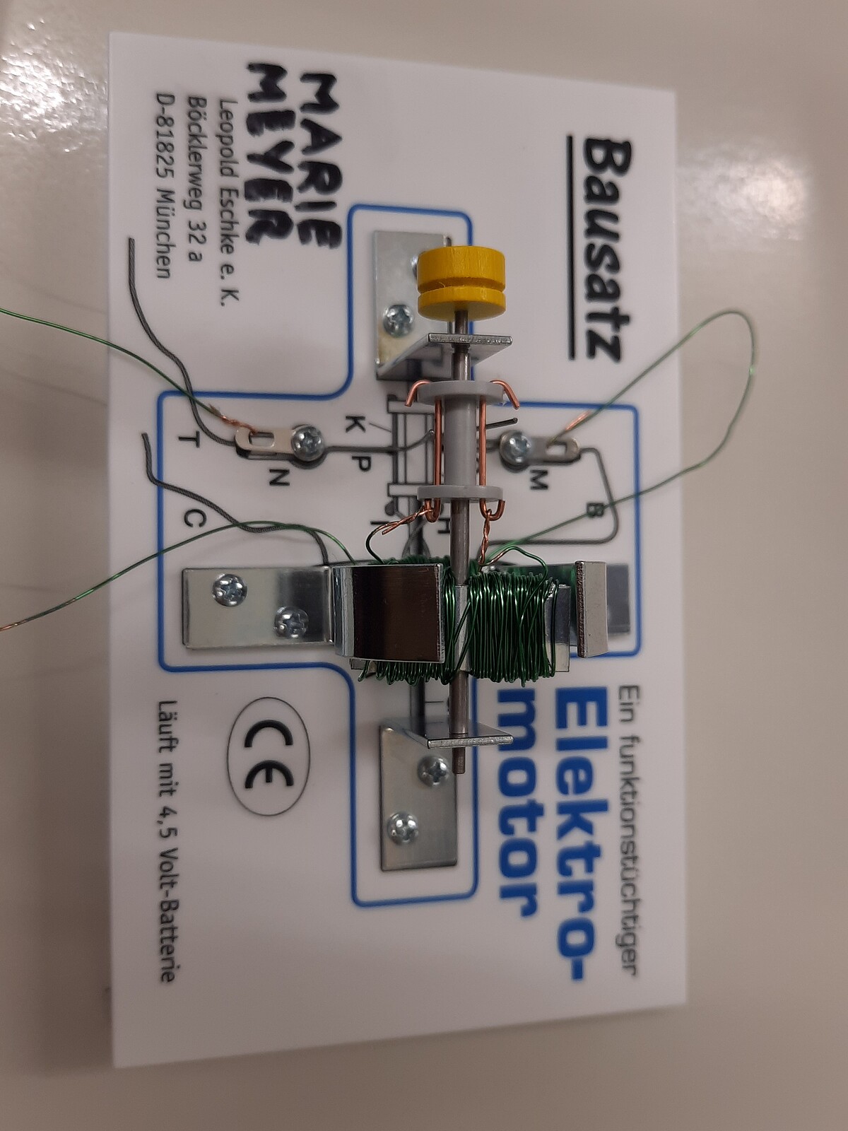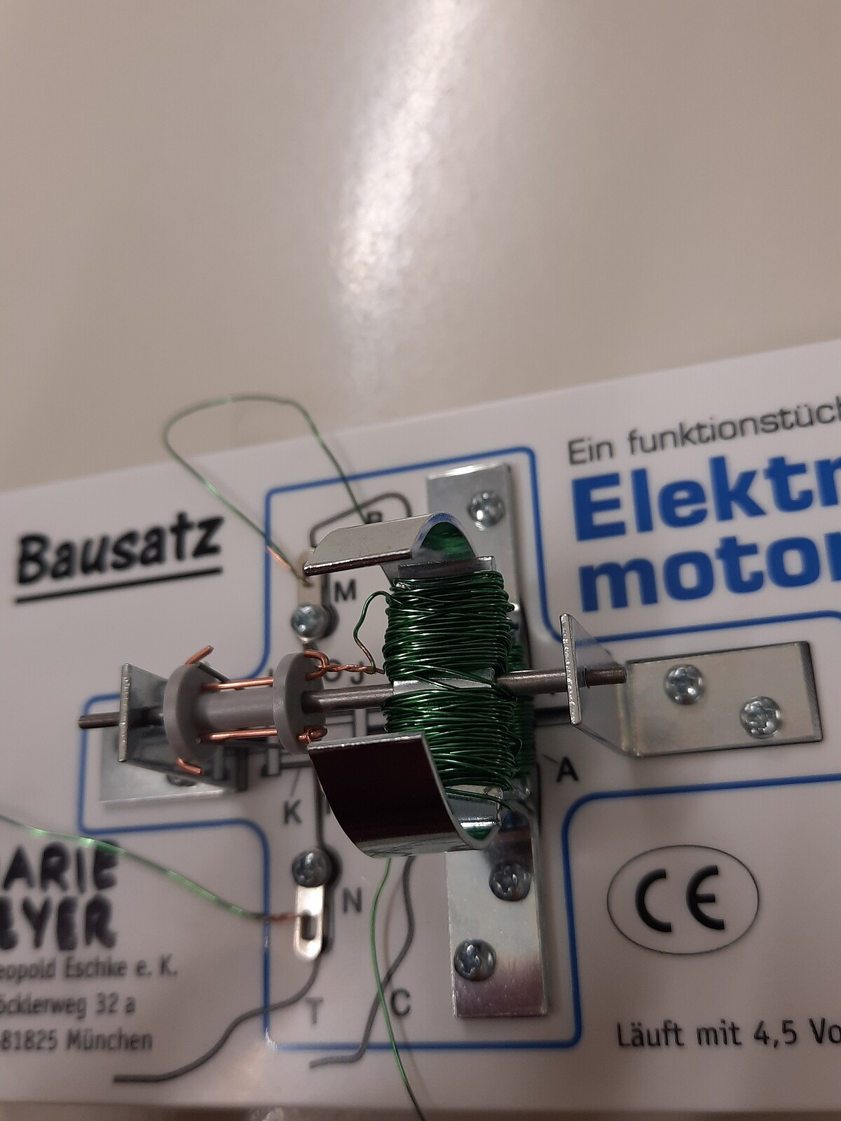 Nachdem wir im Unterricht alles über den Elektromotor gelernt haben, durften wir jeder selbst Hand anlegen. Wir bauten unser eigenes Modell. Natürlich klingt das erst einmal sehr einfach, war es aber gar nicht. Die erste Herausforderung stellte ein fast 6 m langer Draht dar, den wir halbieren sollten. Danach mussten die Rotor- und die Statorspule selbst und möglichst gleichmäßig gewickelt werden. Anschließend schraubten wir alles zusammen, verband es mit dem Kommutator, der für die Umpolung der Stroms verantwortlich ist und besserten noch Kleinigkeiten aus. Dann durften wir unseren Motor selbst testen und siehe da - funkensprühend und ratternd setzte er sich in Bewegung. Das ist wirklich angewandte Physik. G 10 mit Frau Utz und Frau Harbach