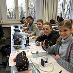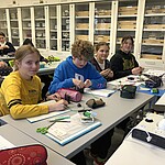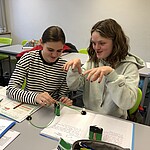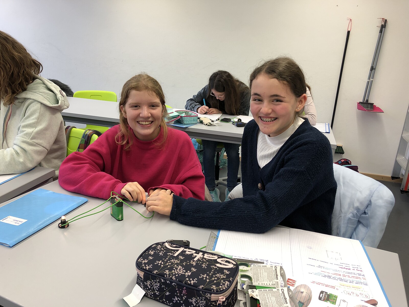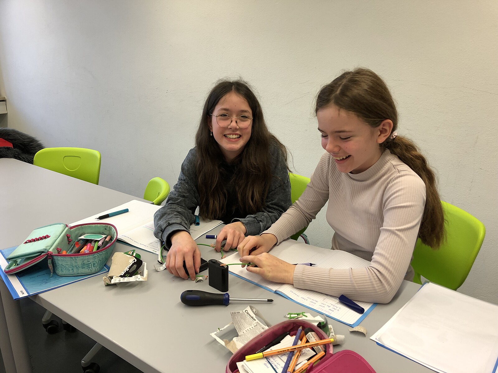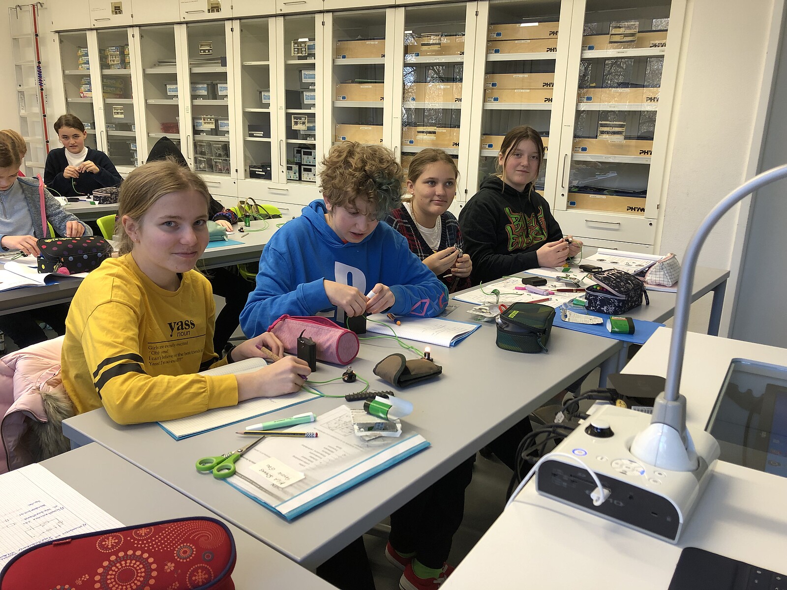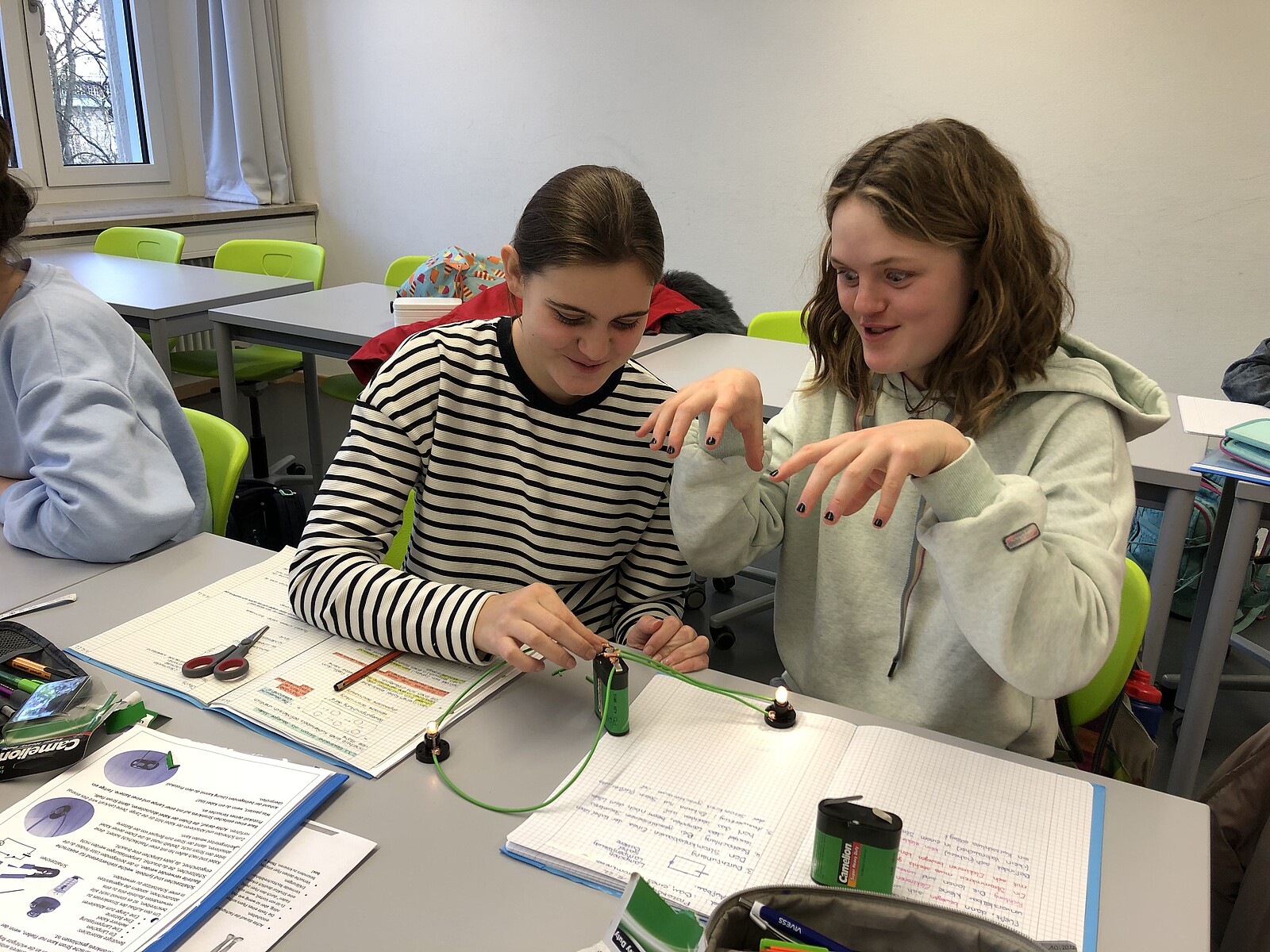 Nachdem wir im Unterricht alles über den Elektromotor gelernt haben, durften wir jeder selbst Hand anlegen. Wir bauten unser eigenes Modell. Natürlich klingt das erst einmal sehr einfach, war es aber gar nicht. Die erste Herausforderung stellte ein fast 6 m langer Draht dar, den wir halbieren sollten. Danach mussten die Rotor- und die Statorspule selbst und möglichst gleichmäßig gewickelt werden. Anschließend schraubten wir alles zusammen, verband es mit dem Kommutator, der für die Umpolung der Stroms verantwortlich ist und besserten noch Kleinigkeiten aus. Dann durften wir unseren Motor selbst testen und siehe da - funkensprühend und ratternd setzte er sich in Bewegung. Das ist wirklich angewandte Physik. G 10 mit Frau Utz und Frau Harbach