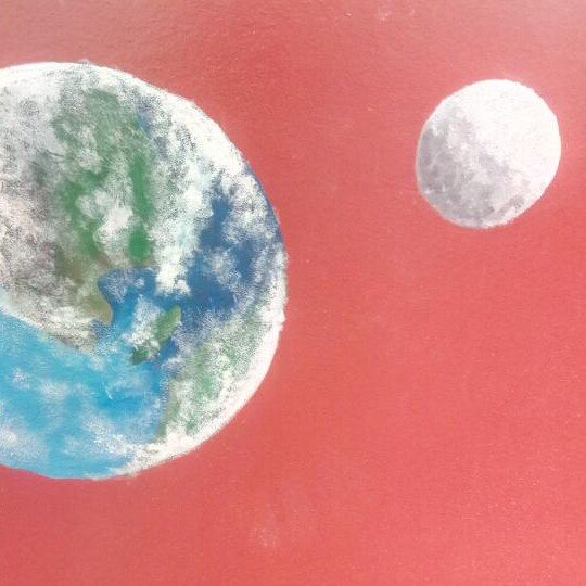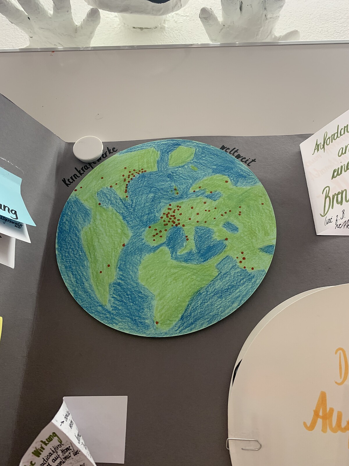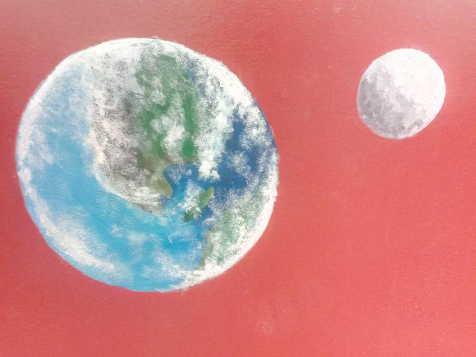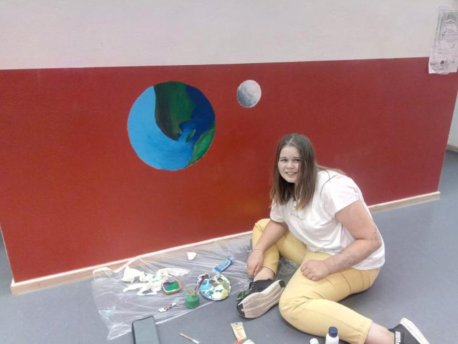 Dankenswerter Weise erklärte sich Pauline Kahl aus der G 8C bereit, eine Wand im Physikgang mit einer Erdkugel und dem Mond zu verzieren. Das Kunstwerk kann im 2. Stock bewundert werden.