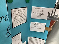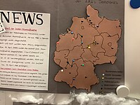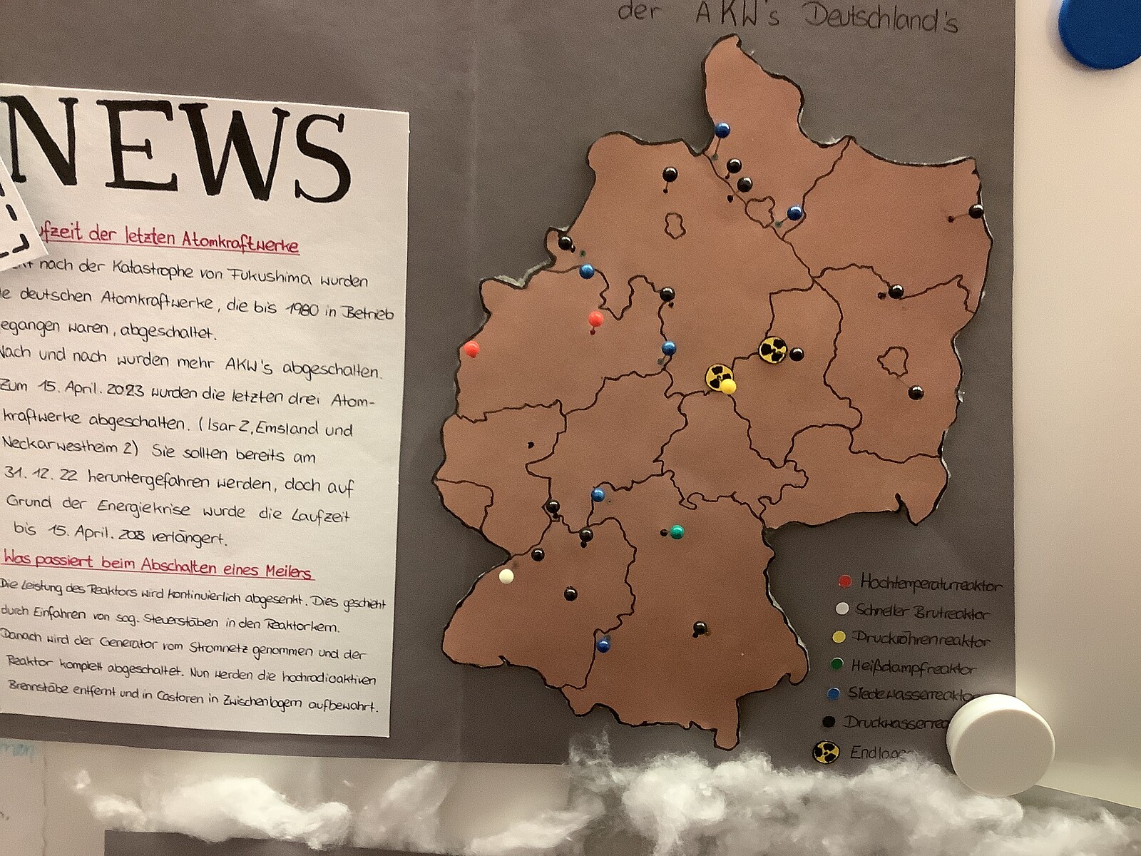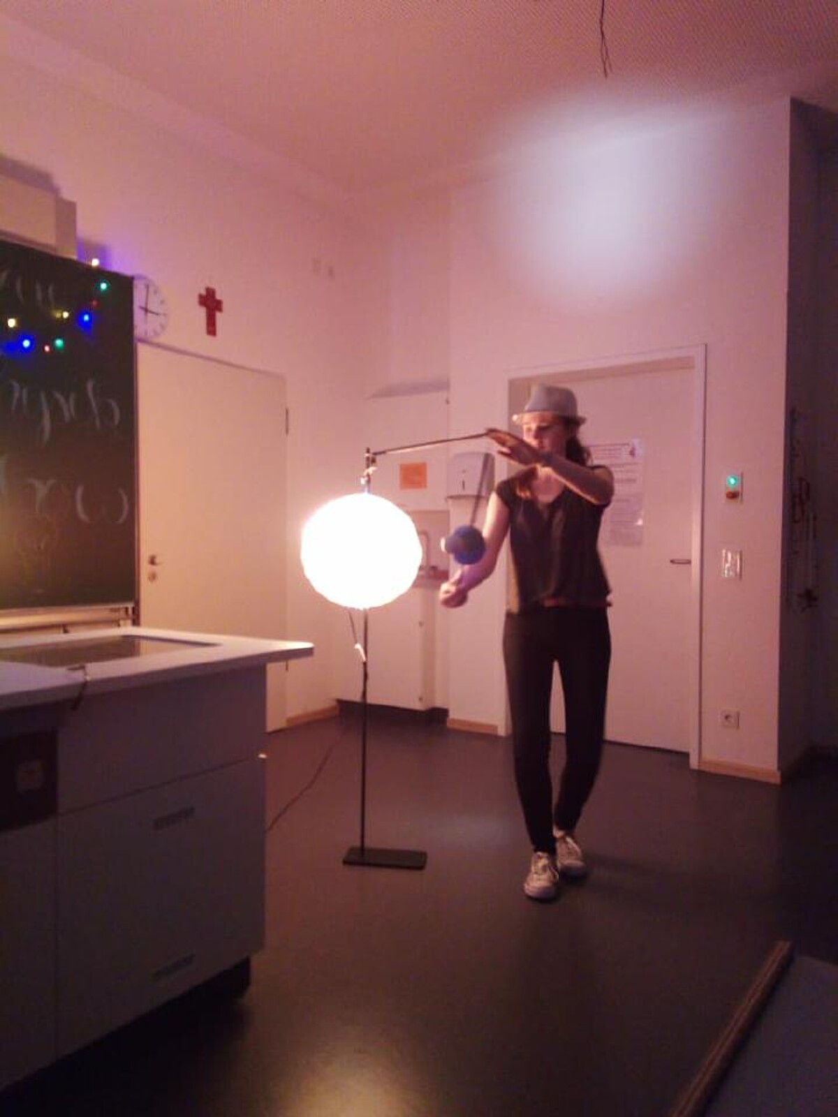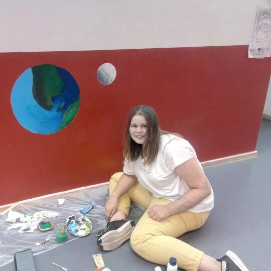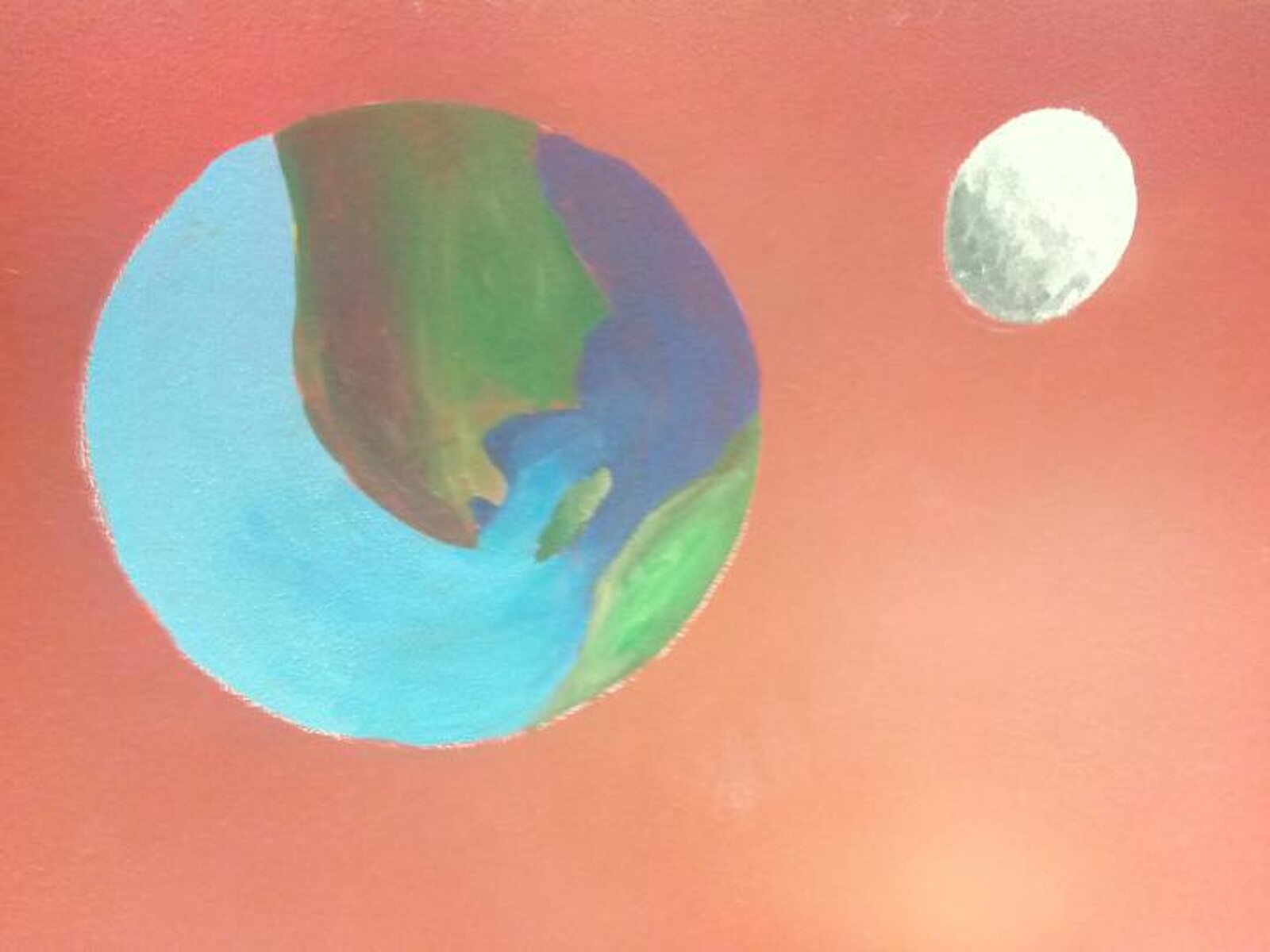 Dankenswerter Weise erklärte sich Pauline Kahl aus der G 8C bereit, eine Wand im Physikgang mit einer Erdkugel und dem Mond zu verzieren. Das Kunstwerk kann im 2. Stock bewundert werden.