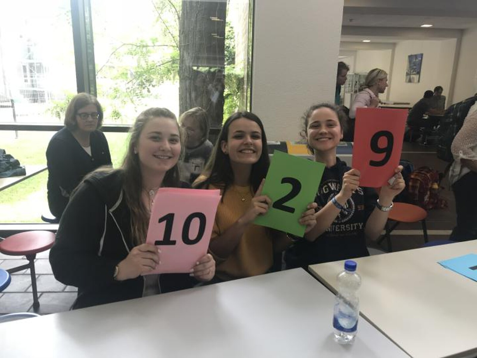 Der Siegerin des Wettbewerbs Nina Bernabei wurde ein 20€-Büchergutschein von unserem Schulleiter Herrn Dr. Lindner überreicht.