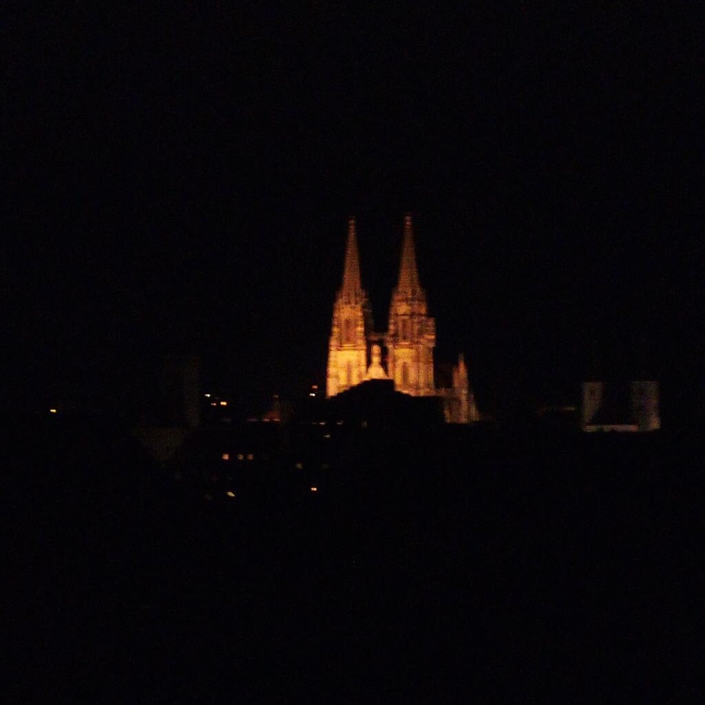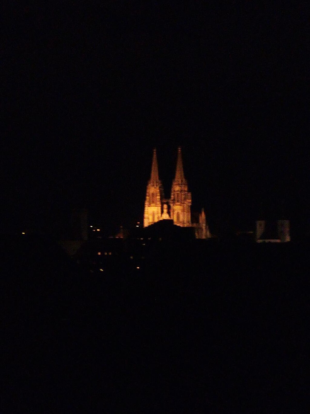 Und als sie über den Dächern Regenburgs den bestrahlten Dom und die Planten beobachteten,