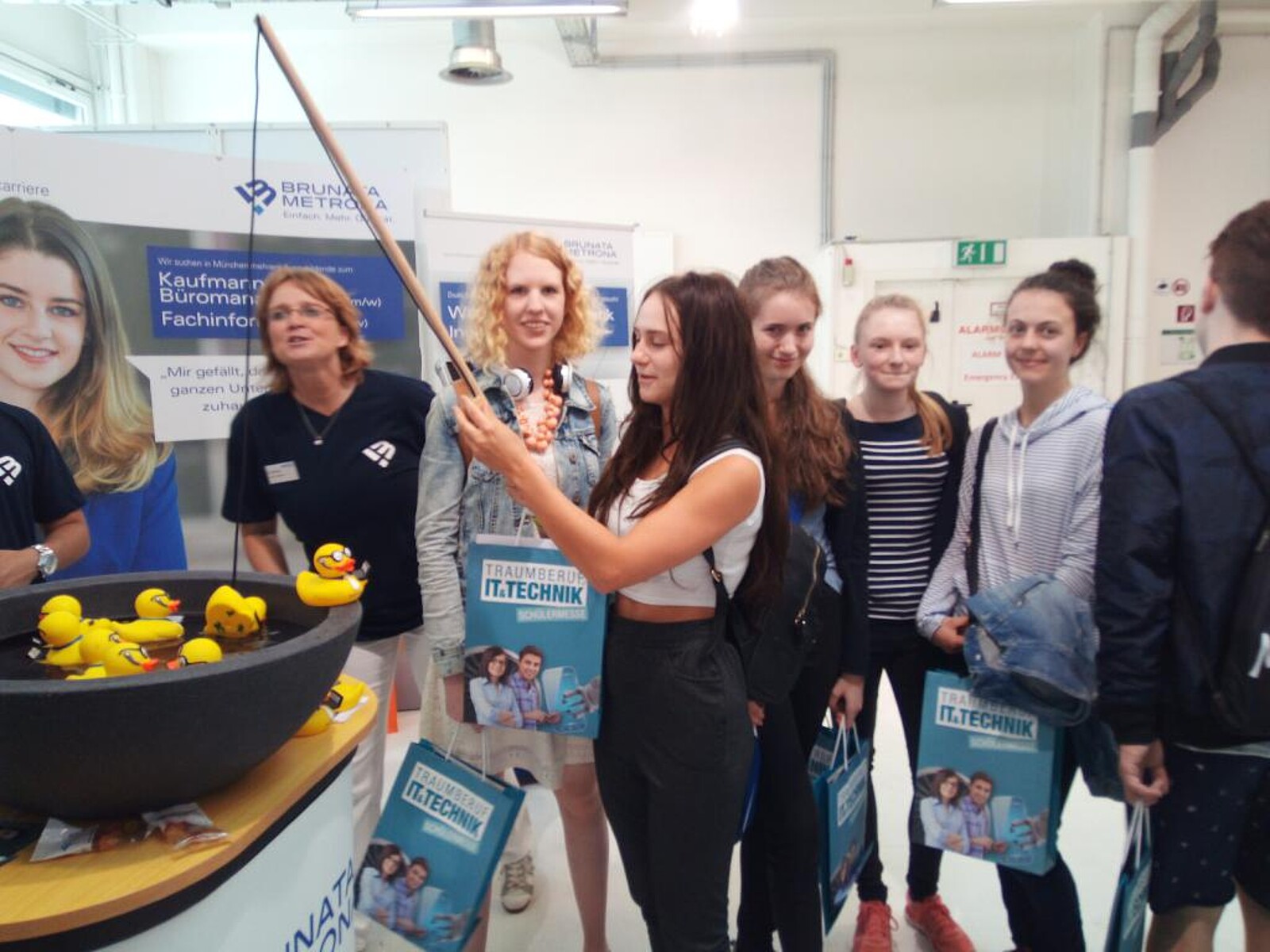 Zeigte jemand Interesse, wurde diesem sofort ein Praktikum angeboten oder andere Möglichkeiten aufgezeigt, das Unternehmen besser kennenzulernen. Langweilig war es auf keinen Fall. Von einer Snapchat ähnlichen Kamera der deutschen Bahn bis hin zum Entenangeln war alles vertreten. Es gab sogar einen Selfie Wettbewerb, bei dem die Klasse G 10C leider nicht gewann. Wer mal eine Pause brauchte, konnte sich in der Cafeteria bei monströs teuren Snacks und Getränken stärken.