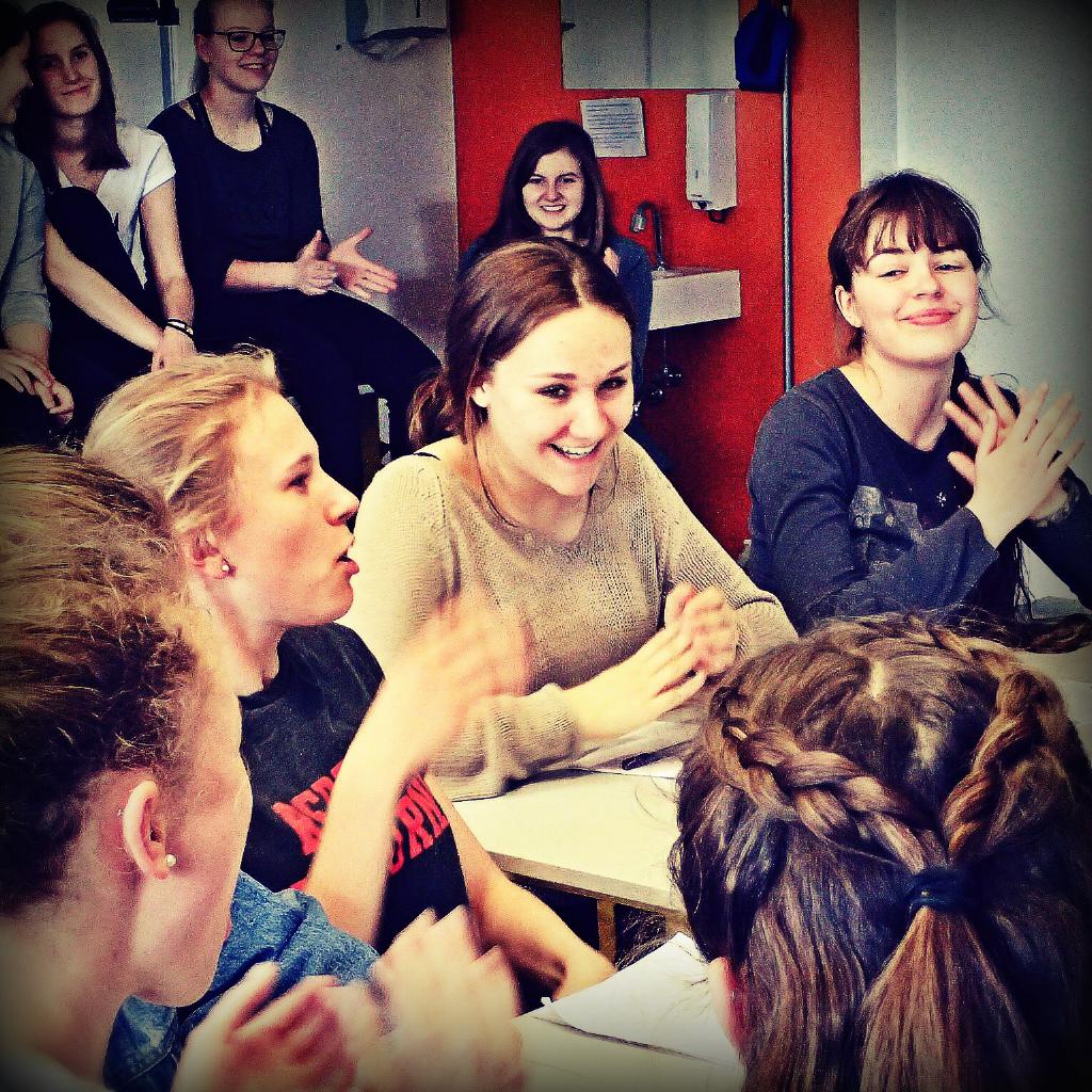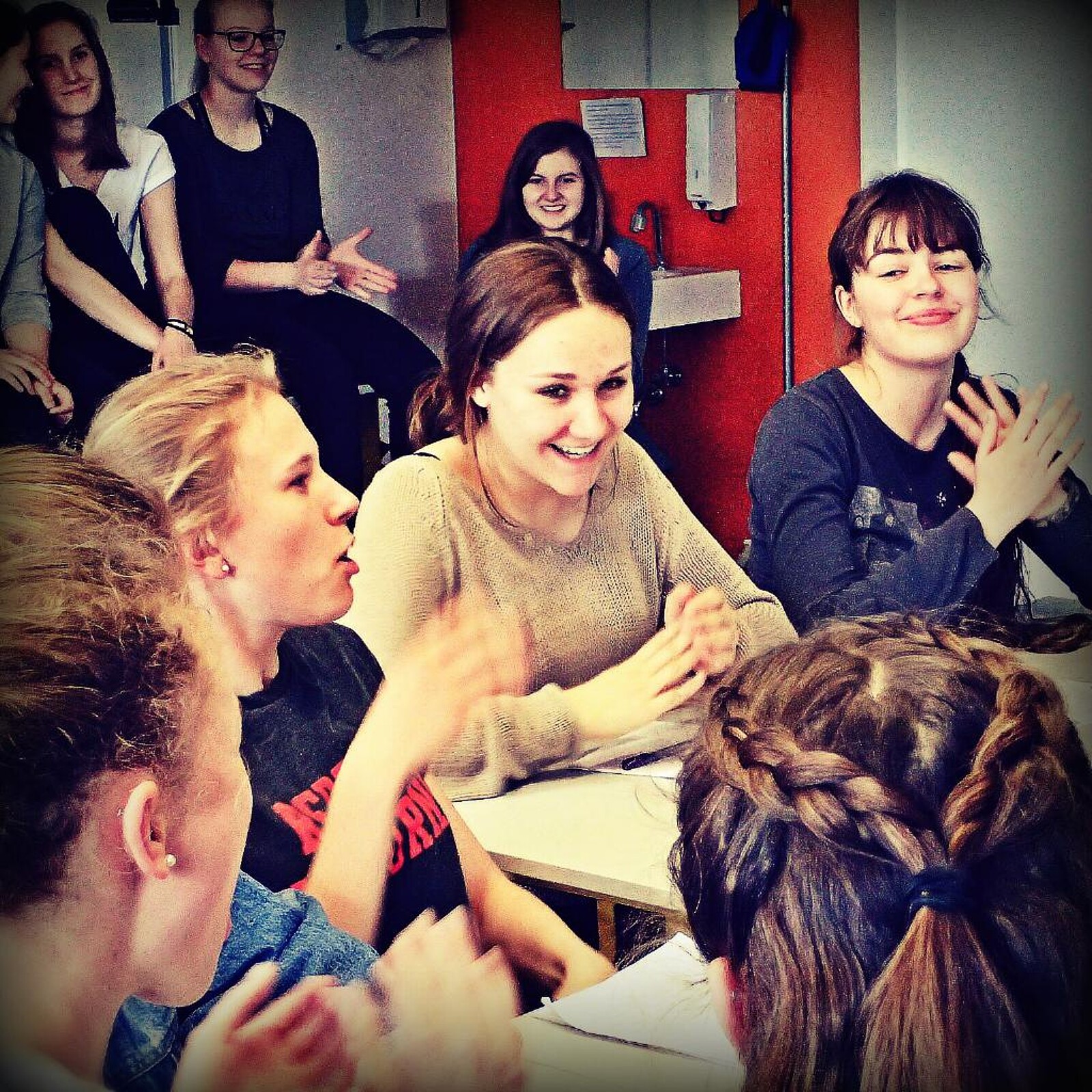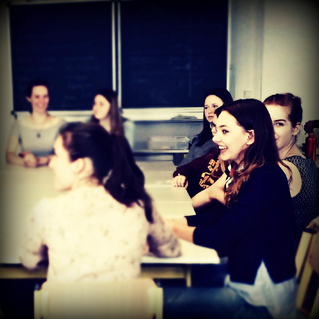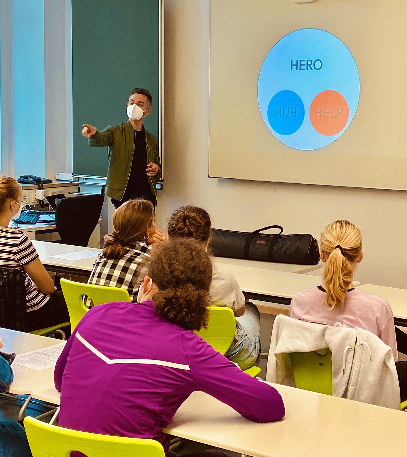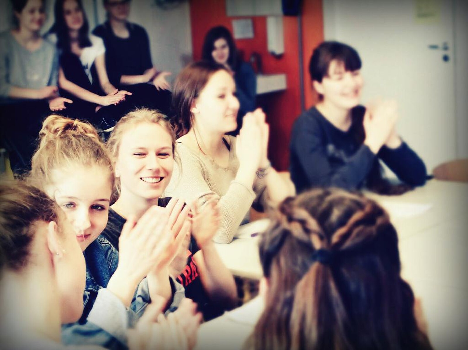 Im zweiten Teil ließ Marvin Neumann die Schülerinnen an seinem persönlichen beruflichen Werdegang von ersten experimentellen Videos über sein Studium der Publizistik und Theaterwissenschaft an der Johannes Gutenberg-Universität Mainz für Social Media bis hin zu seiner hauptberuflichen Tätigkeit und seinem nebenberuflich betriebenen eigenen Web-Videokanal teilhaben. Den Schülerinnen wurde schnell klar, welchen entscheidenden Einfluss Eigeninitiative in Form von Praktika und zielgerichtetem Engagement auf den persönlichen Entwicklungsprozess haben – „proaktives Handeln“ nennt es Neumann.