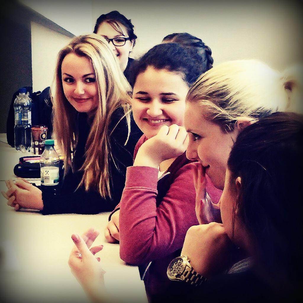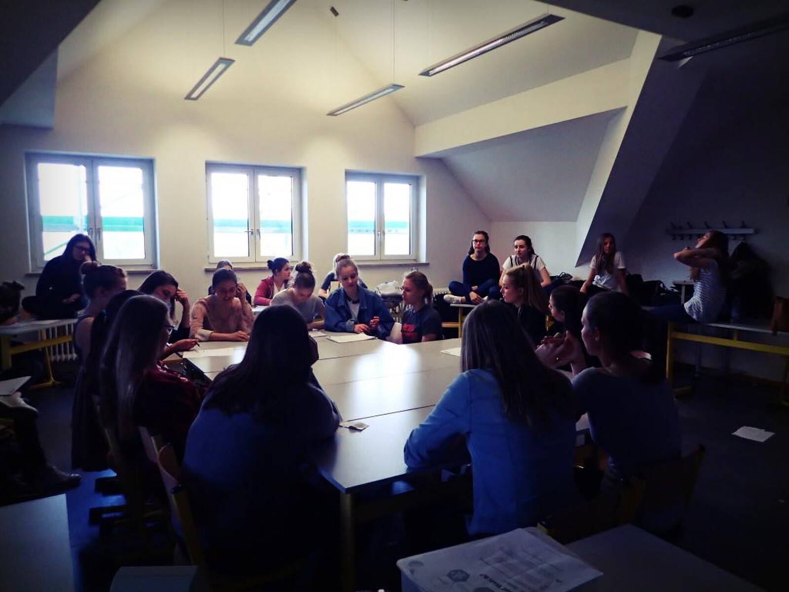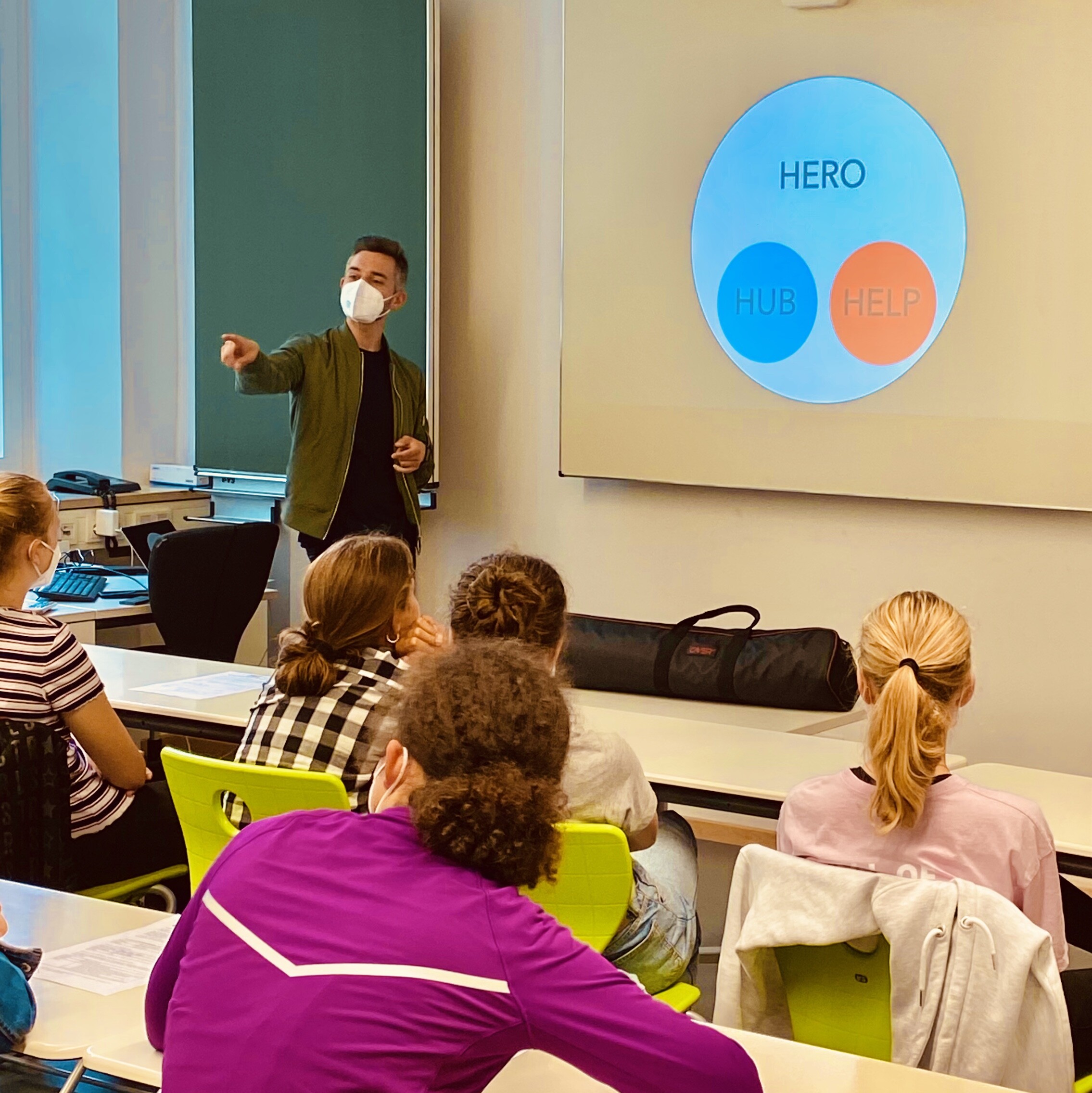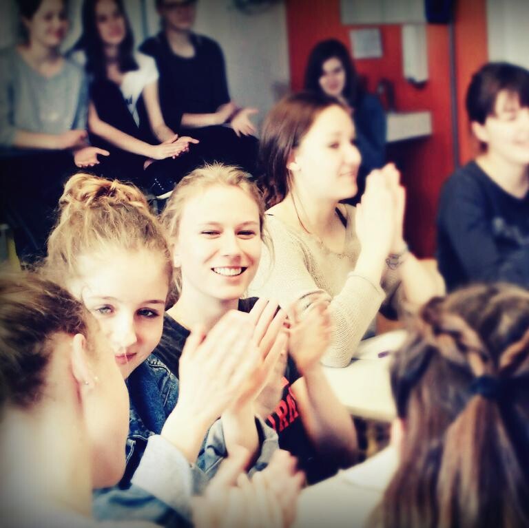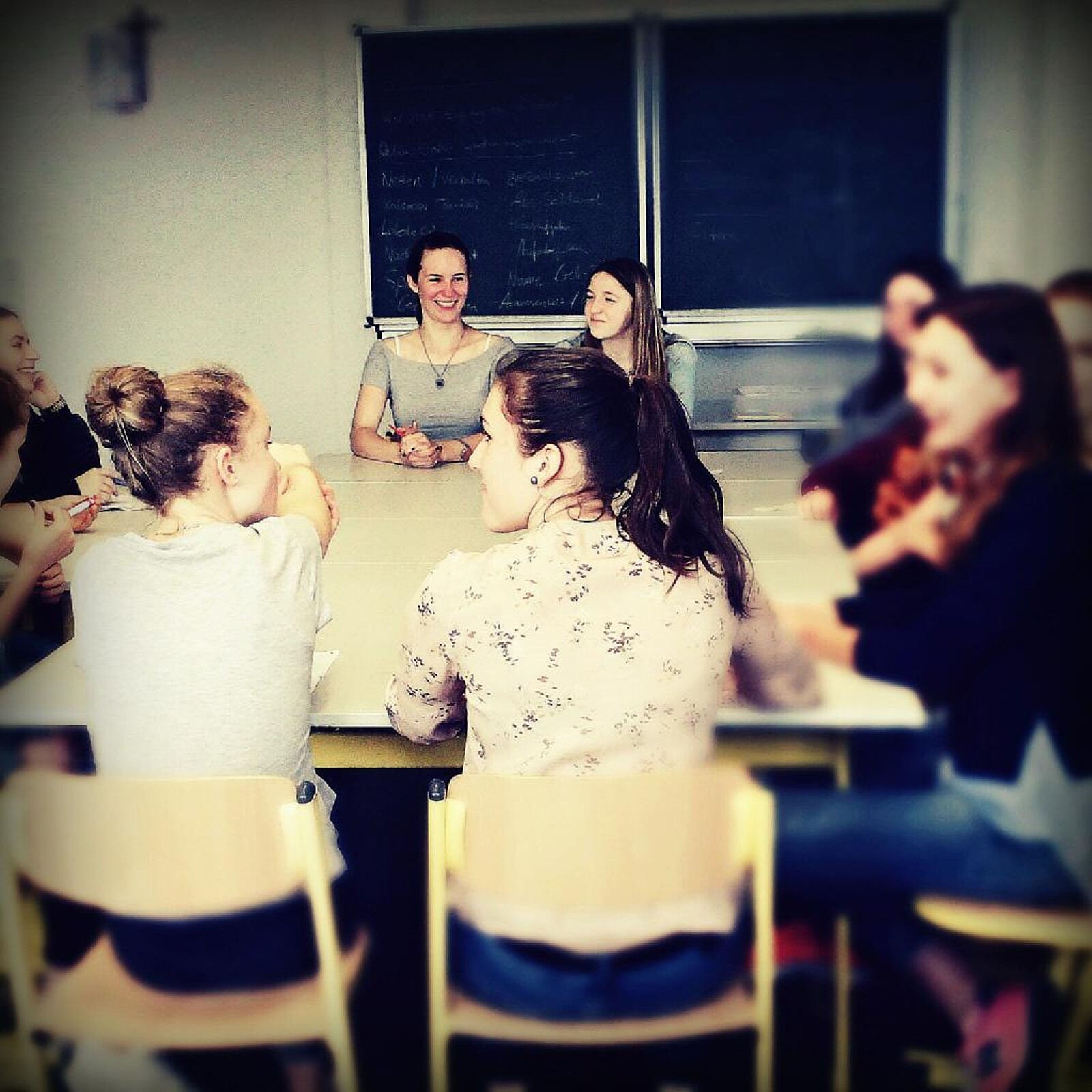 Im zweiten Teil ließ Marvin Neumann die Schülerinnen an seinem persönlichen beruflichen Werdegang von ersten experimentellen Videos über sein Studium der Publizistik und Theaterwissenschaft an der Johannes Gutenberg-Universität Mainz für Social Media bis hin zu seiner hauptberuflichen Tätigkeit und seinem nebenberuflich betriebenen eigenen Web-Videokanal teilhaben. Den Schülerinnen wurde schnell klar, welchen entscheidenden Einfluss Eigeninitiative in Form von Praktika und zielgerichtetem Engagement auf den persönlichen Entwicklungsprozess haben – „proaktives Handeln“ nennt es Neumann.