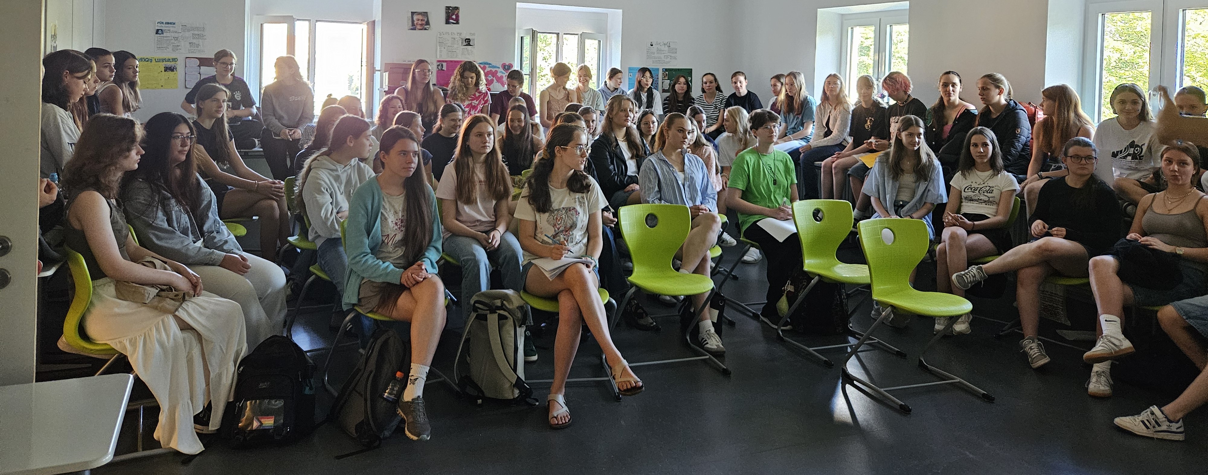 Am 13. Juli 2024 fand das 6. St.-Mary-Poetry-Slam der 9. Klassen statt. Jede Klasse bereitete sich intensiv vor und führte einen Klassenwettbewerb durch. Die drei besten Slam-Poetinnen oder Gruppen-Slam-Texterinnen jeder Klasse traten beim Poetry -Slam gegeneinander an.