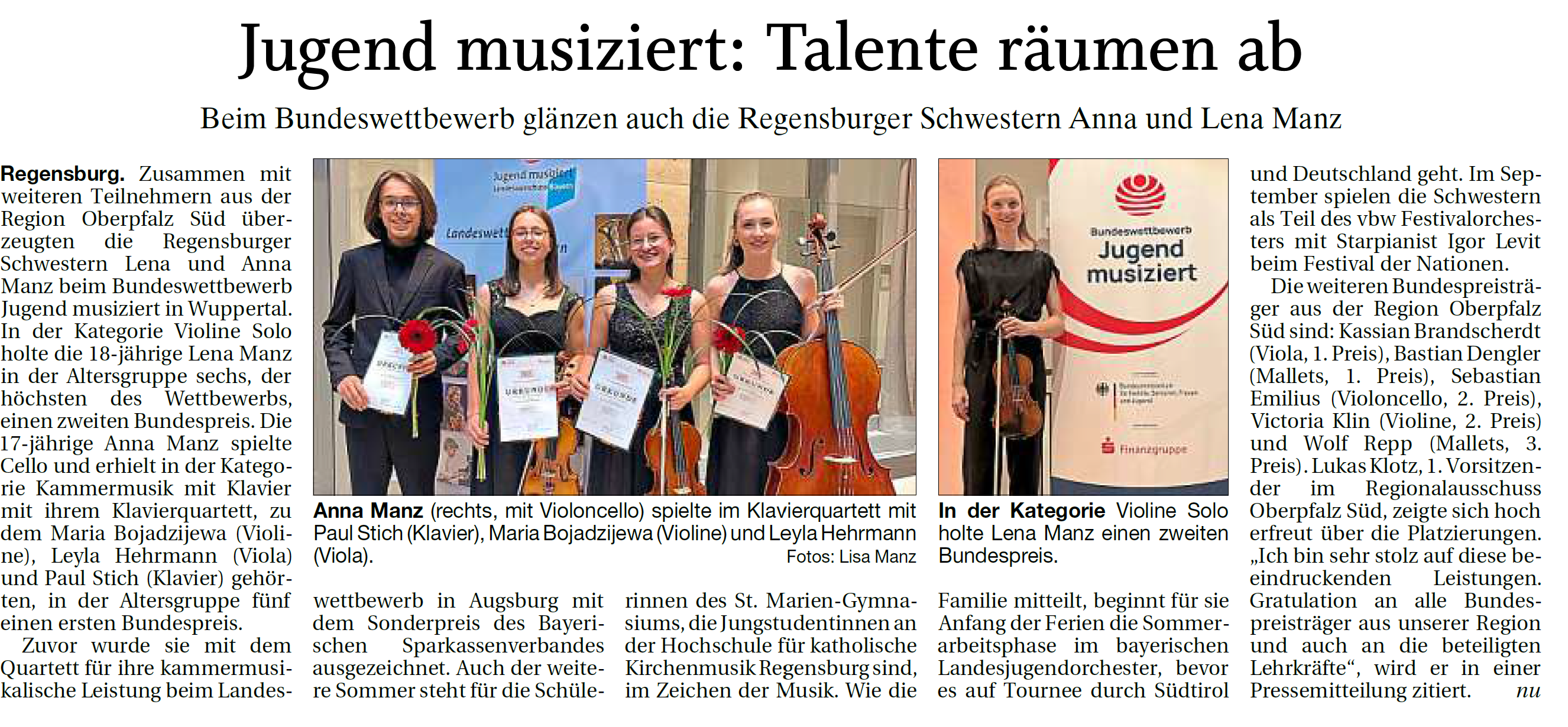 Anna und Lena Manz glänzen beim Bundeswettbewerb (MZ vom 30.06.2025)