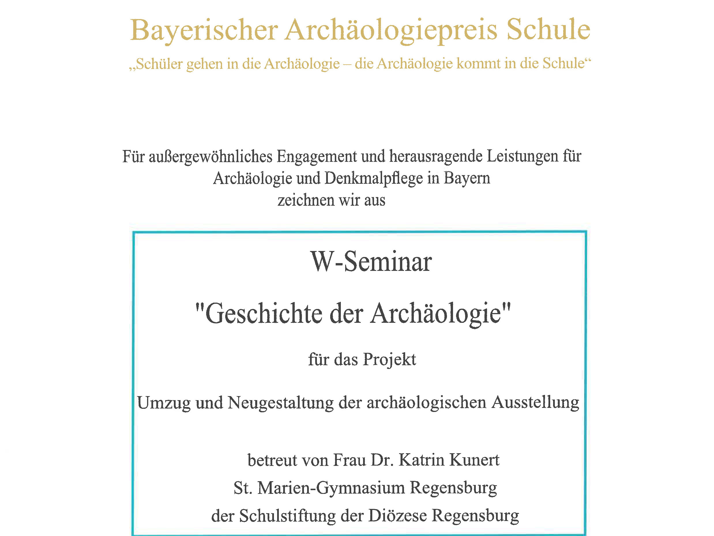 Bayerischer Archäologiepreis Schule für das W-Seminar „Geschichte der Archäologie“