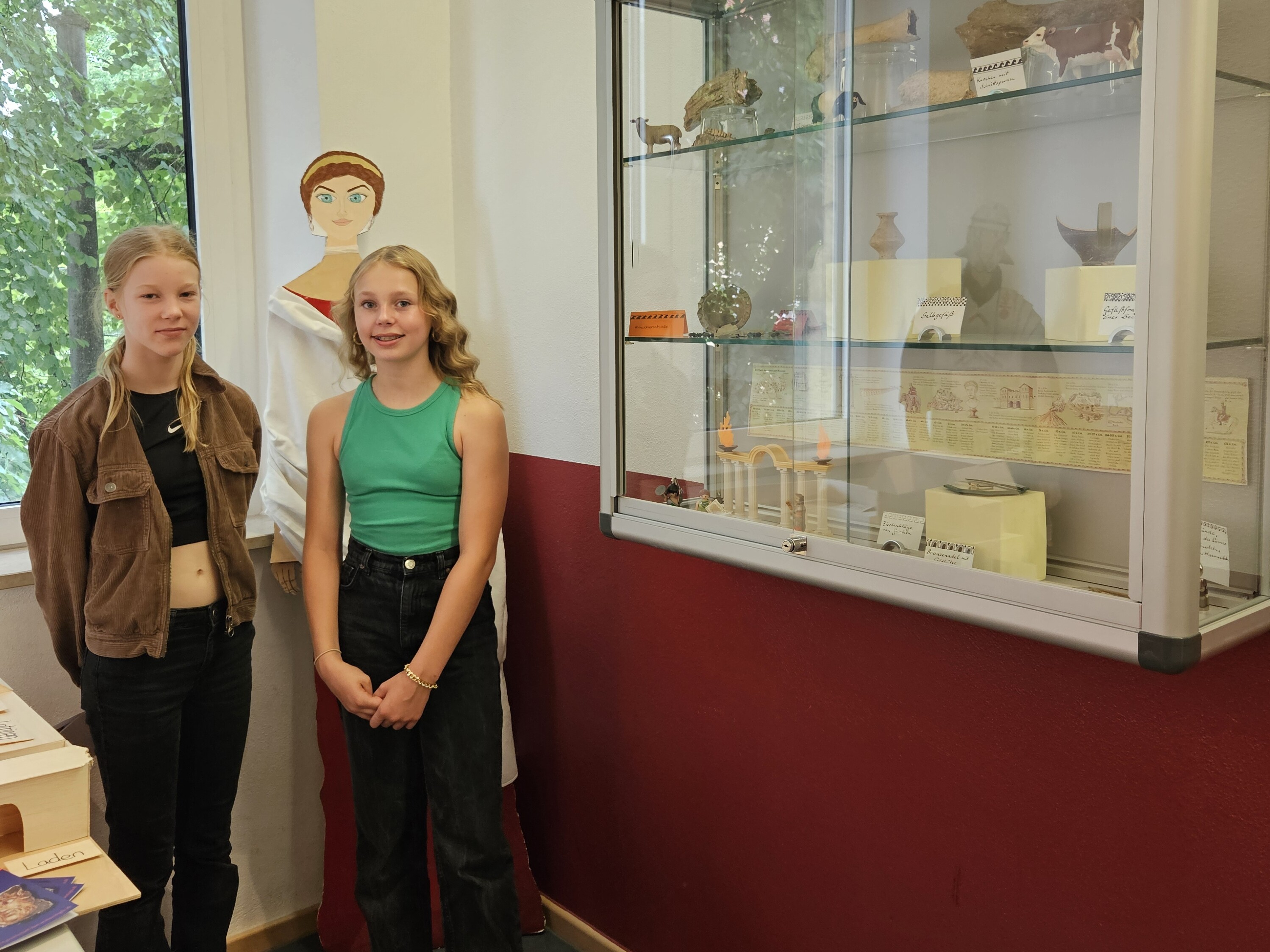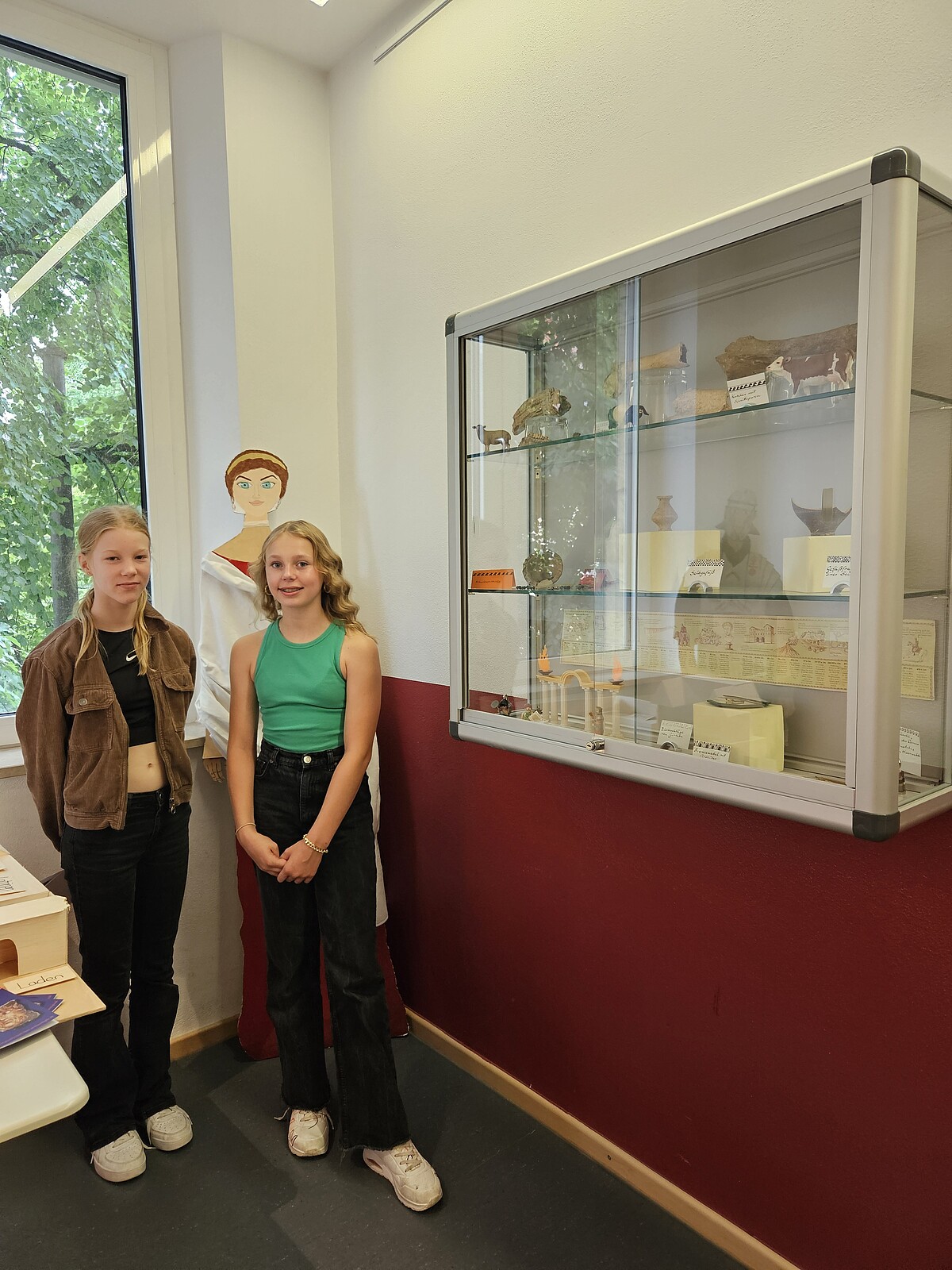 Nach der Generalsanierung der Schule 2019 fanden die Vitrinen im Erdgeschoss einen neuen Platz, der jedoch nicht sehr zentral lag. Das W-Seminar „Geschichte der Archäologie“ nahm sich der Exponate an und entwickelte ein Konzept, um die Ausstellung an einem neuen Standort zeitgemäß zu präsentieren.