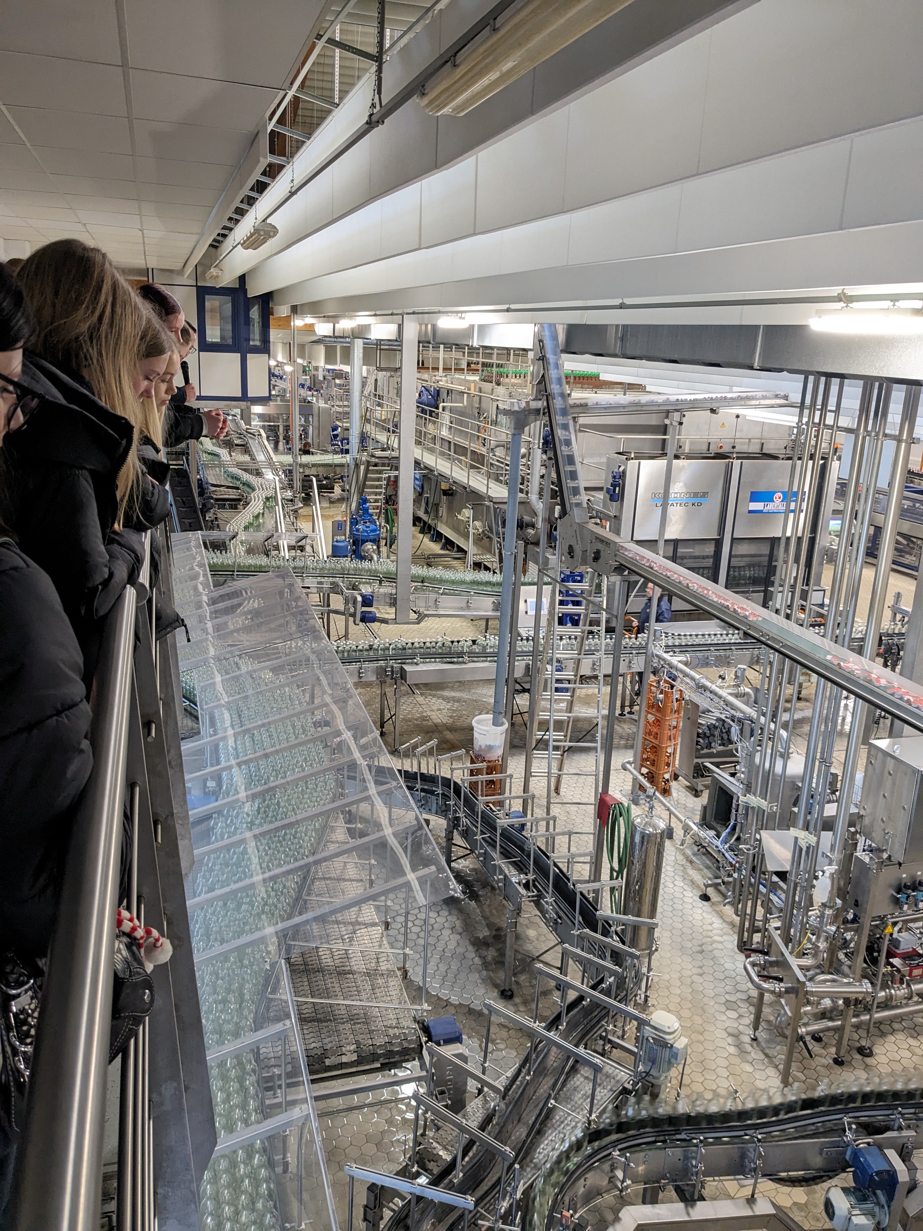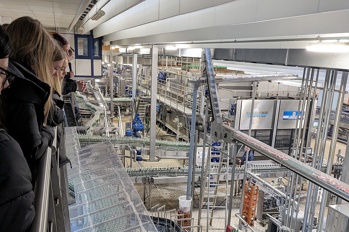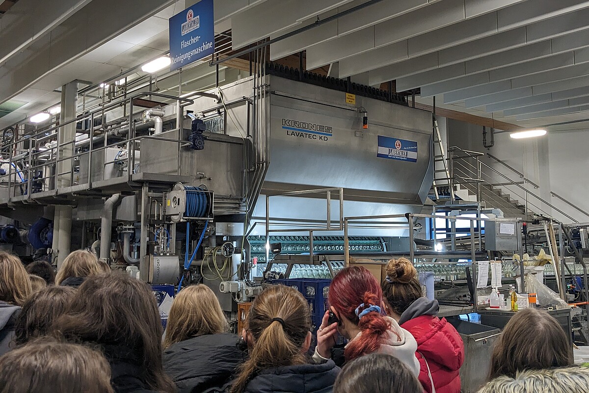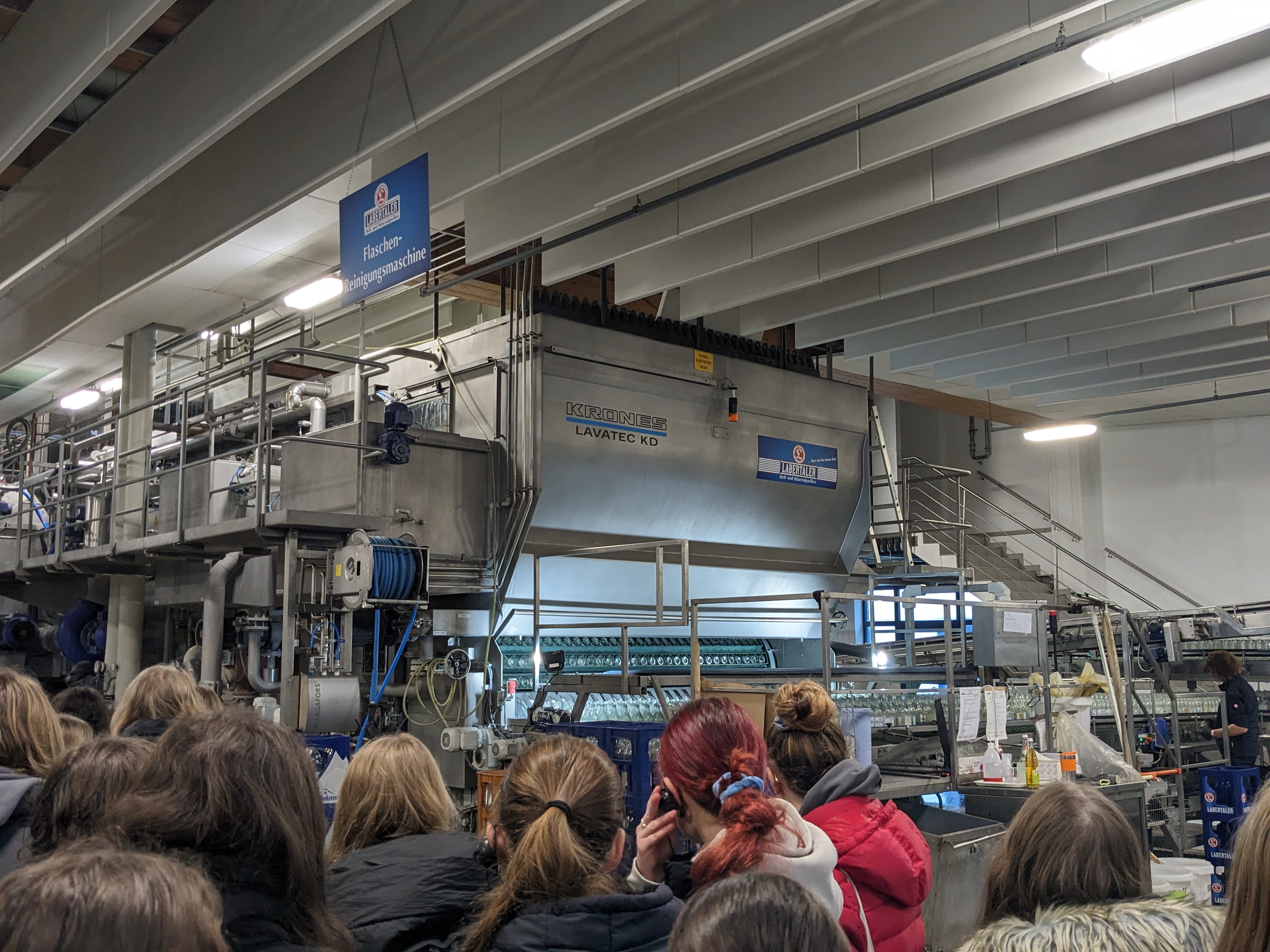 Im BWR-Unterricht sollen die Mädels immer mehr aus der Sicht eines Unternehmens denken. Viele haben aber noch nie ein Unternehmen von innen gesehen. Das ist nun anders, denn in der Weihnachtswoche machten sich die Schülerinnen des BWR-Zweiges aus der 7. und 8. Klasse auf zu einer Betriebserkundung bei Labertaler in Schierling. Ausgestattet mit einem Kopfhörer erhielten sie Einblicke in die Produktions- und Lagerhallen. Besonders beeindruckend waren dabei die hochmodernen Maschinen, die in einer Minute mehrere Tausend Flaschen füllen oder beschädigte Glasflaschen in Sekundenschnelle aussortieren können. Auch das vollautomatische, elftstöckige Hochregallager mit über 15 000 Palettenstellplätzen ließen die Mädels staunen. Ist nun eine Einweg- oder eine Mehrwegflasche umweltfreundlicher? Warum ist ein Strohhalm in einer leeren Limonadenflasche bei der Reinigung ein Störfaktor? Warum sollte auf der leeren Glasflasche bei der Pfandrückgabe ein Deckel sein? Wie wird die Reinheit der Produkte gesichert? In wie vielen Schichten wird gearbeitet? Wie wird festgelegt, welches Getränk, wann abgefüllt wird? Welchen Umsatz erzielt das familiengeführte Unternehmen? Wie wird die korrekte Palettierung auf die LKWs gesichert? Welche Berufe bilden Sie aus? Auf diese und weiter Fragen wurden an diesem Vormittag Antworten gefunden. Wir bedanken uns bei Labertaler, dass wir trotz der auftragsstarken und arbeitsintensiven Weihnachtswoche kommen durften!