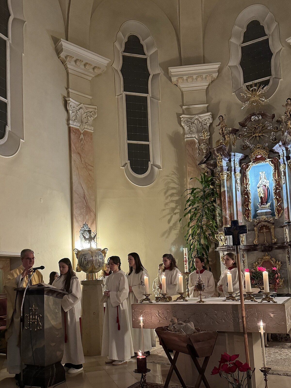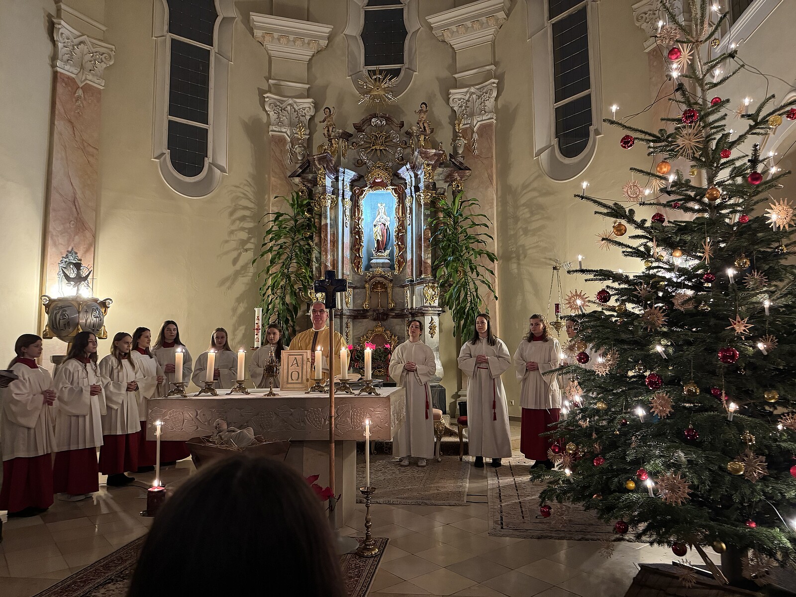 Circa 400 Gläubige – Ehemalige und aktive Schülerinnen mit ihren Familien – feierten mit Domvikar Andreas Albert am 24. die Heilige Nacht in unserer Schul- und Institutskirche. Mitgestaltet von 15 Ministrantinnen, Maestro Humbs an der Orgel, der Schulleitung und einzelnen Mitgliedern des Lehrerkollegiums wurde es ein wunderschönes Fest des Glaubens: ALLEN EINE GESEGNETE WEIHNACHTSZEIT UND GOTTES SEGEN FÜR 2024!!!