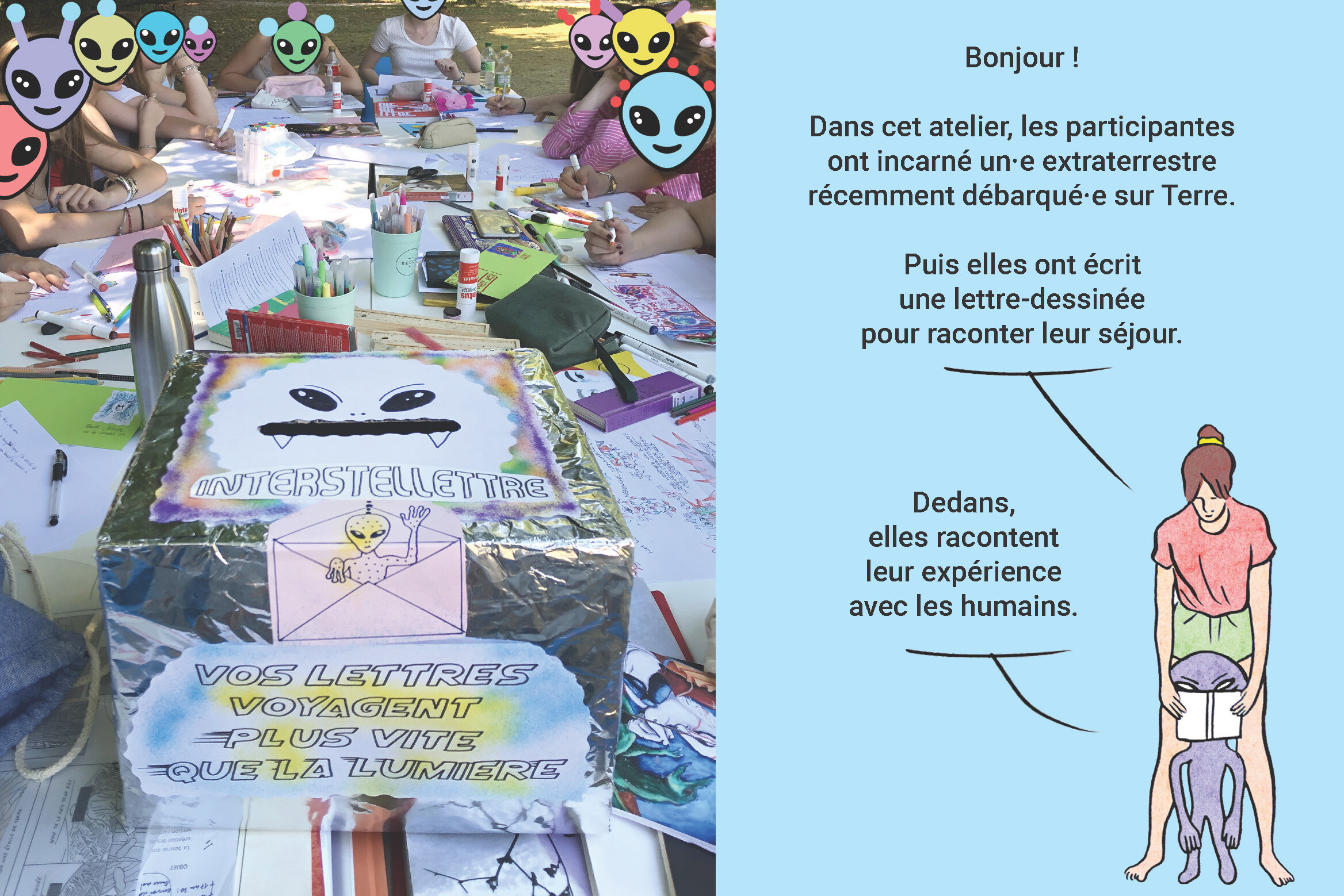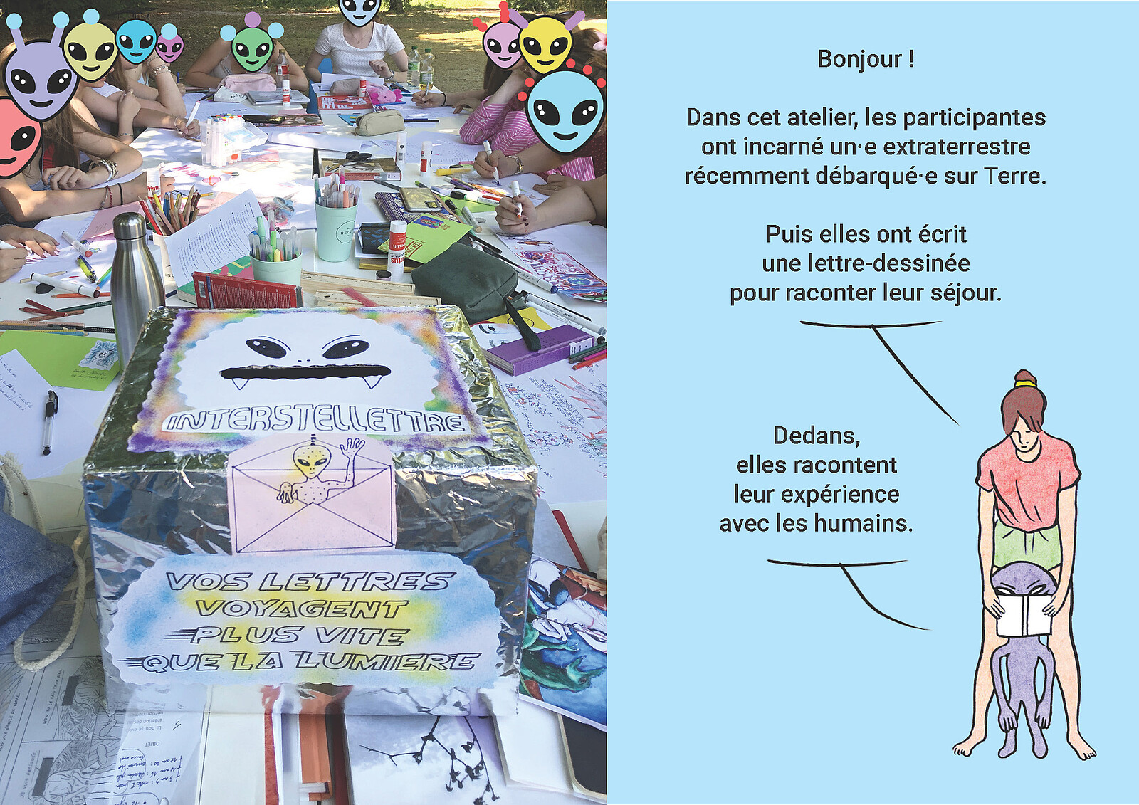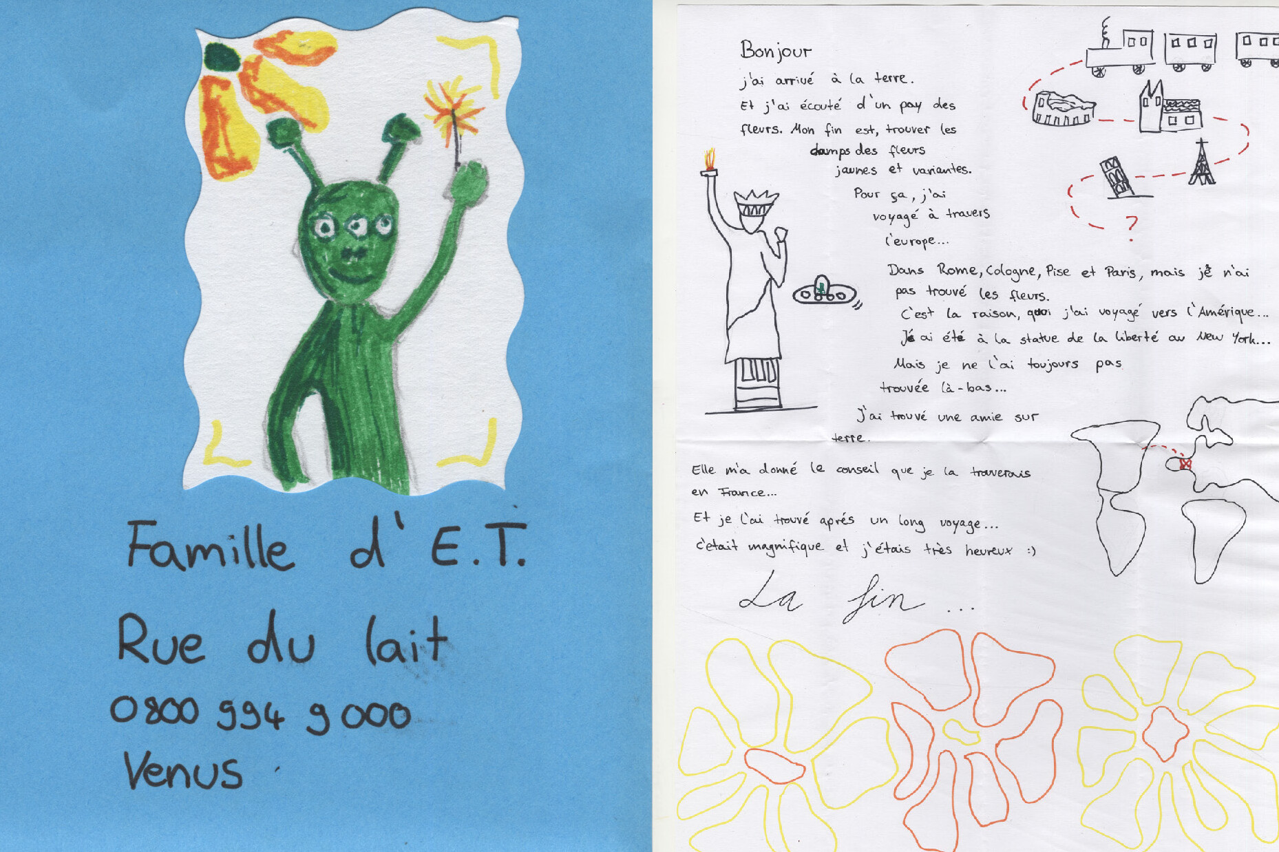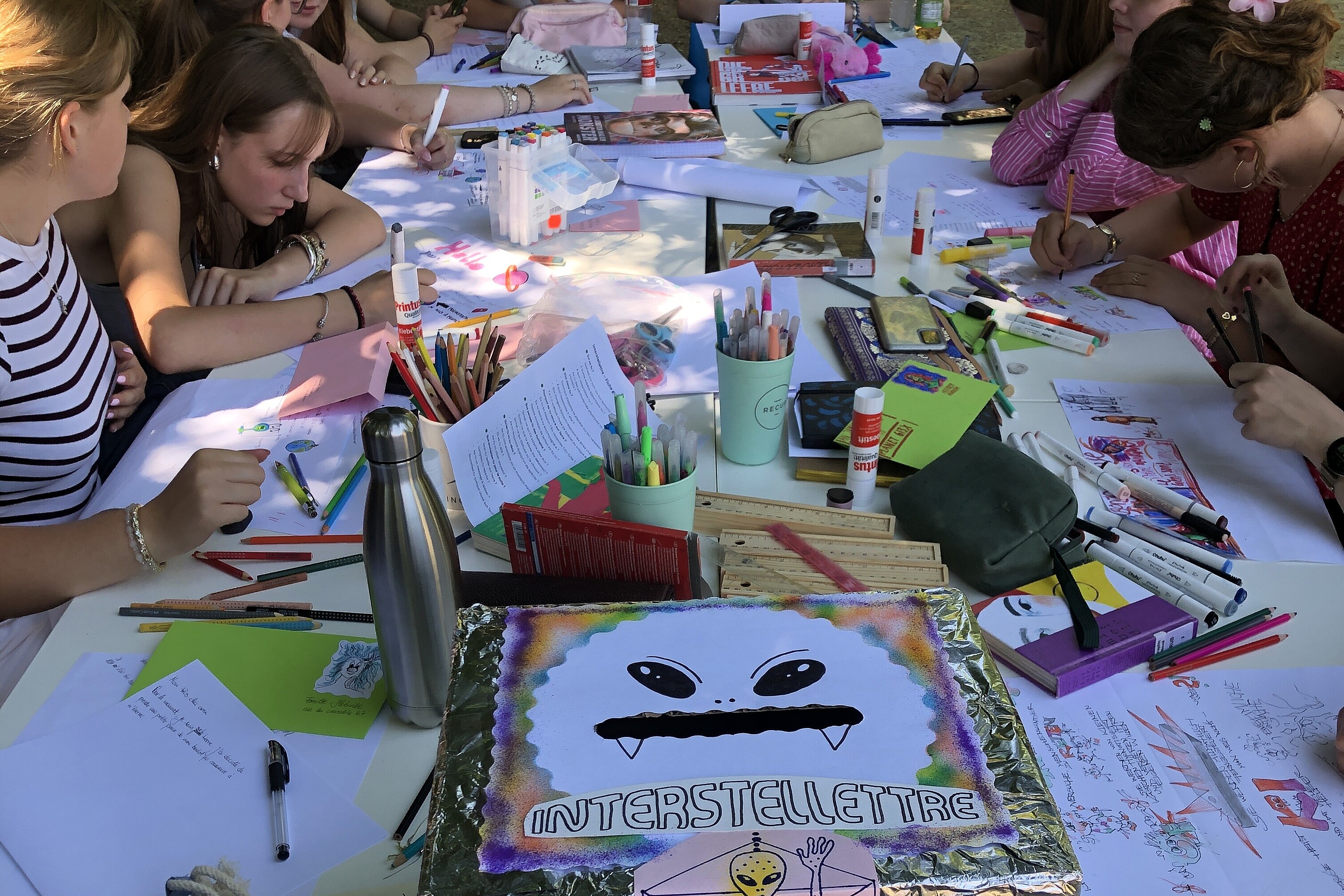 Unter der Leitung der Comic-Zeichnerin Noémie Chust, nehmen die Schülerinnen und Lehrer die Perspektive eines Außerirdischen ein, der für ein paar Tage die Erde besucht und erstellen einen Comic mit Briefcharakter für die Verwandten im Weltall. Sie berichten von ihren Erfahrungen auf dem Planeten, wie sie die Lebewesen, die Gegenstände, Dörfer und Städte dort empfinden. Vielen kommt der Planet Erde recht komisch vor … genauso wie dem kleinen Prinzen, den die Schülerinnen im Französisch-Unterricht bereits kennengelernt haben. Wir bedanken uns beim Institut Français für die persönliche Einladung und den kreativen Vormittag.