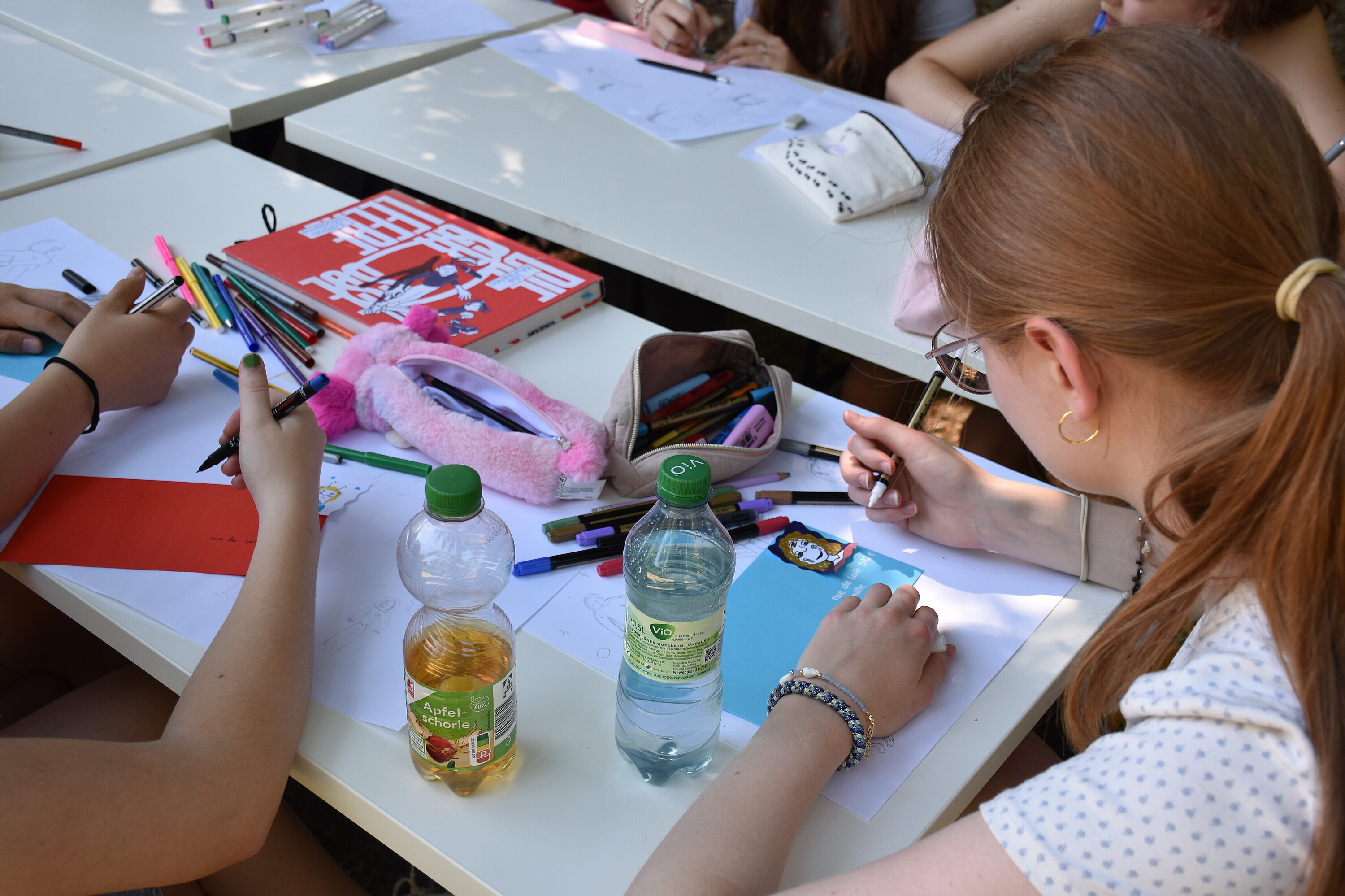 Auf Einladung von Dr. Marie-Laure Canteloube, Sprach- und Bildungsattaché des Institut Français München, durfte der Französischkurs der G 11A mit Frau Curea und Frau Wild am 2. Juli 2025 in den RE nach München steigen und am Workshop „Comics zeichnen“ am Institut Français teilnehmen.