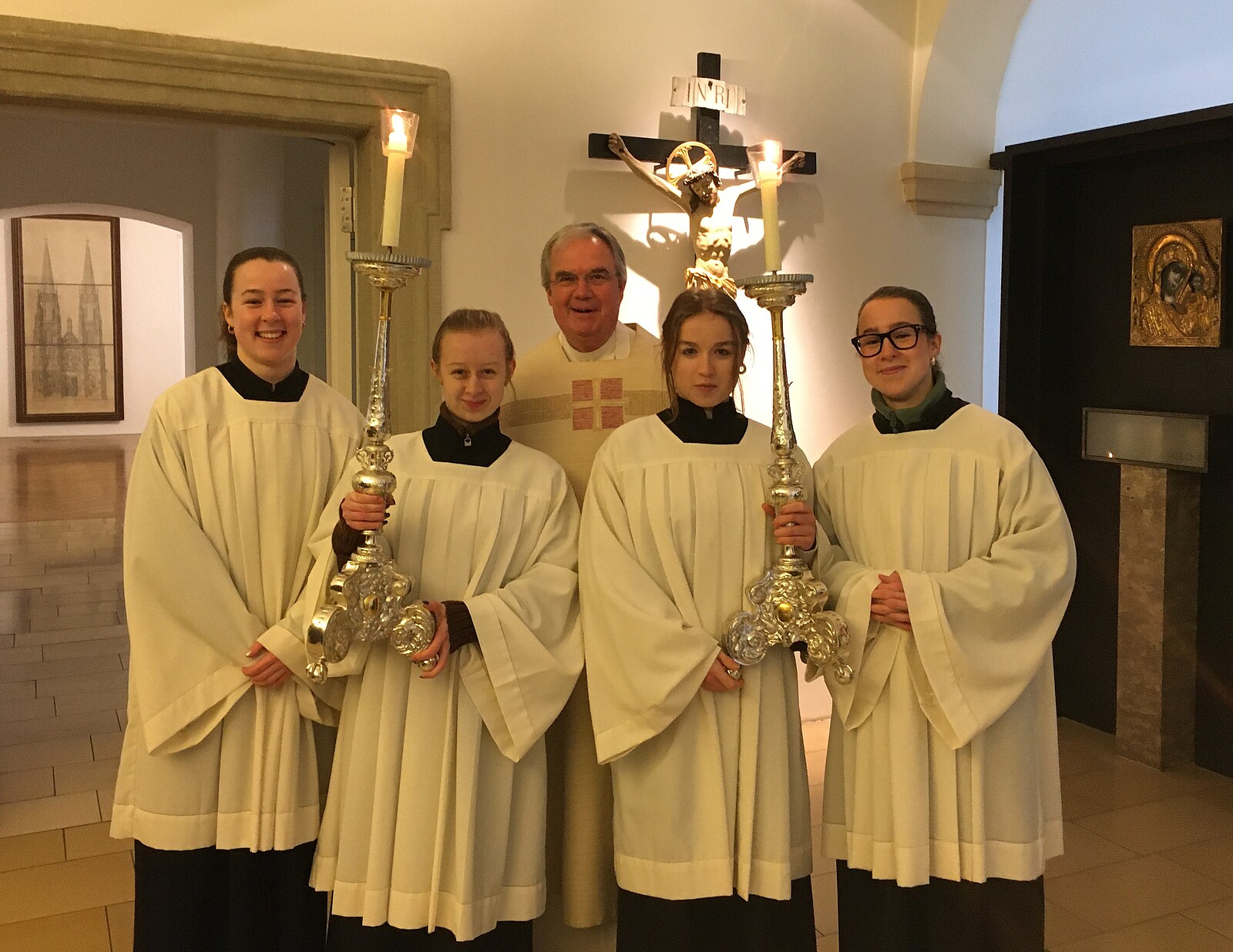 - Zusätzlich ist eine Gruppe unserer Schülerinnen aus Q 12 seit November auch noch an Sonntagen im Hohen Dom bei Gottesdiensten ihres Schulseelsorgers im Altardienst engagiert, was den staunenden Regensburgern durchaus Eindruck macht!!