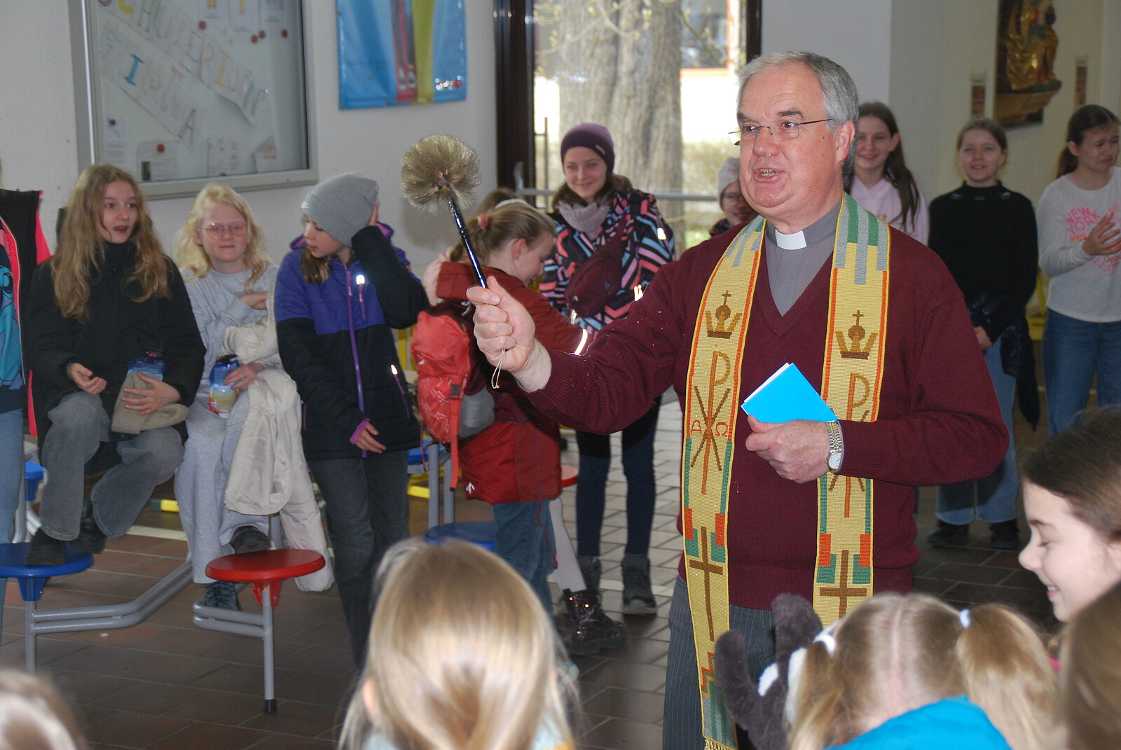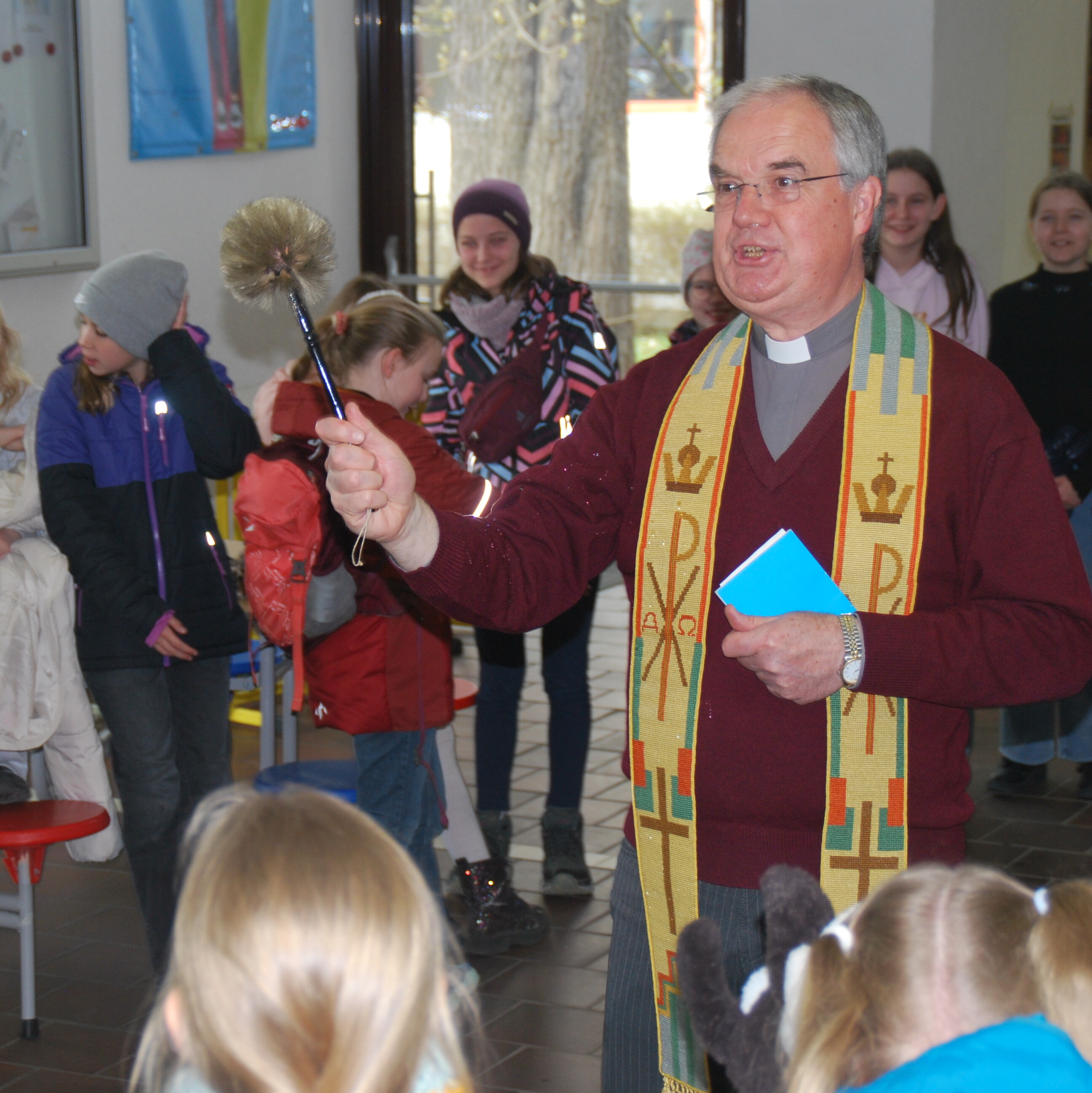 Schließlich gilt es den eigenem Glauben Ausdruck zu verleihen – zur Selbstvergewisserung und zugleich als Zeugnis für die Anderen. Mit großer Begeisterung haben unterschiedliche Klassen mit ihren Religionslehrkräften überlegt, getextet und vorgetragen, worauf es an Ostern ankommt. Das tun Größere anders als die Kleinen – immer aber mit vollem Einsatz. Dabei ist es schön zu sehen in welcher Bandbreite Mitwirkung möglich ist: als Akteurin und Sprecherin, bei musischen Beiträgen oder im liturgischen Dienst!