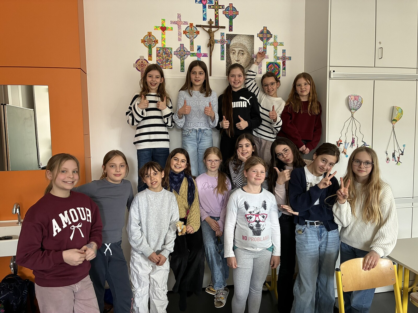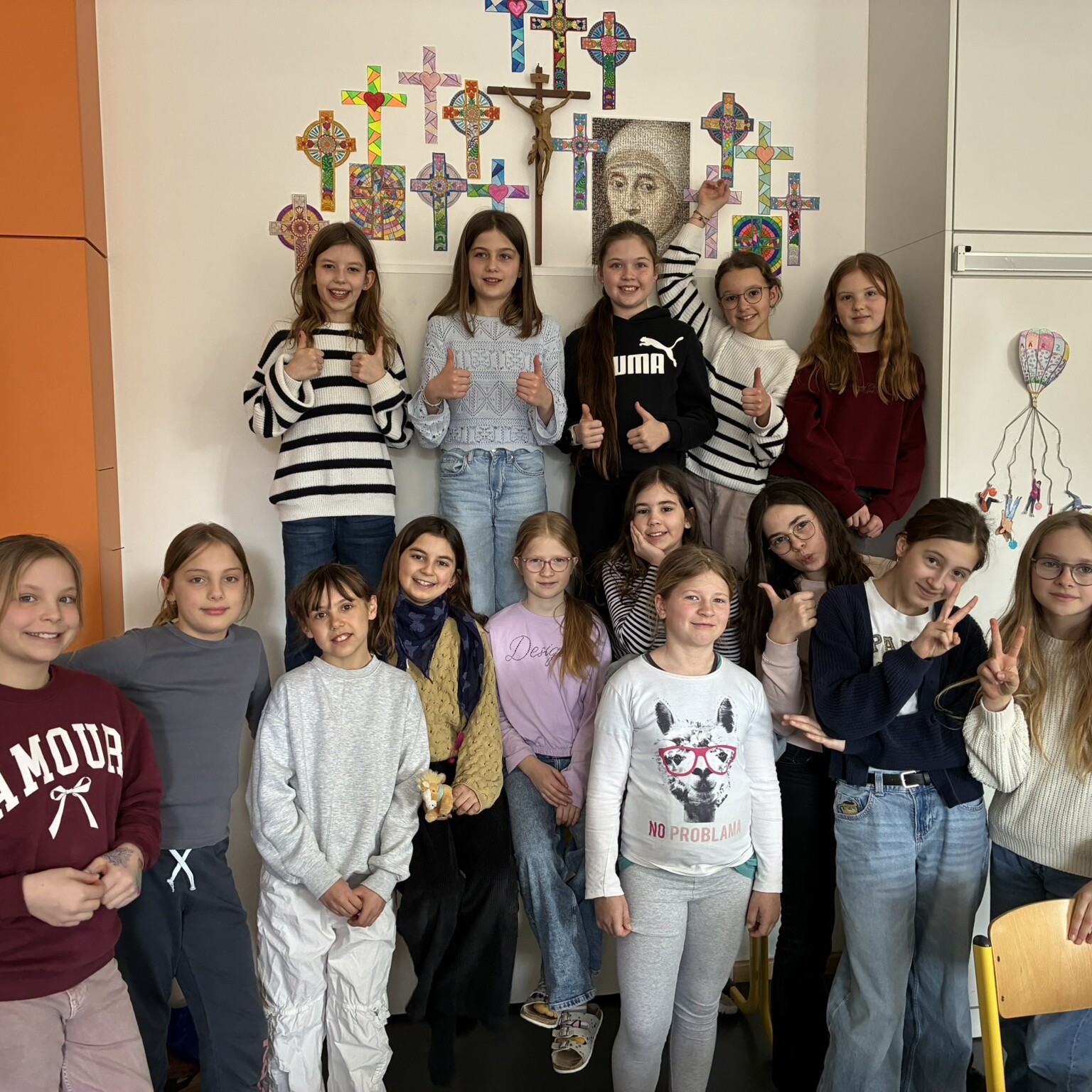 Dass aus einem schweren Kreuz in Form von Sorgen und Nöten durch Gottes Hilfe Ostern – Auferstehung werden kann, wurde in der Gestaltung österlicher Siegeskreuze deutlich, die den Türbereich einzelner Klassenzimmer schmücken.