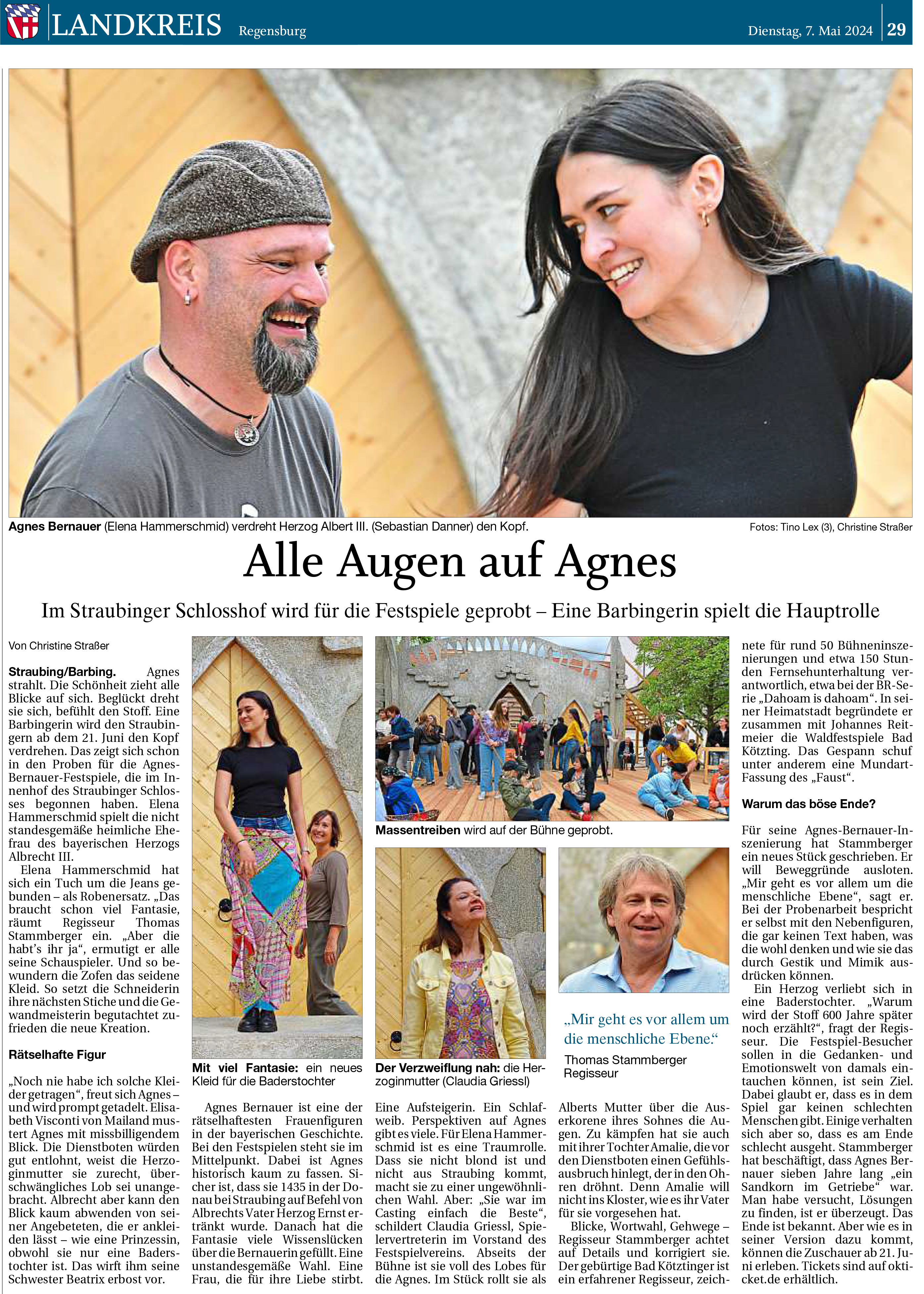 Die ehemalige Englische Elena Hammerschmid spielt bei den Agnes-Bernauer-Festspielen (MZ vom 07.05.2024)