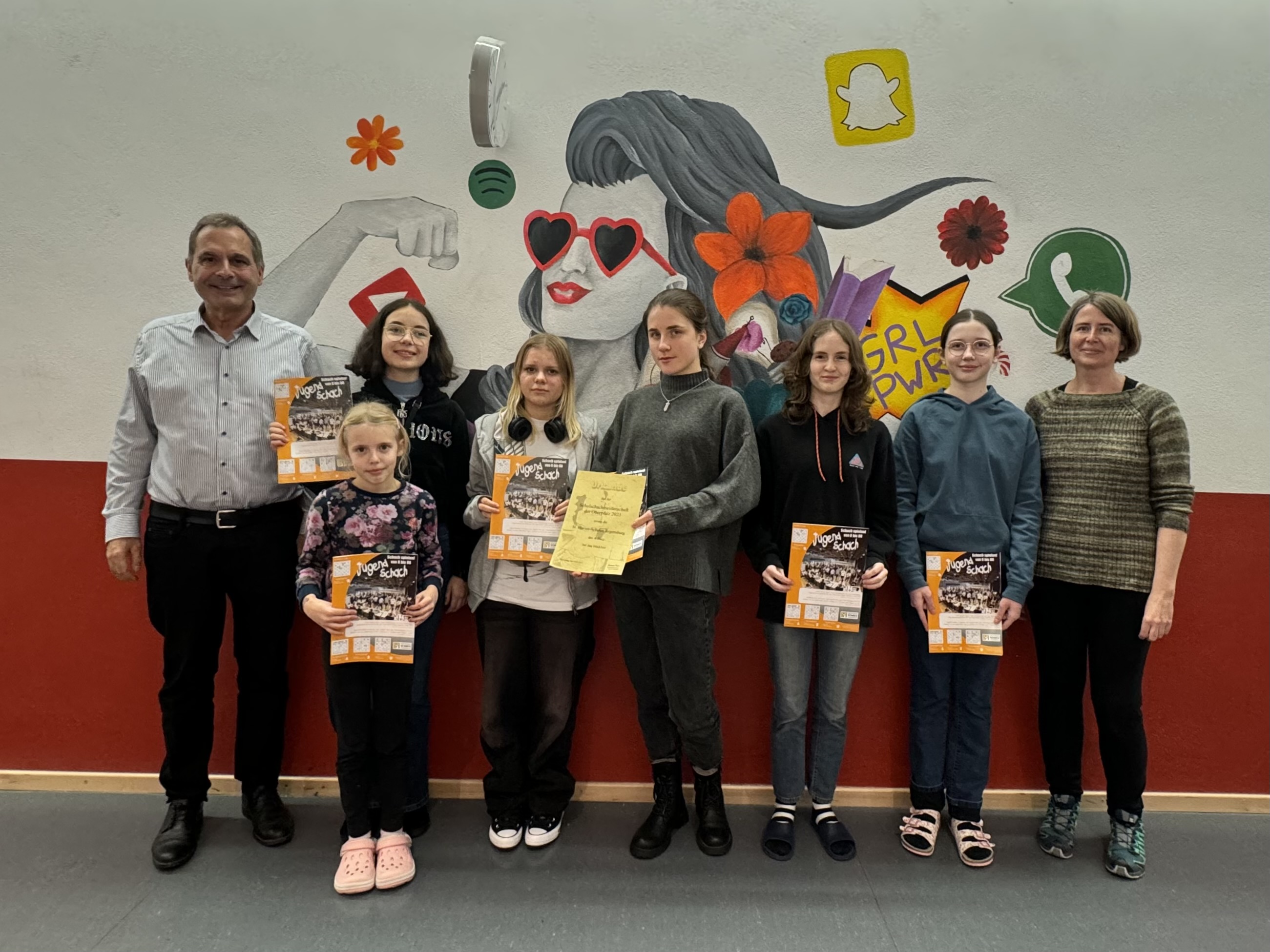 Am 17.11.2023 trafen sich sechs schachbegeisterte Schülerinnen in der RT-Halle in Regensburg, um unsere Schulen bei den diesjährigen Oberpfälzer Schulschachmeisterschaften zu vertreten. Hierbei traten sie in Partien mit 15 Minuten Bedenkzeit gegen alle weiteren gemeldeten Mädchenmannschaften des Bezirks an.