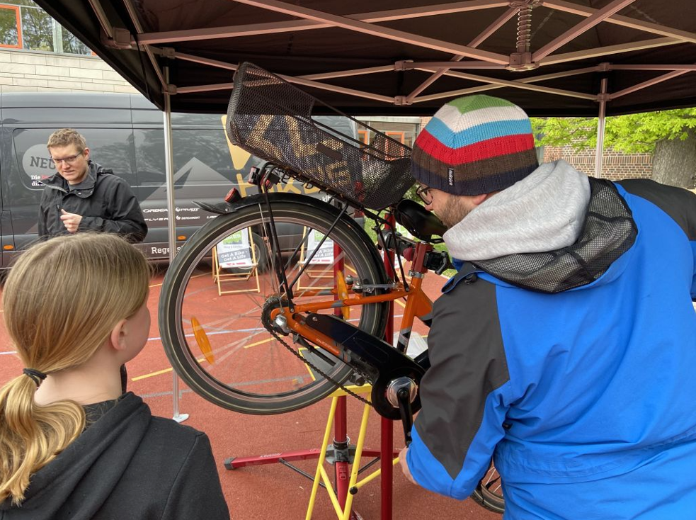 Dank der tatkräftigen Unterstützung durch KL-Bikes konnten unsere Schülerinnen beim Fahrradcheck ihr Fahrrad kostenlos auf seine Verkehrstauglichkeit überprüfen lassen, damit die Sicherheit auf dem Schulweg und bei allen anderen Fahrten wie unseren gemeinsamen Radtouren gewährleistet ist.
