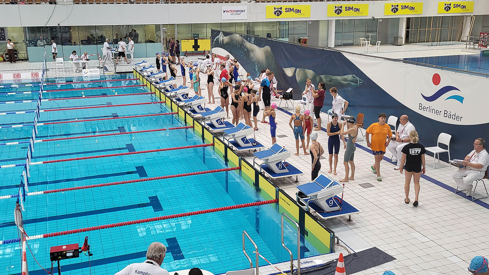 Die Schwimmwettkämpfe am Dienstag fanden in der Schwimm- und Sprunghalle im Europasportpark statt - Austragungsort vieler nationaler und internationaler Wettkämpfe. Für die Englischen sah es nach den ersten drei Läufen bereits ganz gut aus. Nach einer 6 x 25-Meter-Beinschlagstaffel, der 6x25-Meter-Koordinationsstaffel und der 4x25-Meter Bruststaffel konnte man sich schon in der vorderen Hälfte der 16 Teilnehmerländer platzieren. Als vierte Disziplin folgte noch ein 10-Minuten-Mannschaftsschwimmen, bei dem sechs Schwimmerinnen einer Mannschaft gleichzeitig starteten und zusammen möglichst viele Bahnen schwimmen mussten. Bei dieser Ausdauerdisziplin gingen die Athletinnen noch einmal an ihre Leistungsgrenze und konnten mit einer starken Teamleistung die bisherige Platzierung absichern. So schafften es die Englischen für die 4x25-Meter-Freistil-Staffel ins Finale der Top 8 zu kommen. Auch hier wurde wieder eine Spitzenleistung abgeliefert, so dass sich die Mannschaft der St. Marien-Schulen letztlich über eine Endplatzierung auf Platz 8 freuen durften!