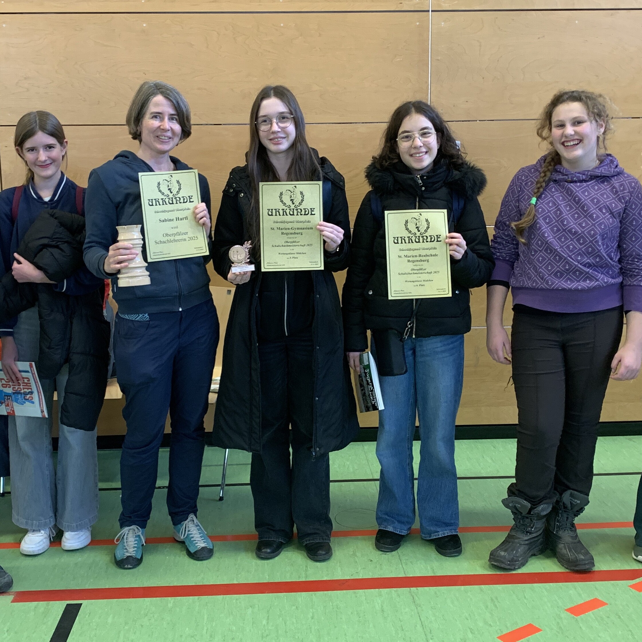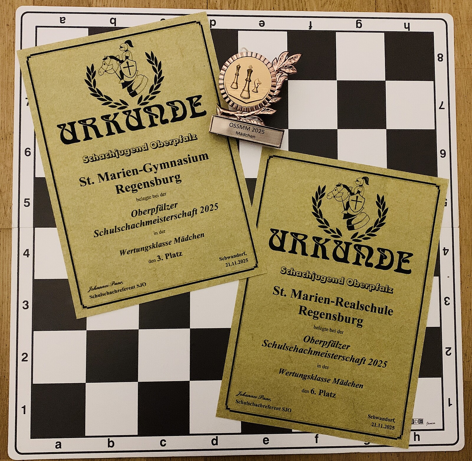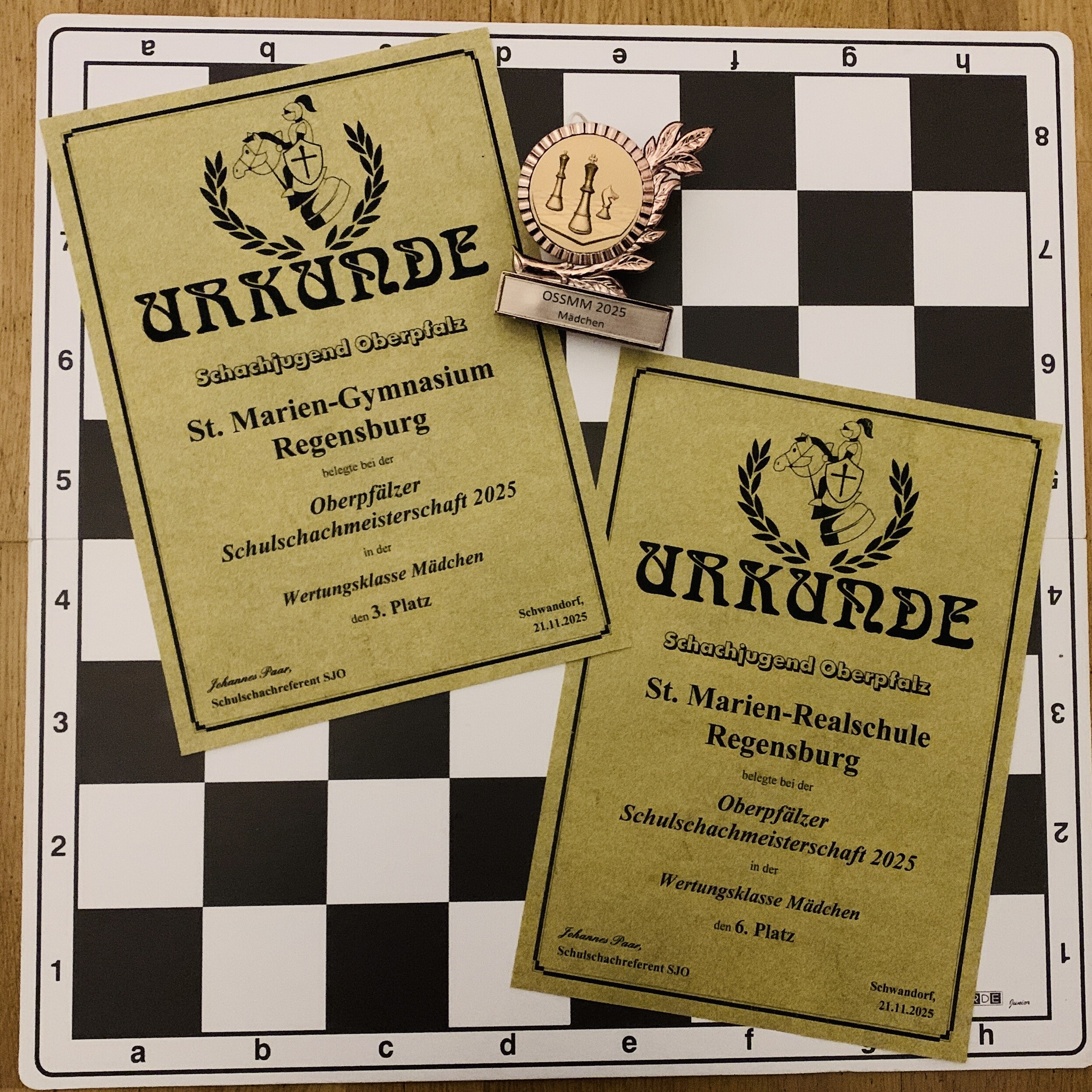 Am Freitag, den 21.11.2025, fanden in Schwandorf die diesjährigen Oberpfälzer Mannschaftsmeisterschaften im Schulschach statt. Auch in diesem Jahr gingen die St. Marien-Schulen wieder mit zwei Viererteams aus schachbegeisterten Schülerinnen an den Start.